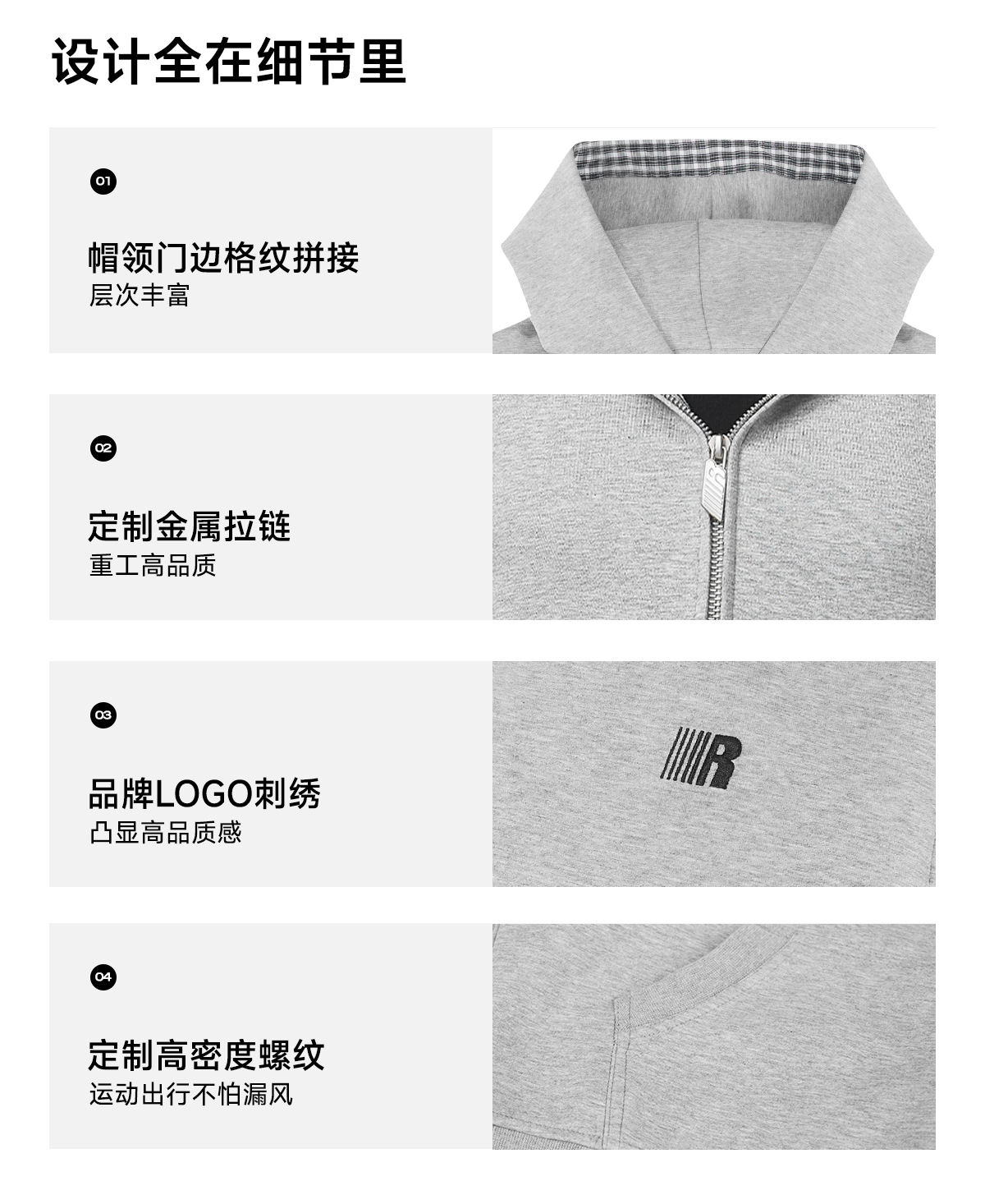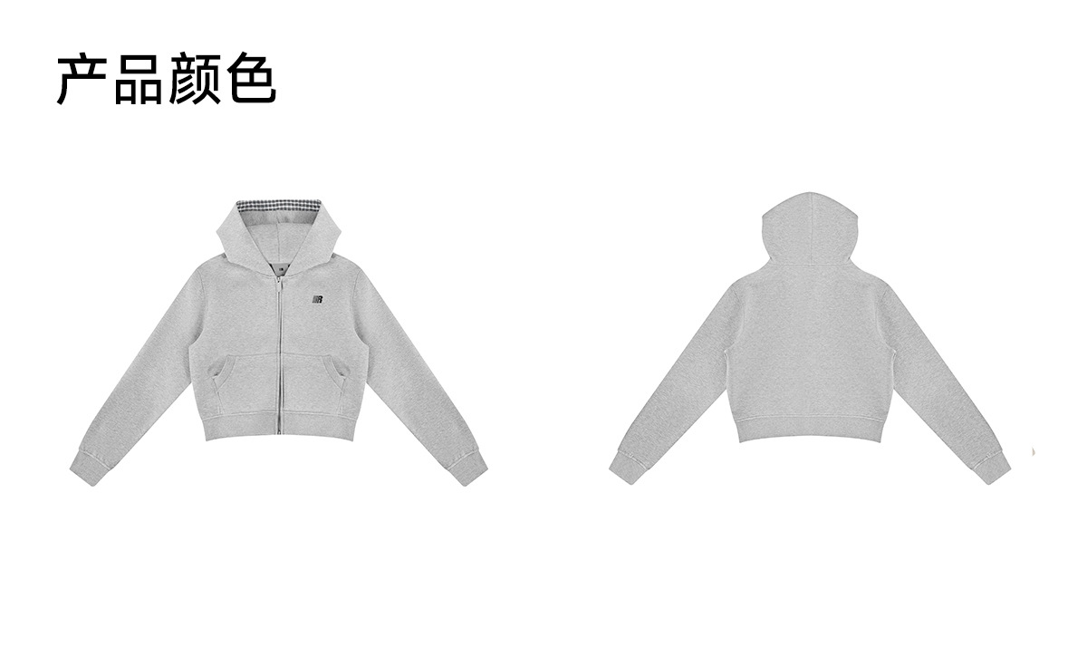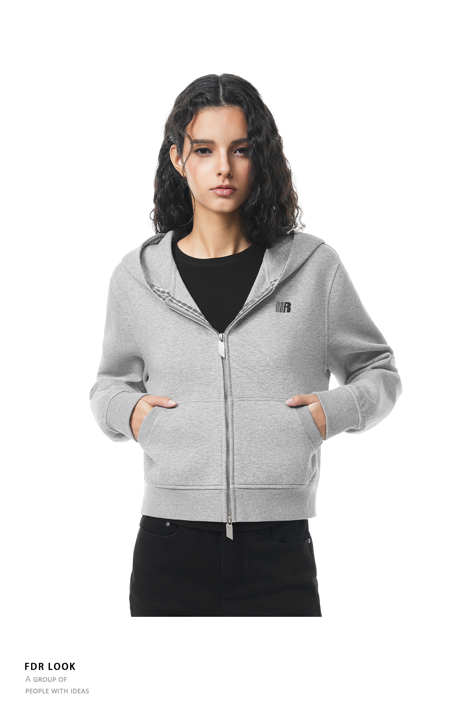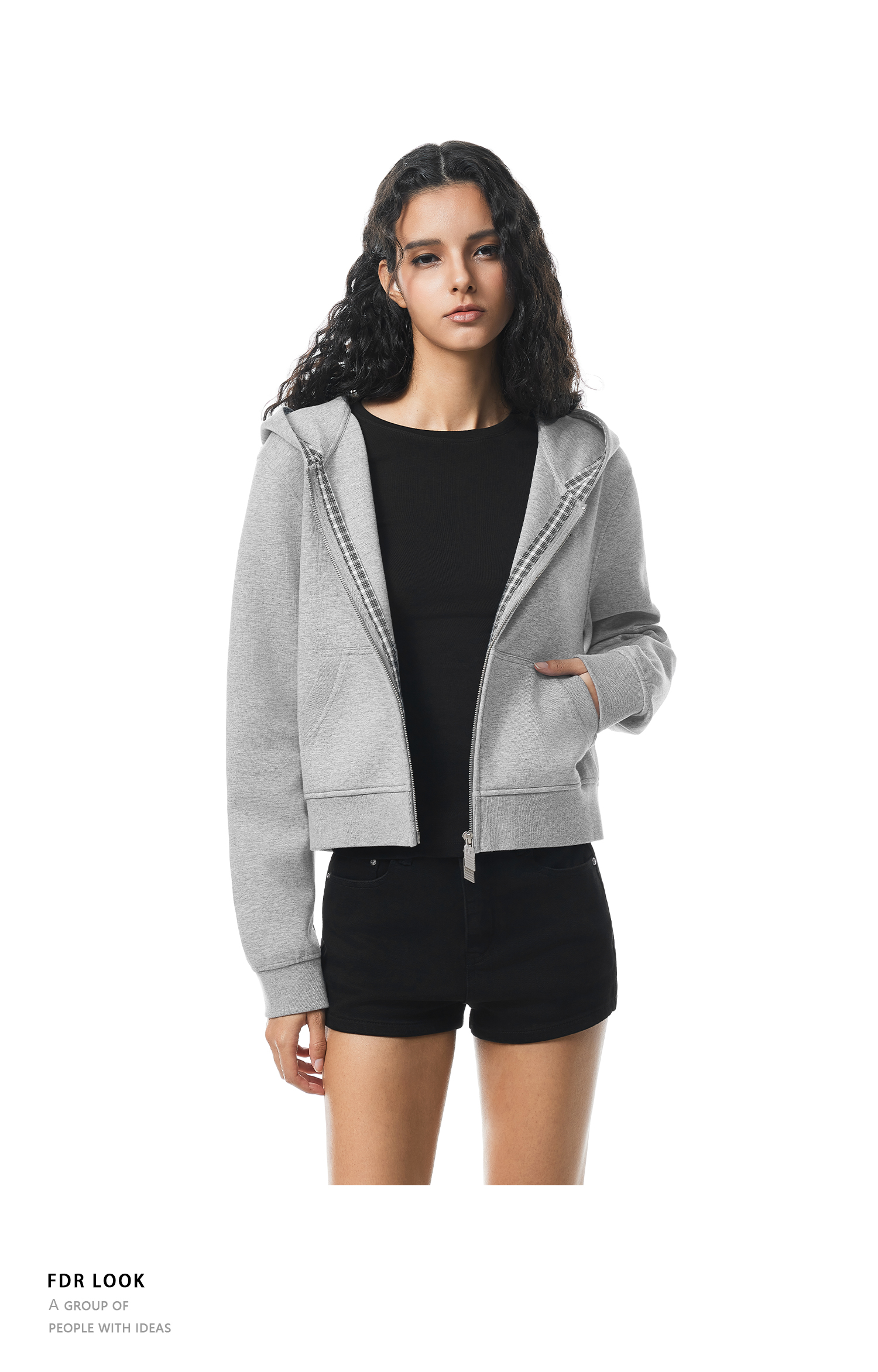 FDR官方店 R字格纹空气层连帽卫衣外套女秋季蓄热保暖短款上衣
