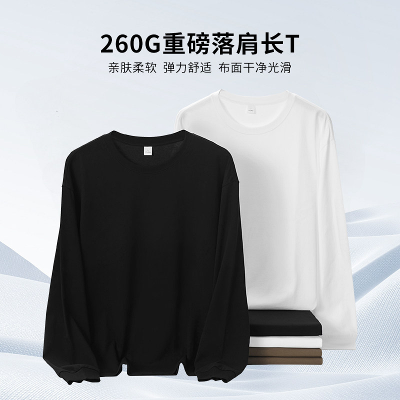 【门店同款】MAXNEW极简风黑色长袖T恤男宽松圆领打底衫纯色上衣