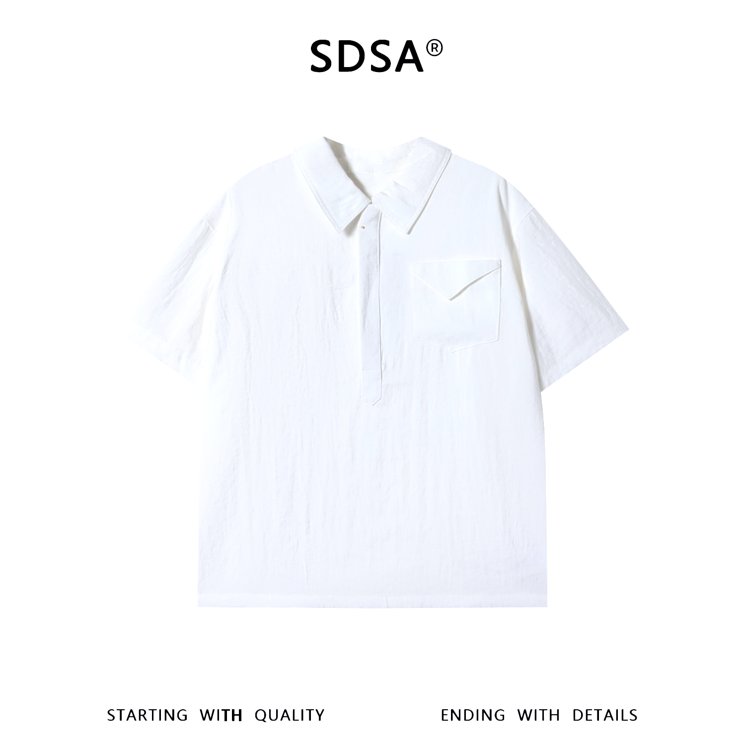 SDSA男装2026新款高贵轻奢潮牌翻领半开襟三角贴袋短袖衬衫百搭