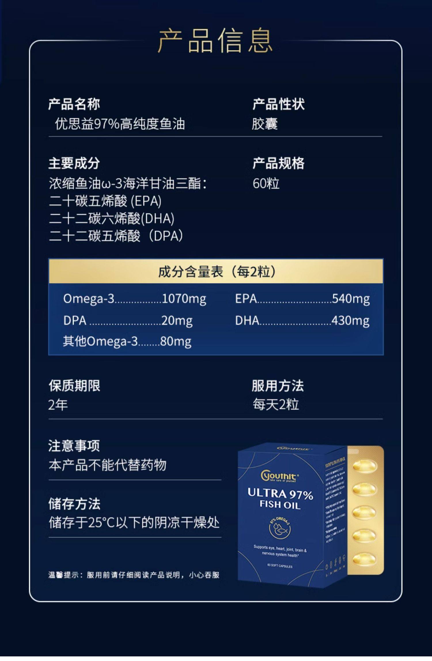 Youthit优思益97高纯度rTG深海鱼油软胶囊女生成人 60粒盒