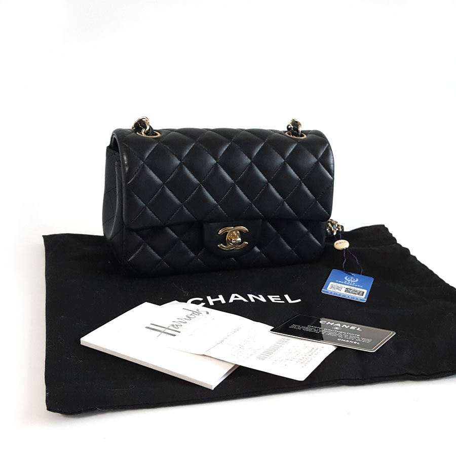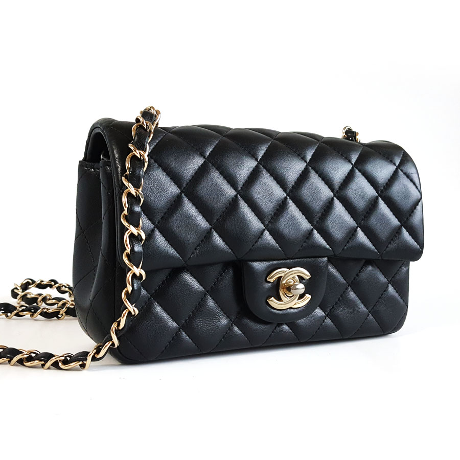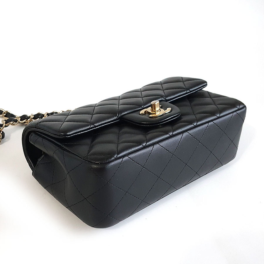 【95新】CHANEL香奈儿CF系列A69900 Y04059 94305黑金大迷你mini羊皮CF链条包单肩包女士260326NJS05