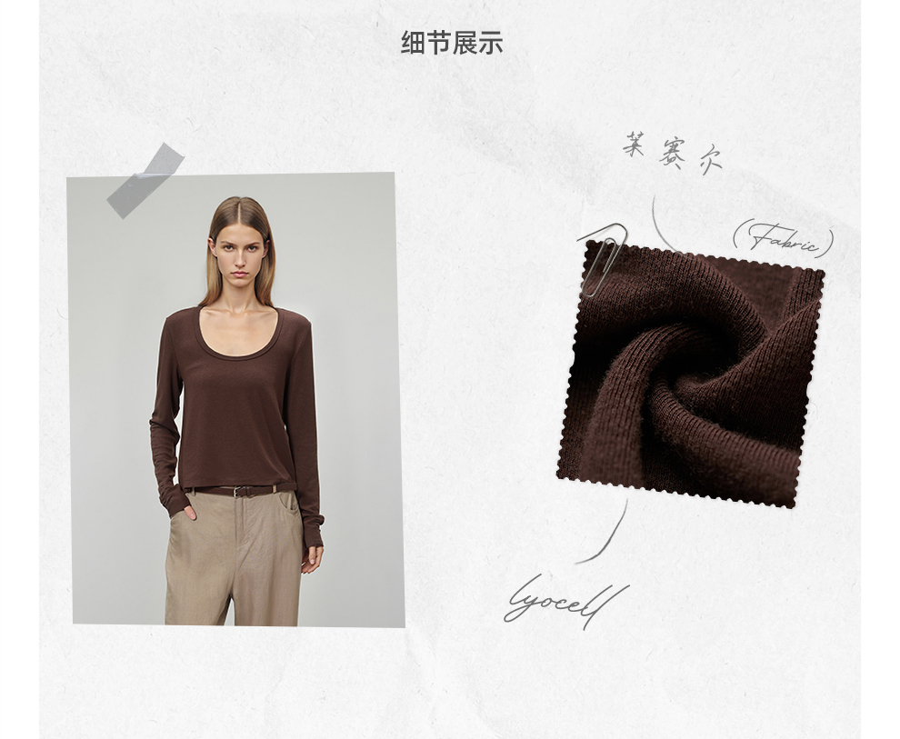 ROMI STUDIO“基础随性”绵羊毛莱赛尔混纺修身U领长袖T恤 441G1128