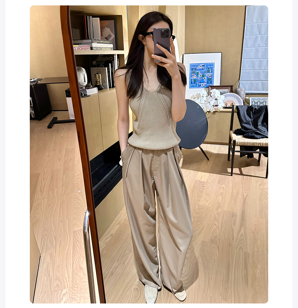 ROMI STUDIO“自在度夏” 高腰直筒垂坠感轻薄透气米杏色西裤 K3091