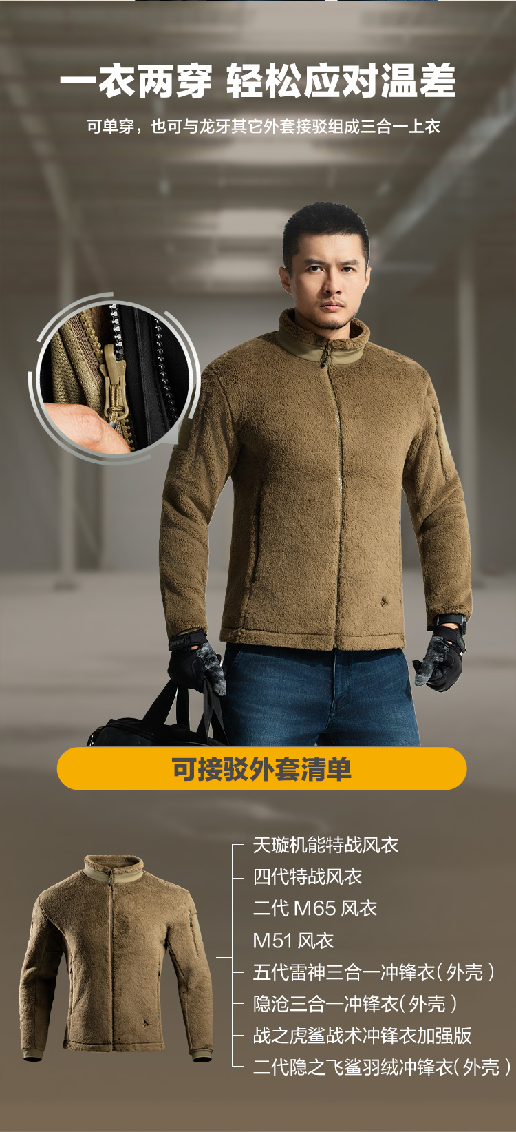 【龙牙上新】二代B3级龙牙战猎Polartec保暖战术立领抓绒衣