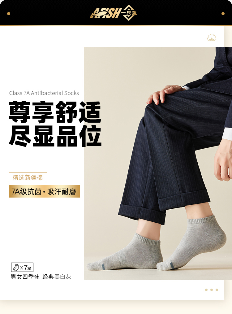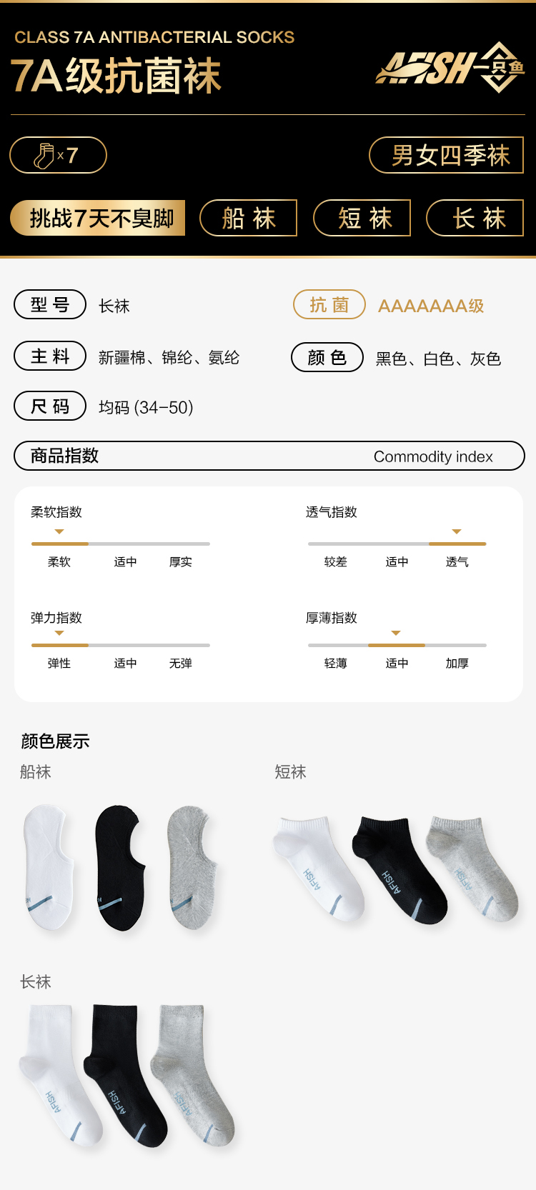 一只鱼7A级抗菌袜子(七双装) 男女士同款