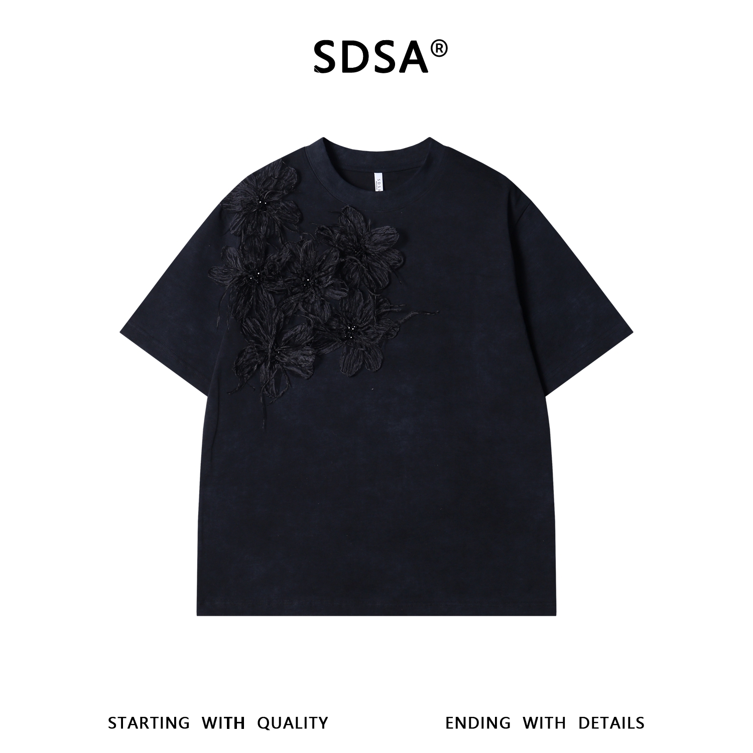 26T137SDSA男装2026新款高贵轻奢高街重工立体花朵短袖T恤显瘦百搭上衣
