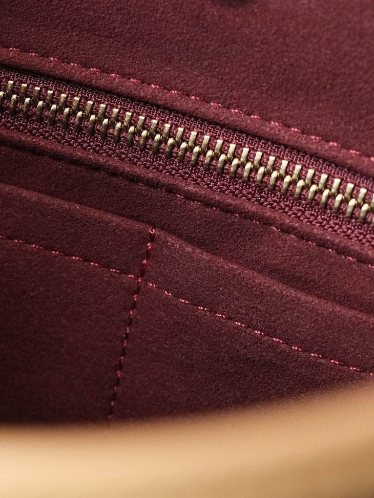 内衬为微纤维材质,颜色 暗红色 手感柔软细腻,具有一定的抗磨性。