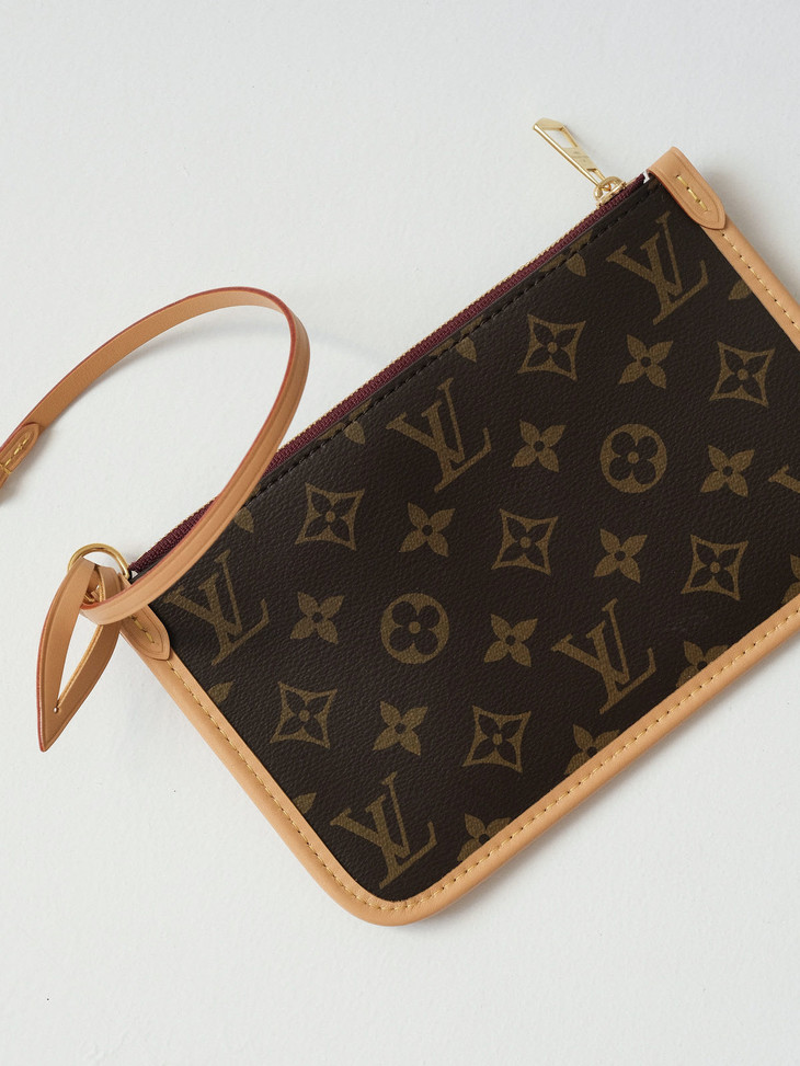 Carry all手袋取材 Monogram 帆布和皮革饰边,成就都市生活的贴身伴侣。充裕构型设有齐整内层,大号内袋再添功能元素。Monogram 帆布拉链手拿包通过皮革带固定。