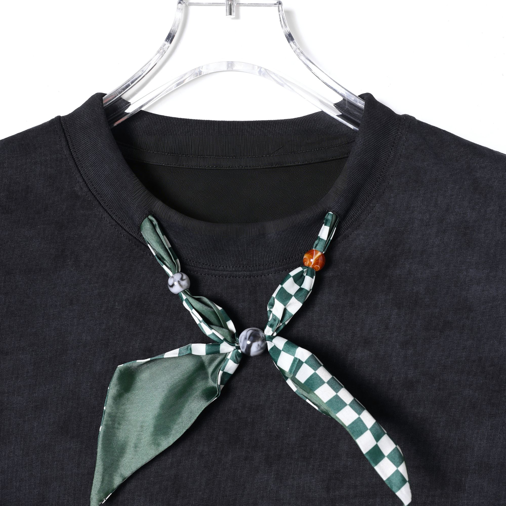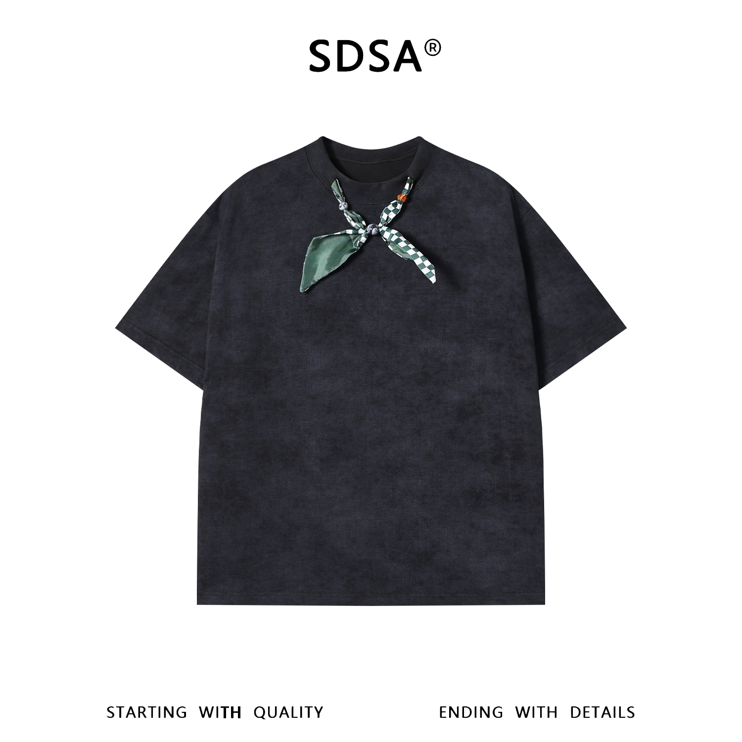 SDSA男装2026新款轻奢小众设计扎染领系带装饰圆领短袖T恤百搭