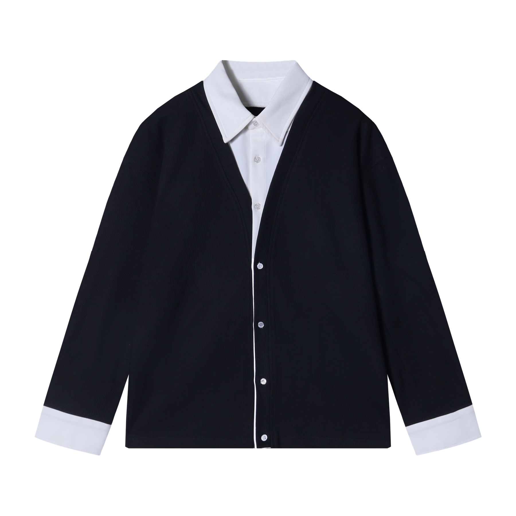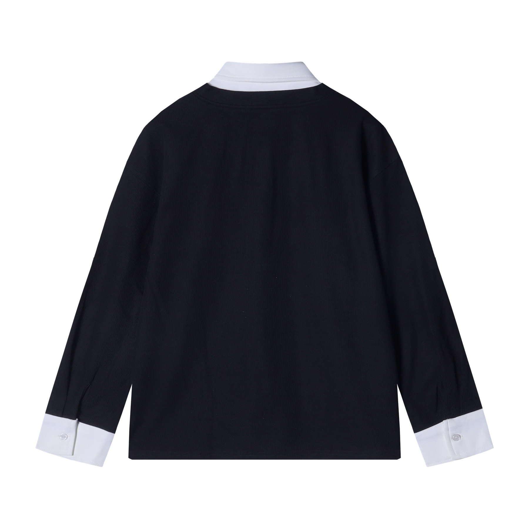 WY728秋冬新款男士假两件翻领纯色创意刺绣设计日系风格宽松百搭上衣