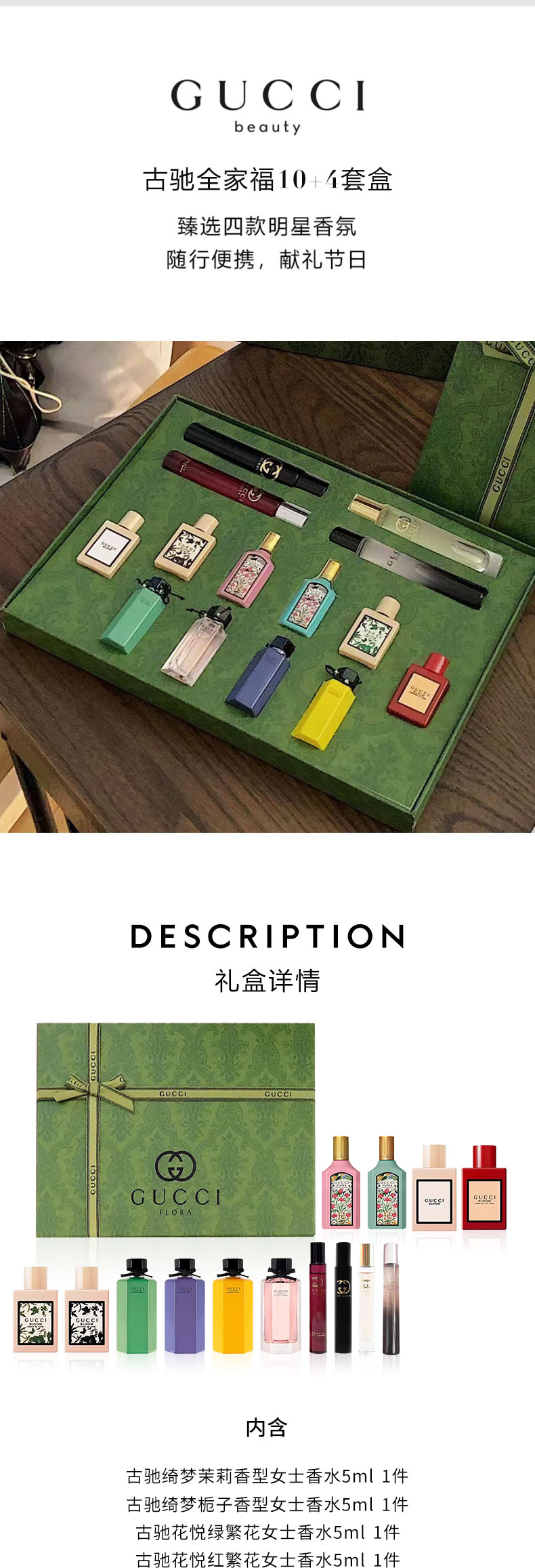 【全球购 · 香港直邮】「古驰美版全家福香水10+4套装」古驰香水小样套装体验装 现货开抢