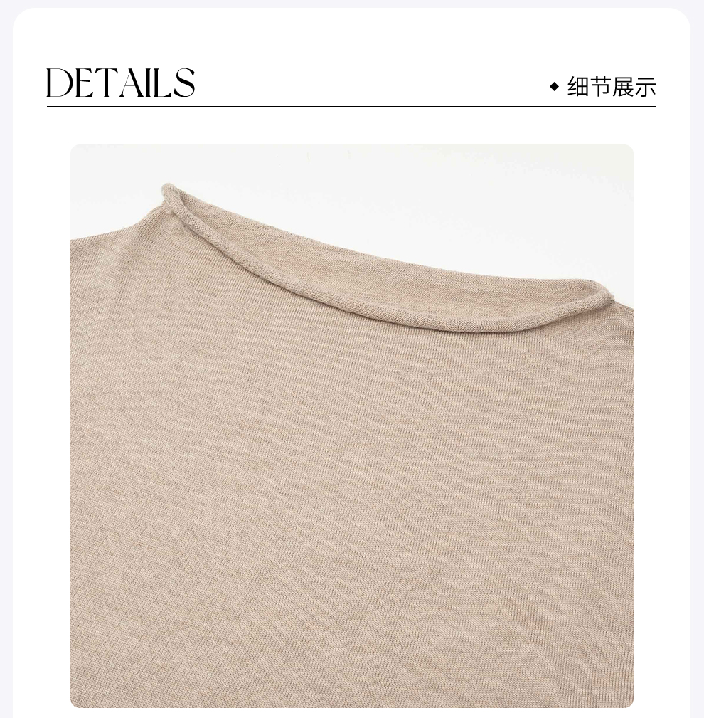 ROMI STUDIO “内外兼备" 100%澳洲羊毛卷边斜领打底T恤 23AWM1113