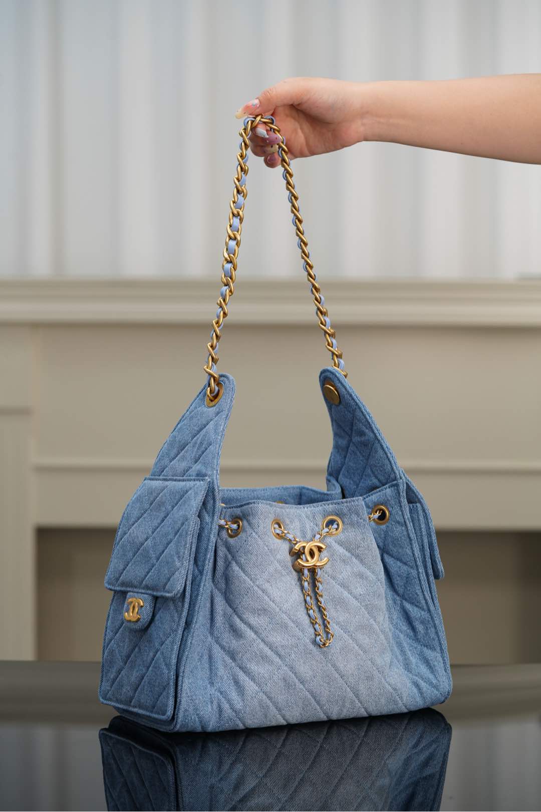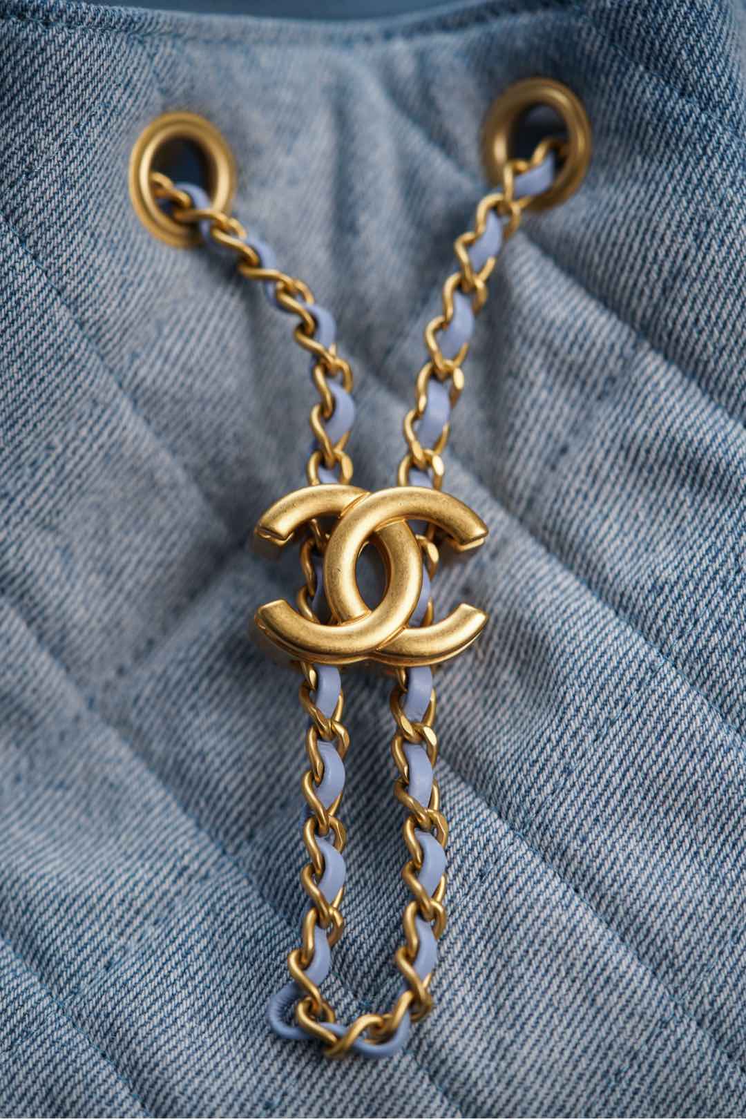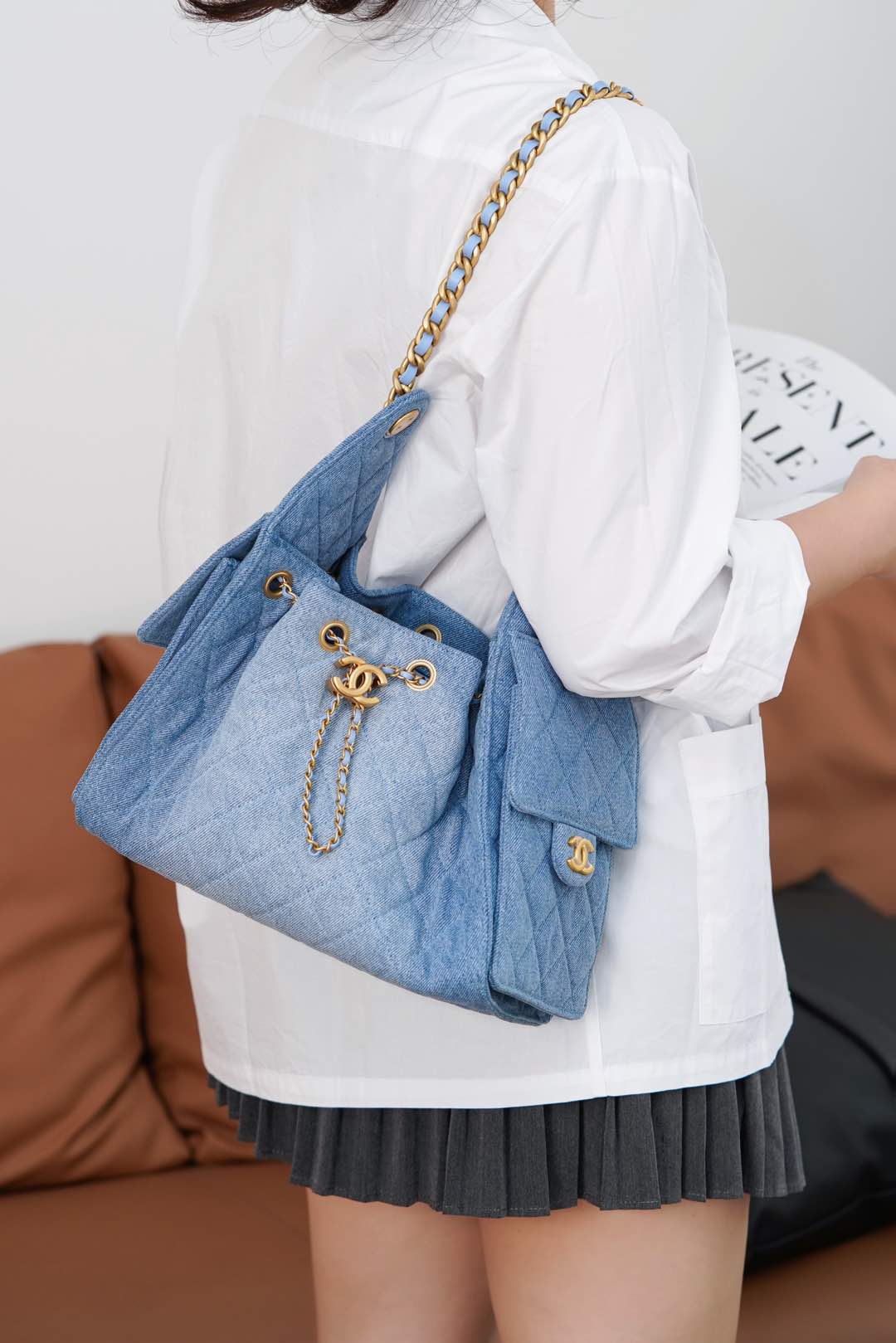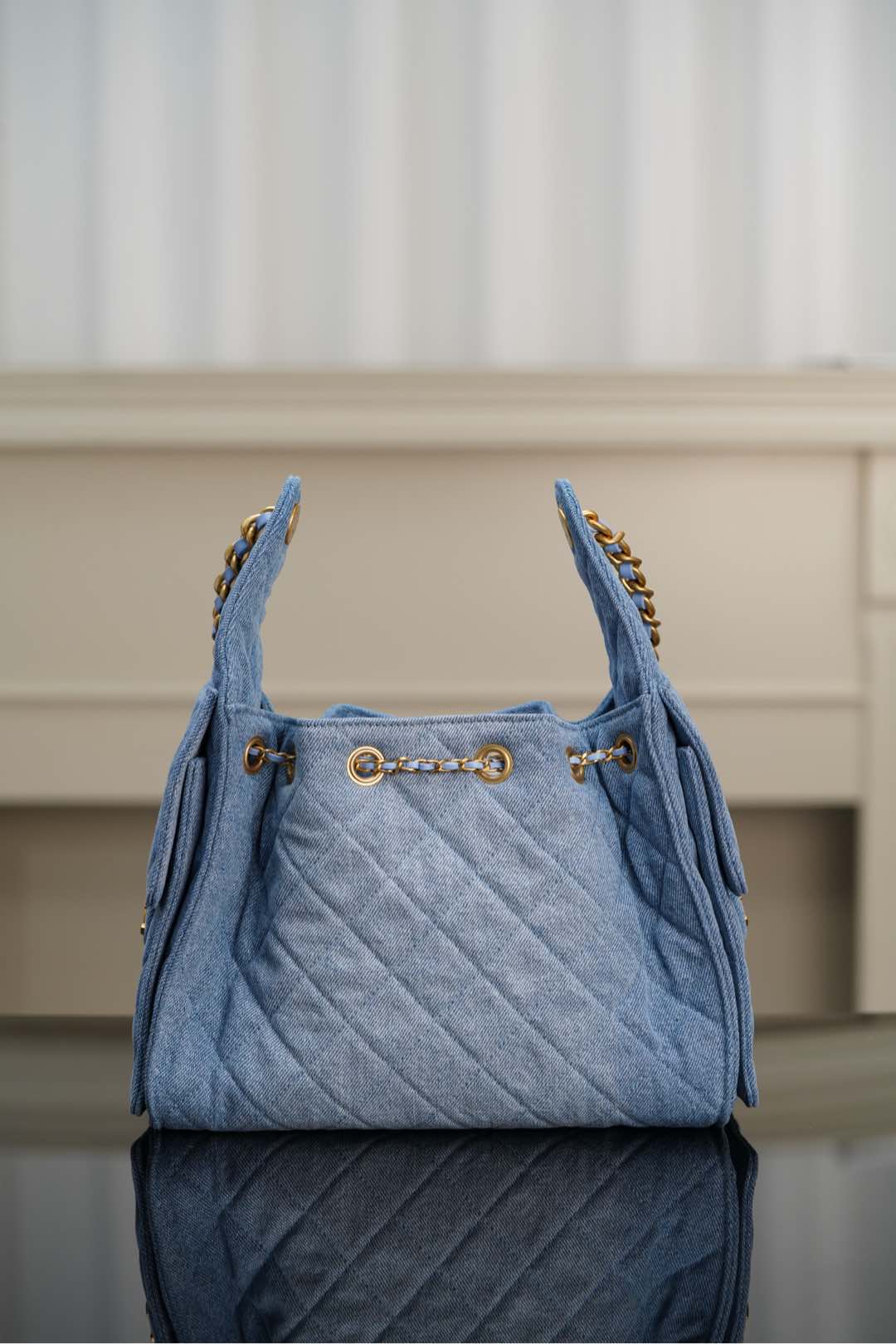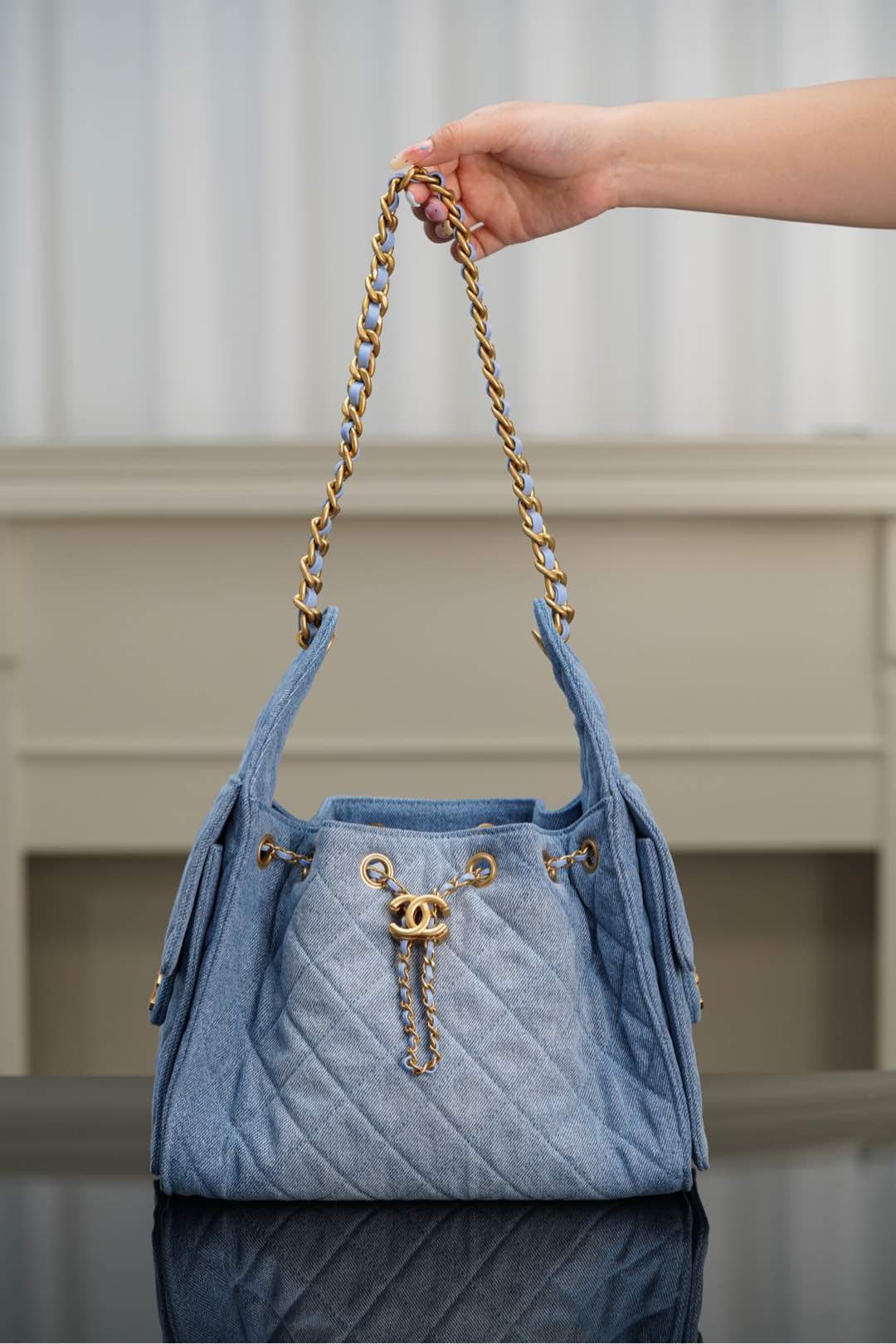 𝐂𝐡𝐚𝐧𝐞𝐥 𝟐𝟓𝐬 𝐬𝐦𝐚𝐥𝐥 𝐡𝐨𝐛𝐨 抽绳水桶包 牛仔蓝💙小号