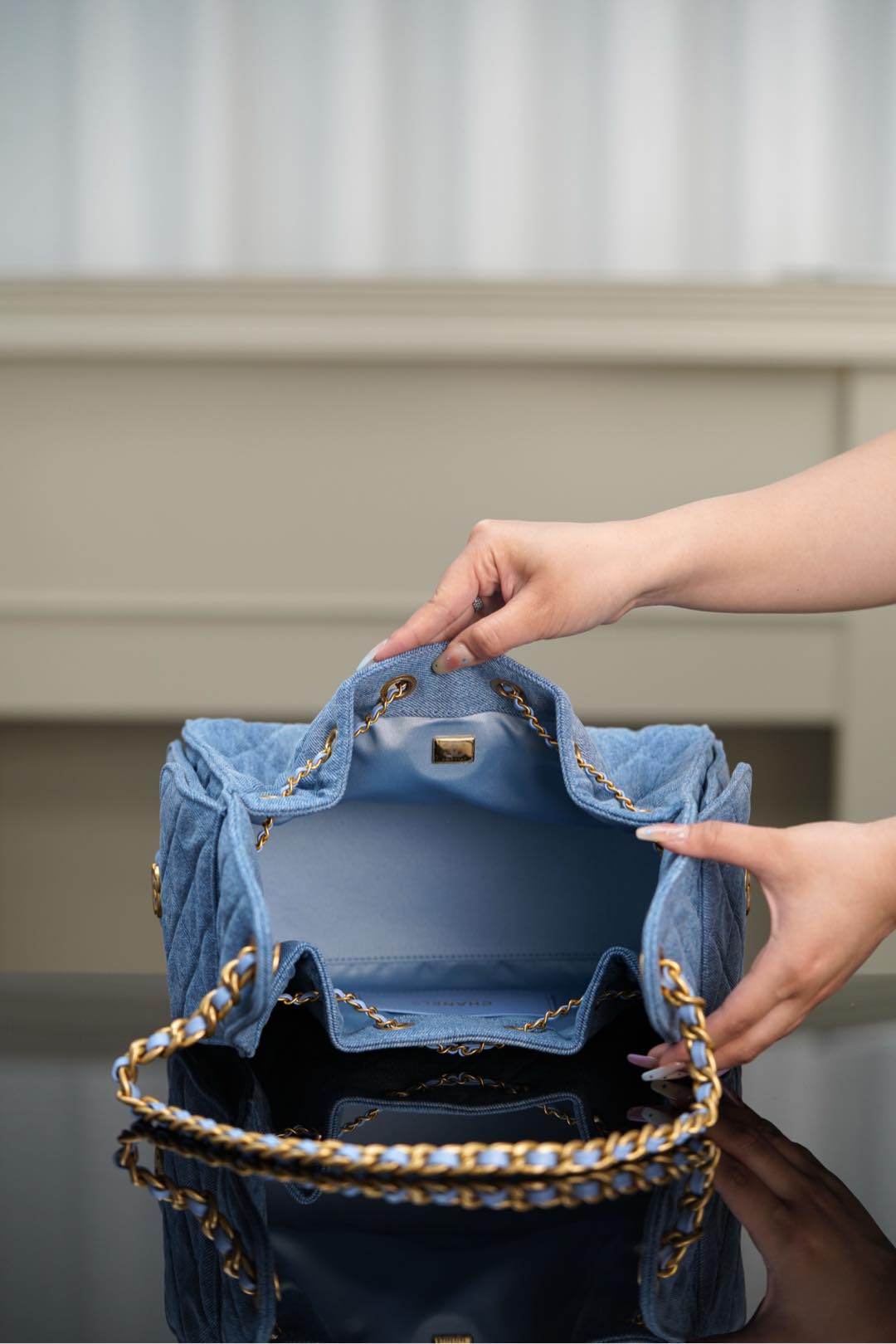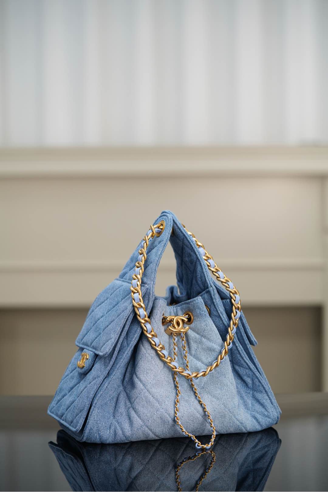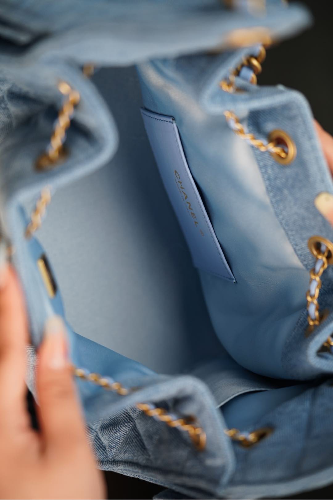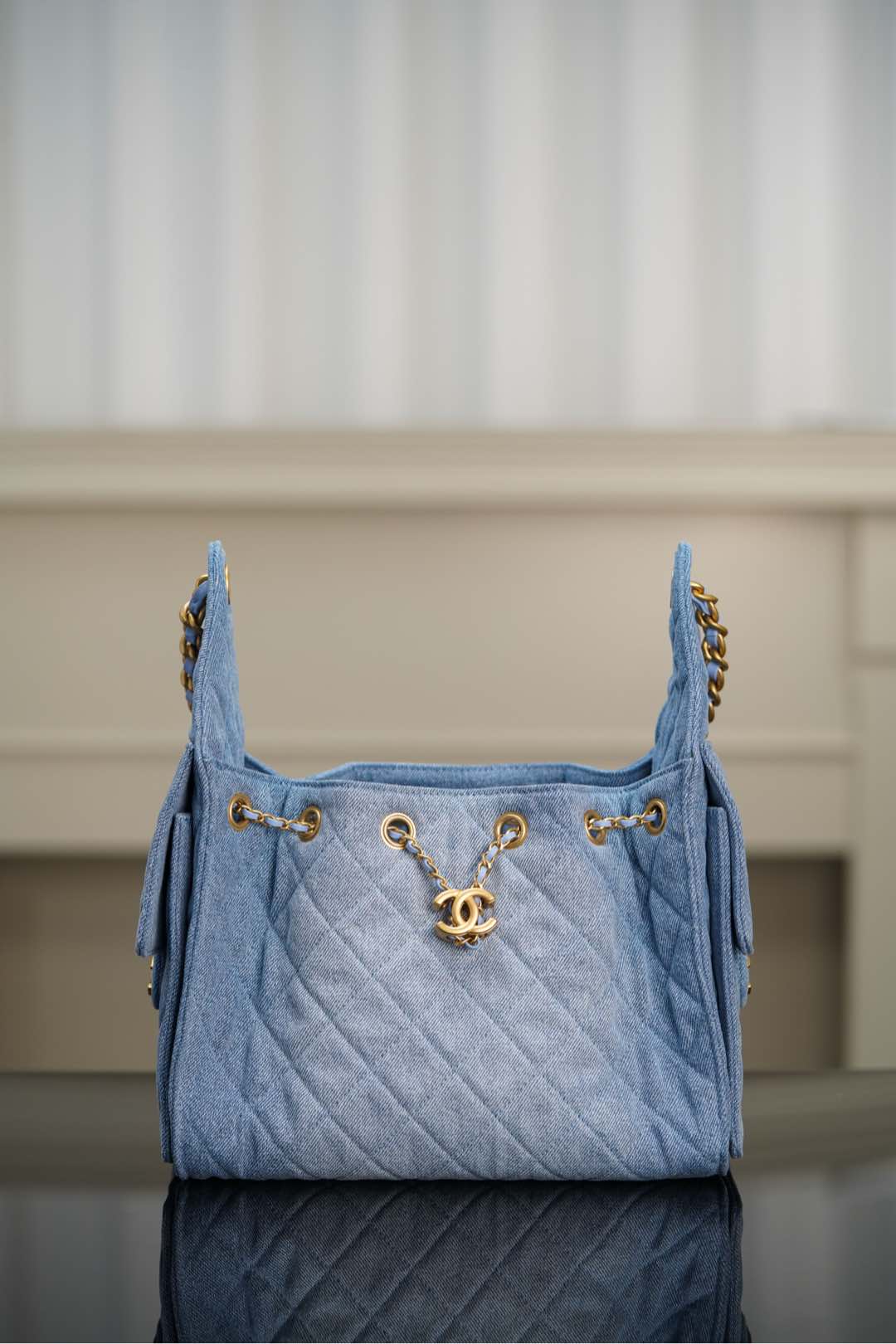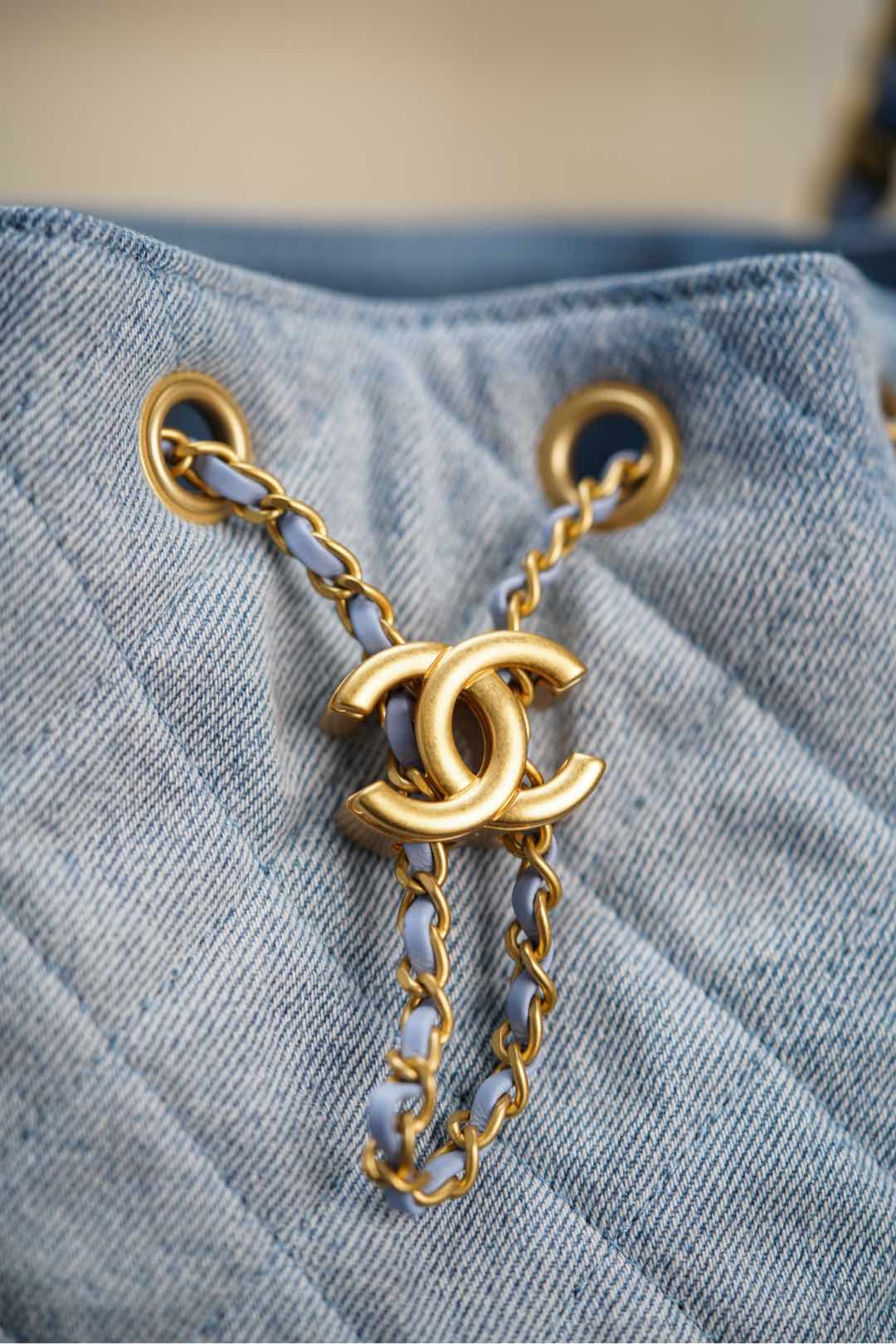 𝐂𝐡𝐚𝐧𝐞𝐥 𝟐𝟓𝐬 𝐬𝐦𝐚𝐥𝐥 𝐡𝐨𝐛𝐨 抽绳水桶包 牛仔蓝💙小号