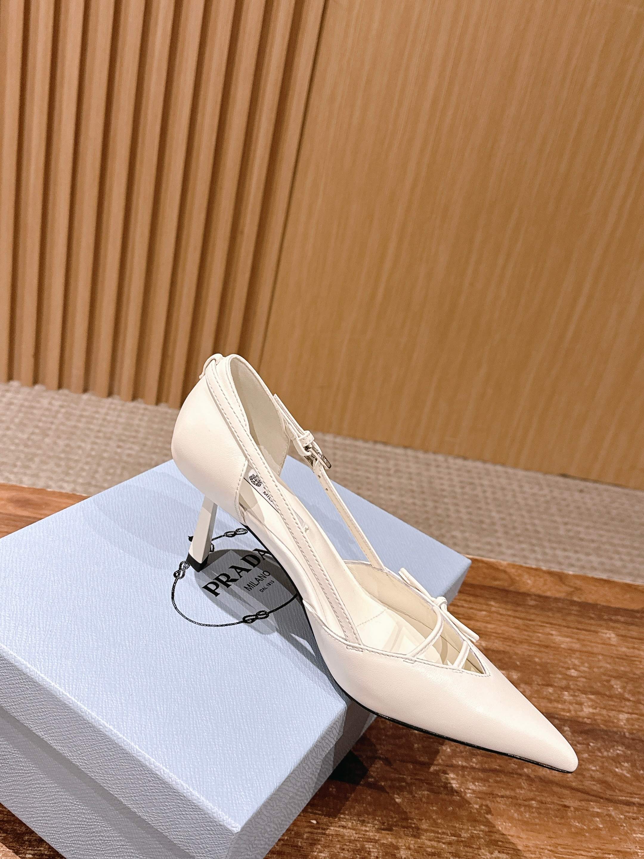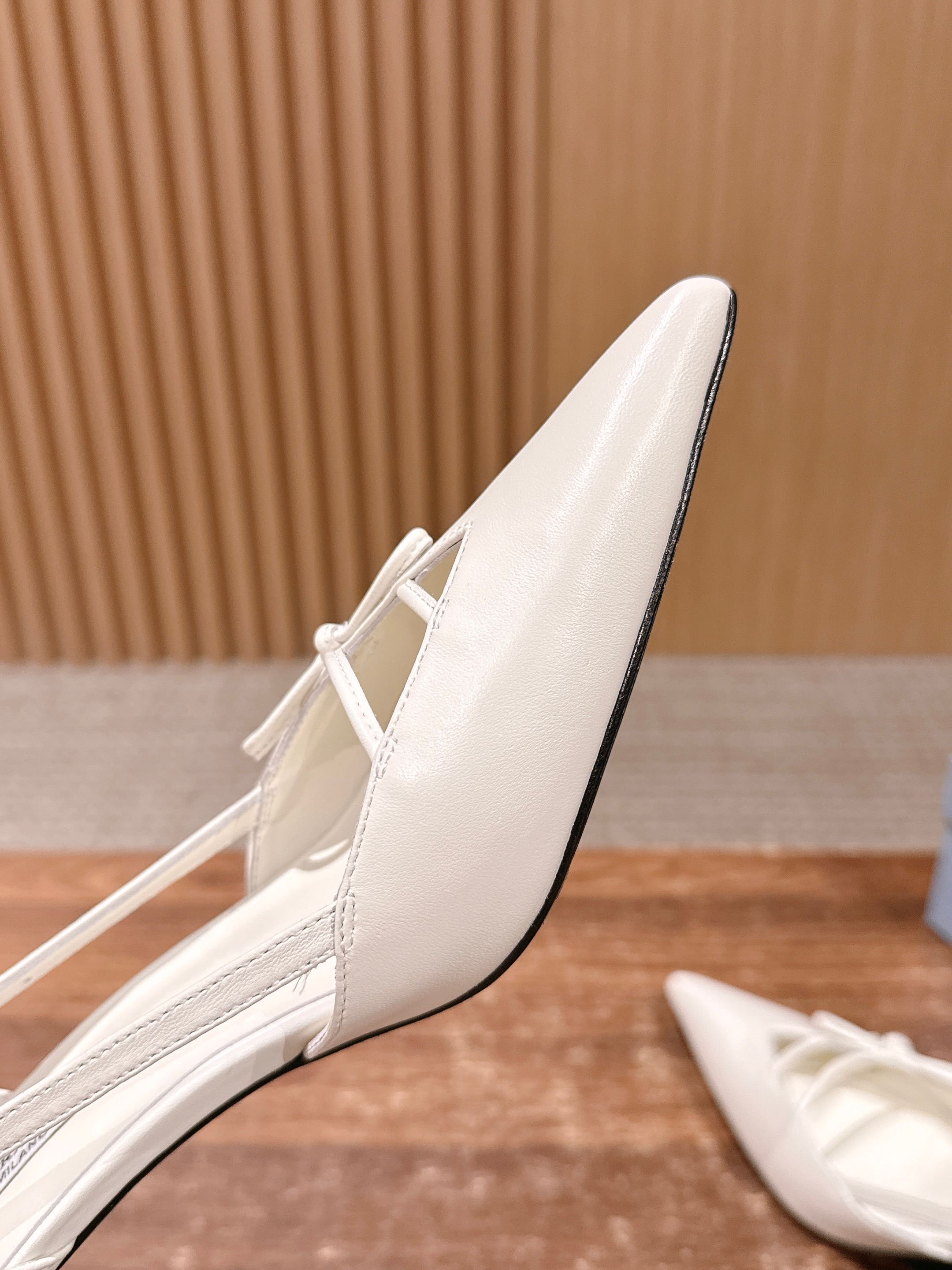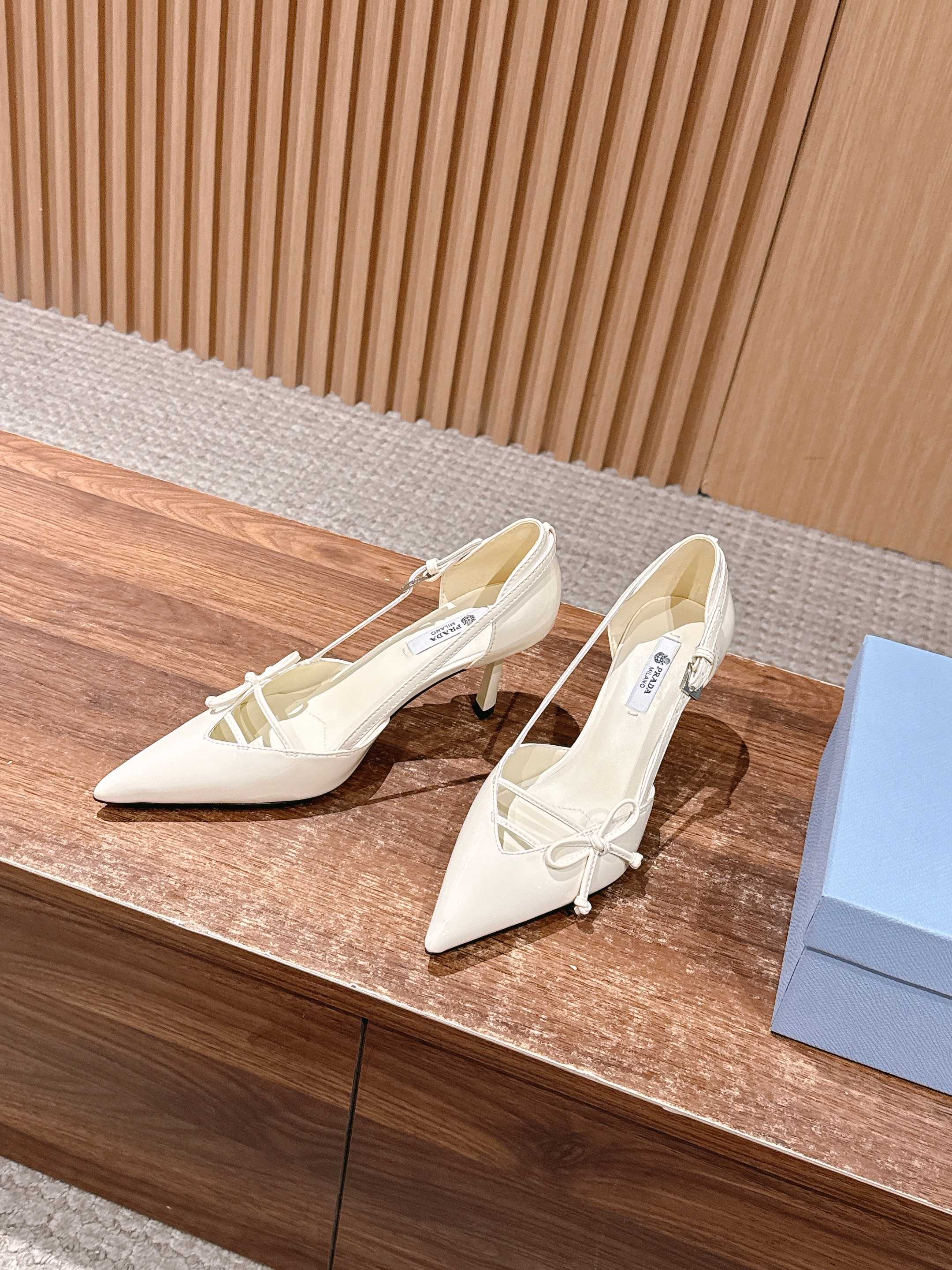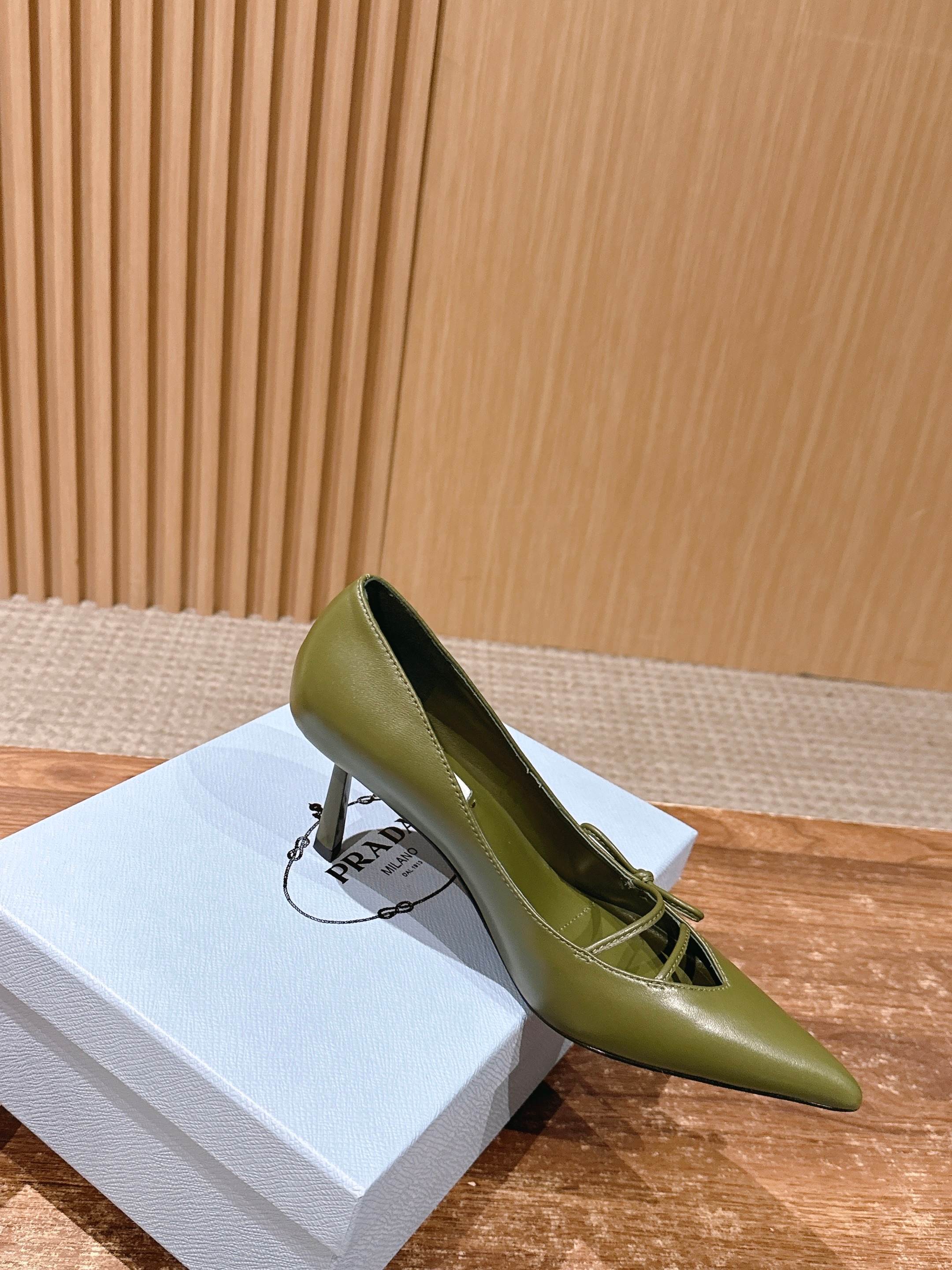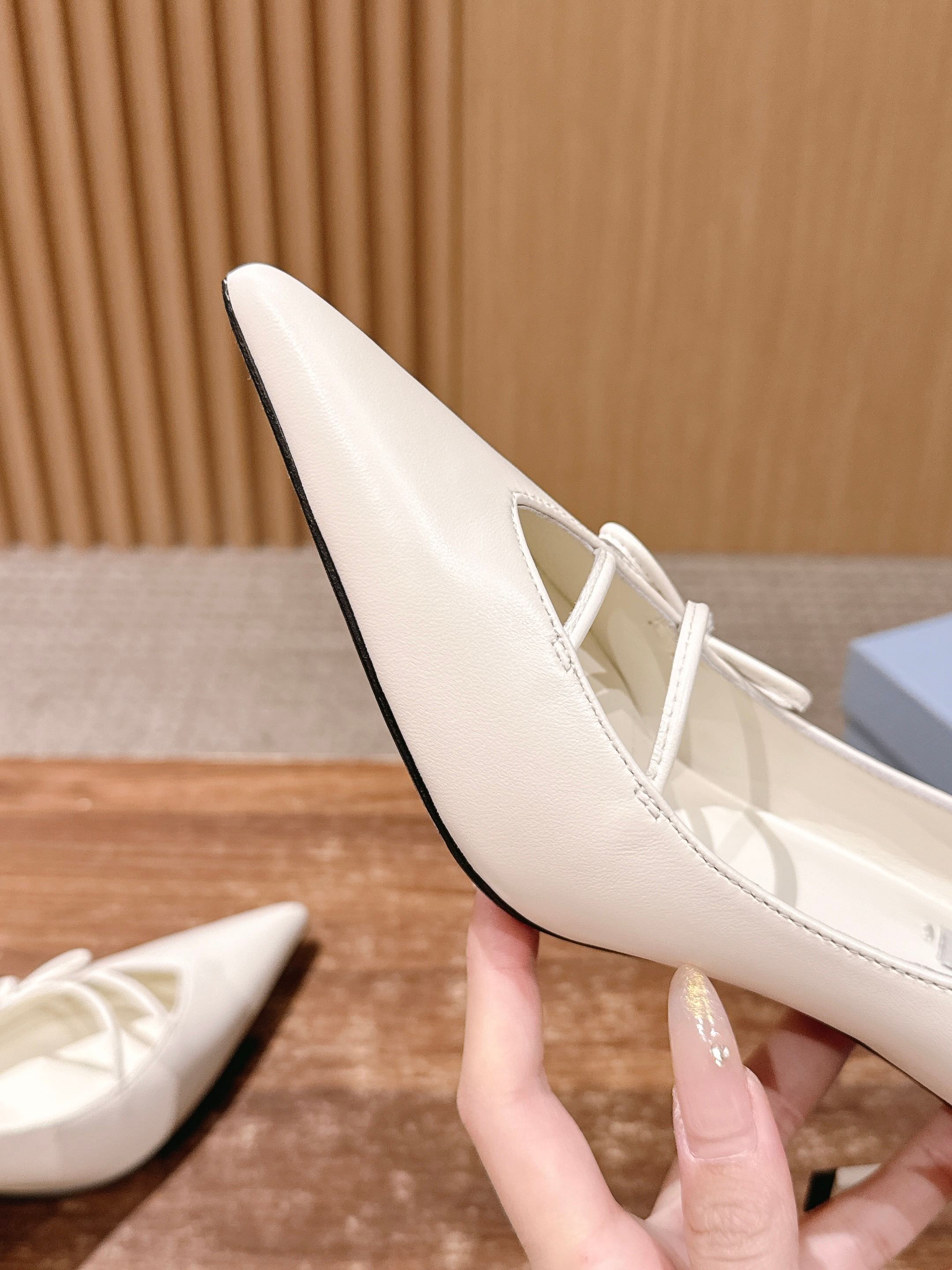 PRADA 普拉达2026早春新品尖头 中空凉鞋高跟鞋 尖头设计不止是拉长腿型的巧思 后饰带与蝴蝶结细节在刚柔之间找到平衡。 它挣脱了“舒适即奢侈”的惯性认知 却以羊皮内里的亲肤质感 实现心灵与身体的双重自由。 从通勤西装到晚宴礼裙 它无缝适配多元场景 让女性在干练与柔美中自主切换。 每一次落脚都是金属徽标与地面的轻语 是先锋设计与日常功能的共鸣 更是当代女性不被定义的底气与锋芒。 面料定制小羊皮材质 真皮大底 跟高7.5cm,5.5cmSize:35-39(40/41定制)