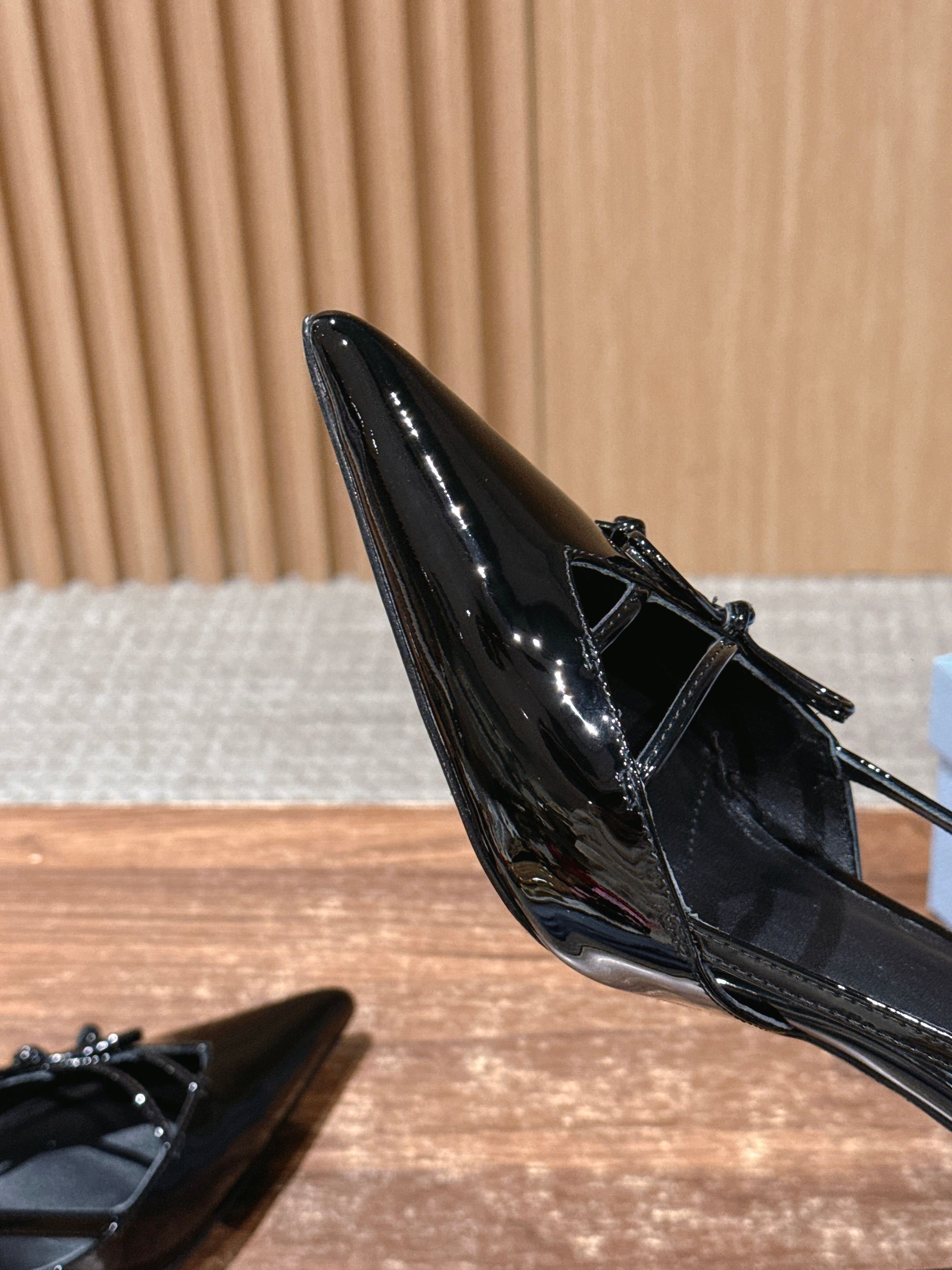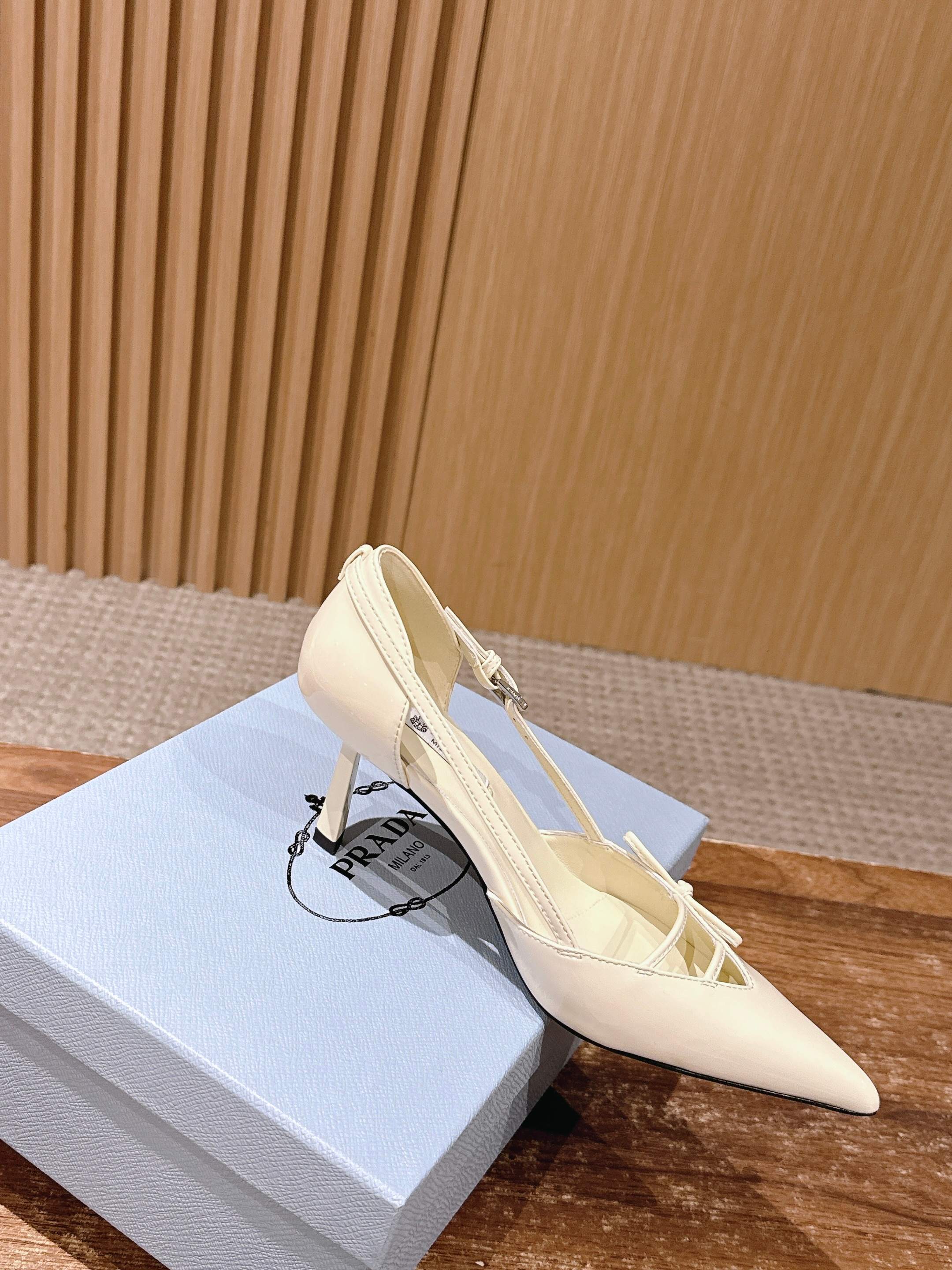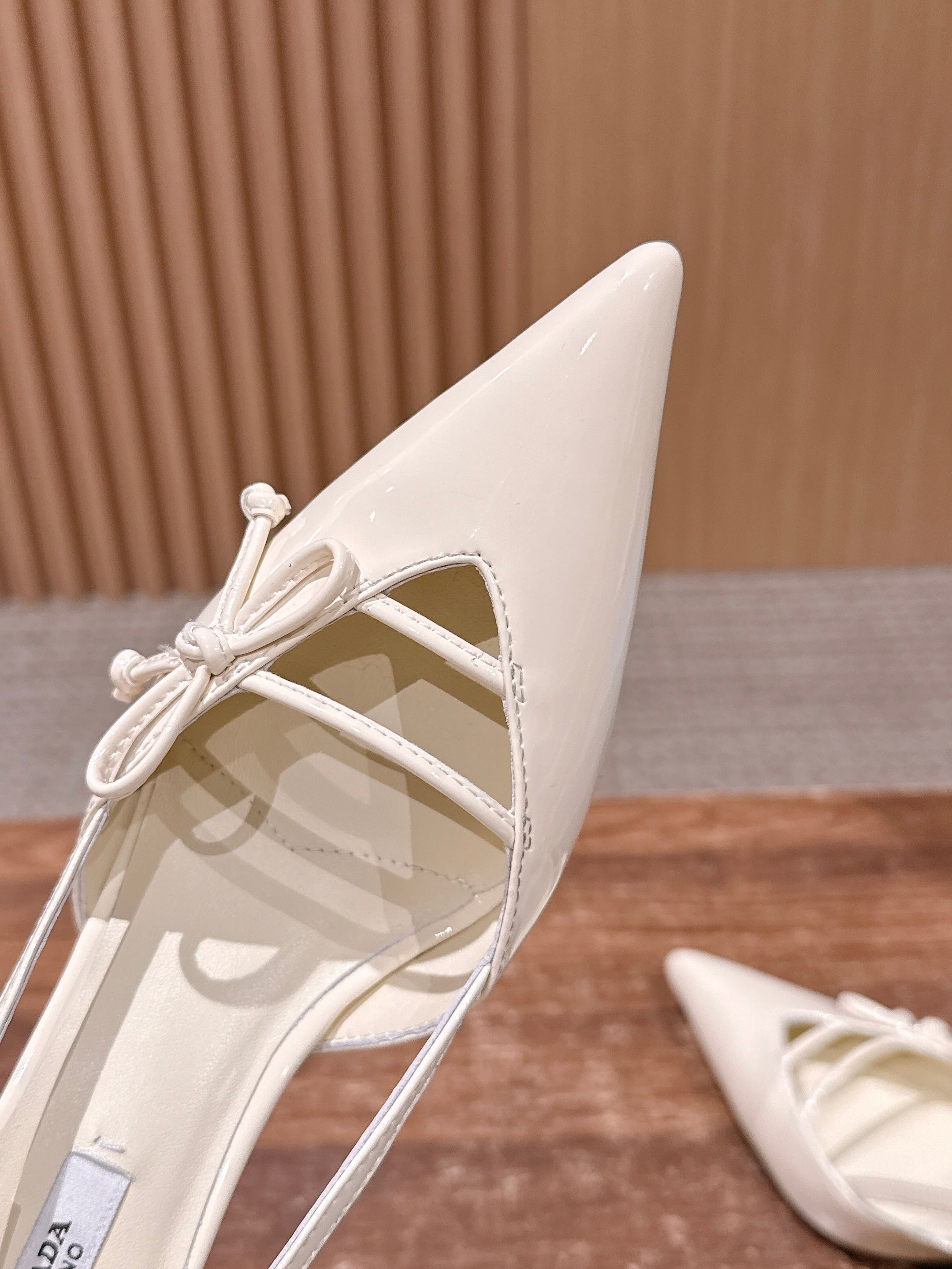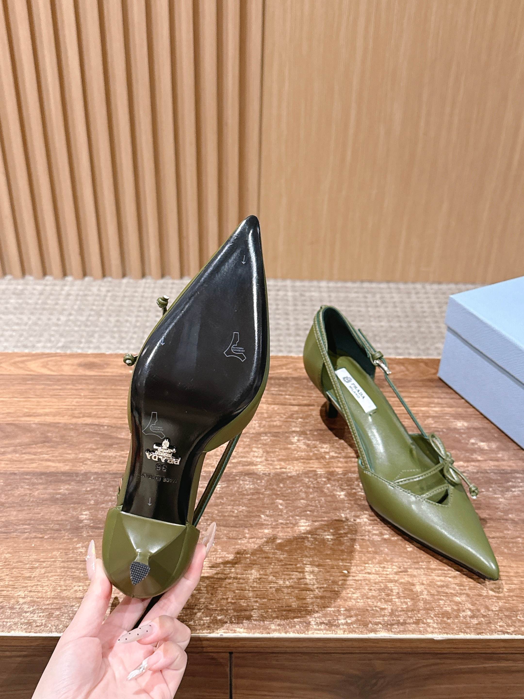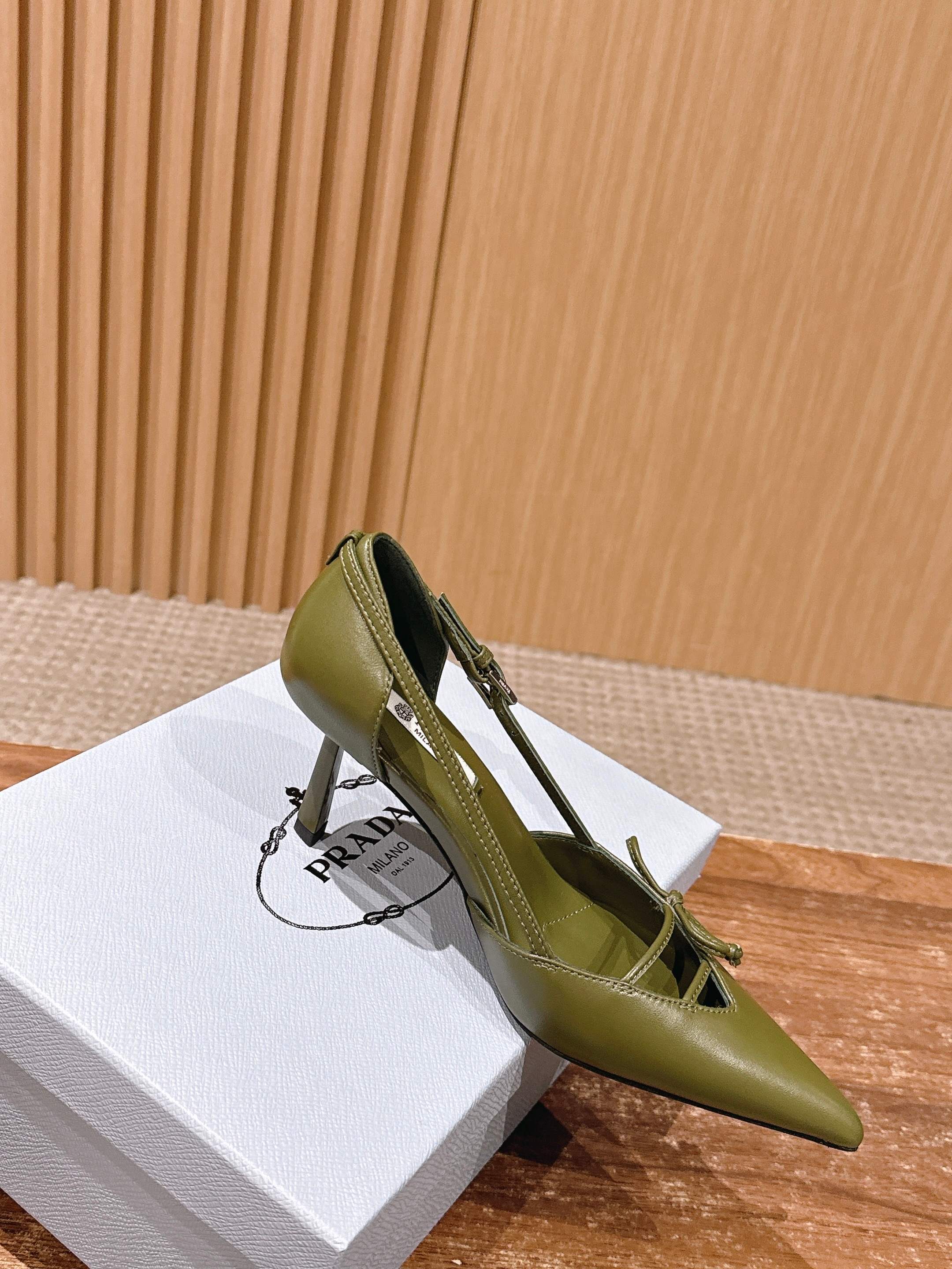 PRADA 普拉达2026早春新品尖头 中空凉鞋高跟鞋 尖头设计不止是拉长腿型的巧思 后饰带与蝴蝶结细节在刚柔之间找到平衡。 它挣脱了“舒适即奢侈”的惯性认知 却以羊皮内里的亲肤质感 实现心灵与身体的双重自由。 从通勤西装到晚宴礼裙 它无缝适配多元场景 让女性在干练与柔美中自主切换。 每一次落脚都是金属徽标与地面的轻语 是先锋设计与日常功能的共鸣 更是当代女性不被定义的底气与锋芒。 面料定制小羊皮材质 真皮大底 跟高7.5cm,5.5cmSize:35-39(40/41定制)