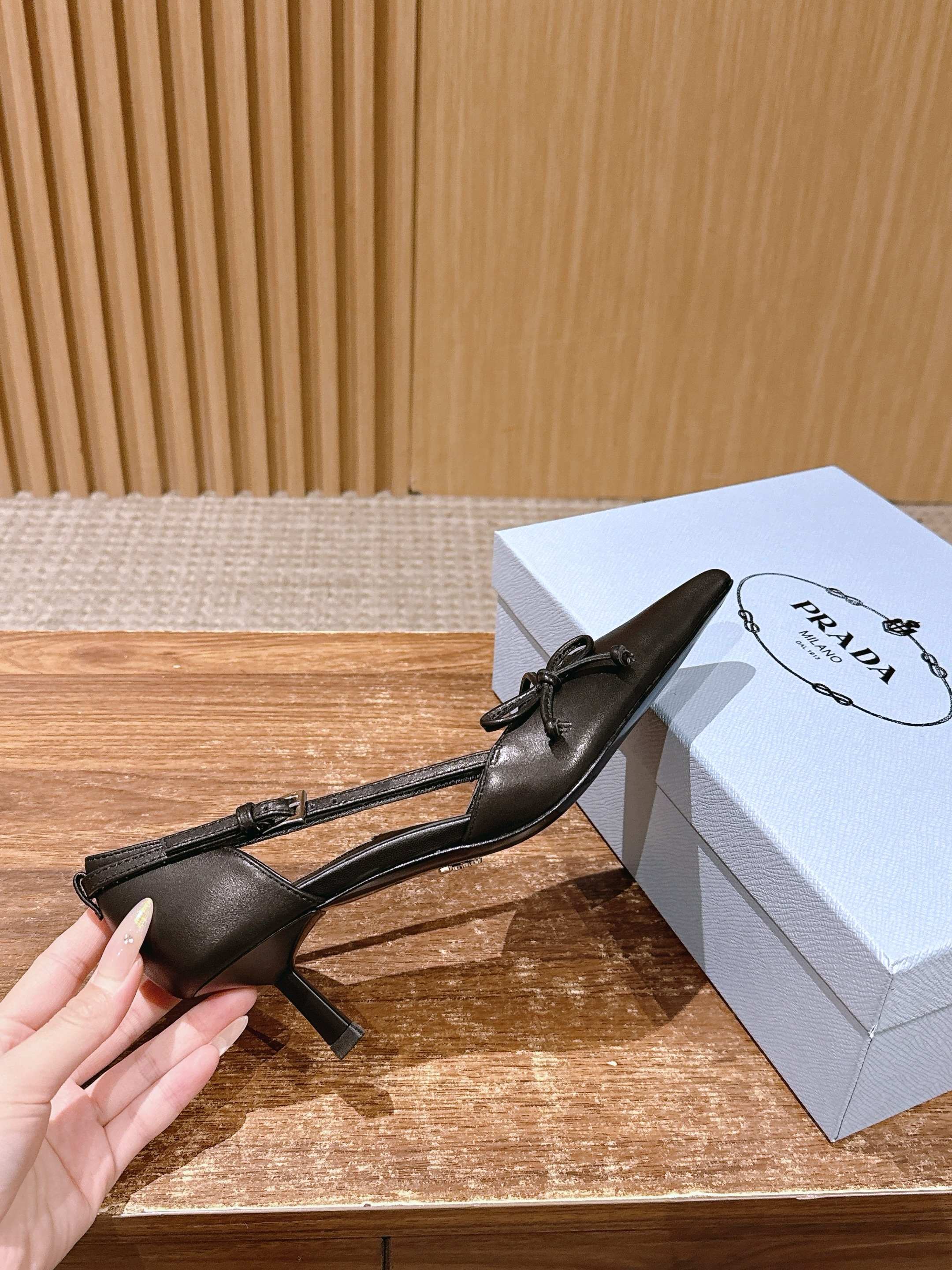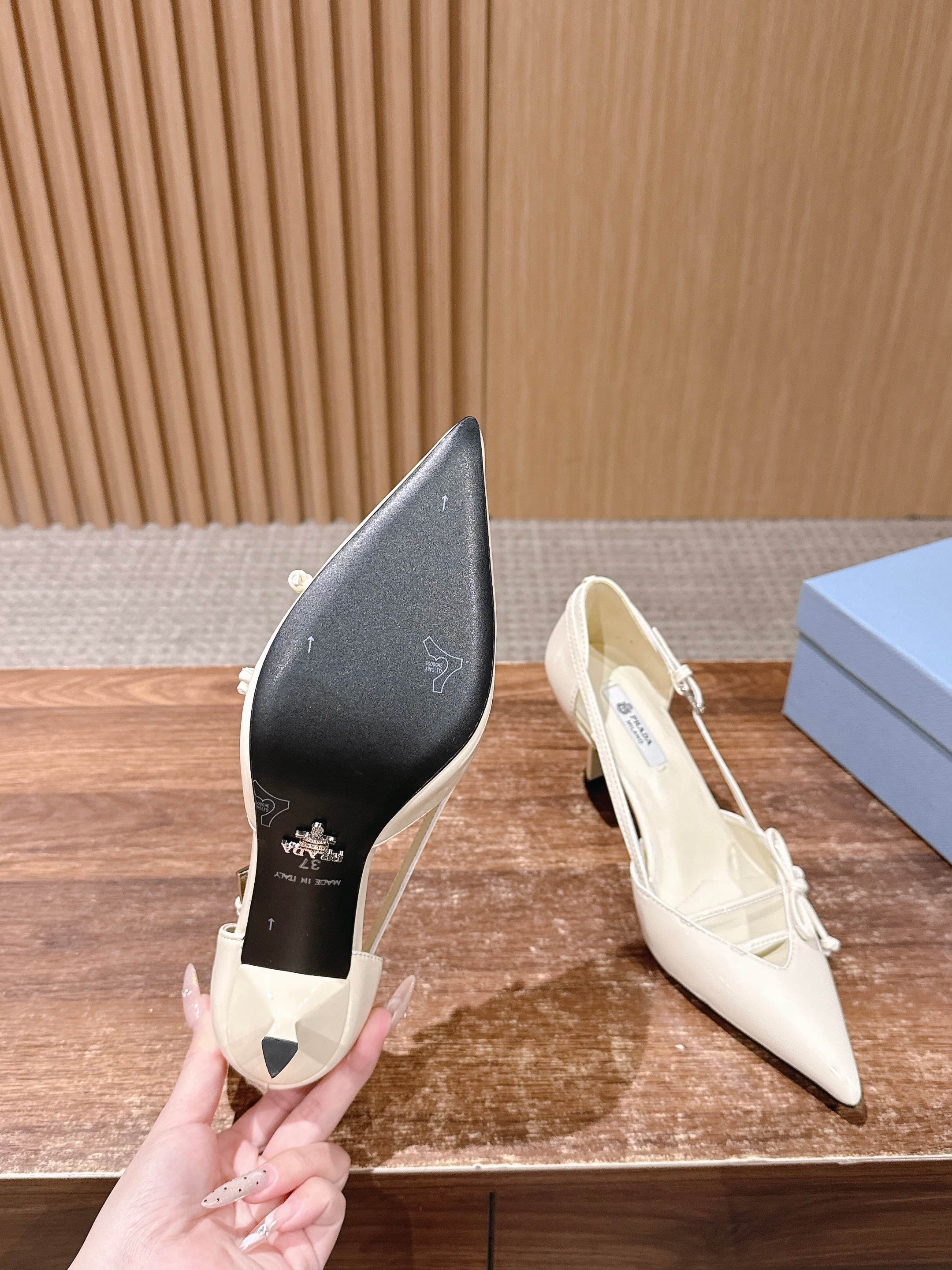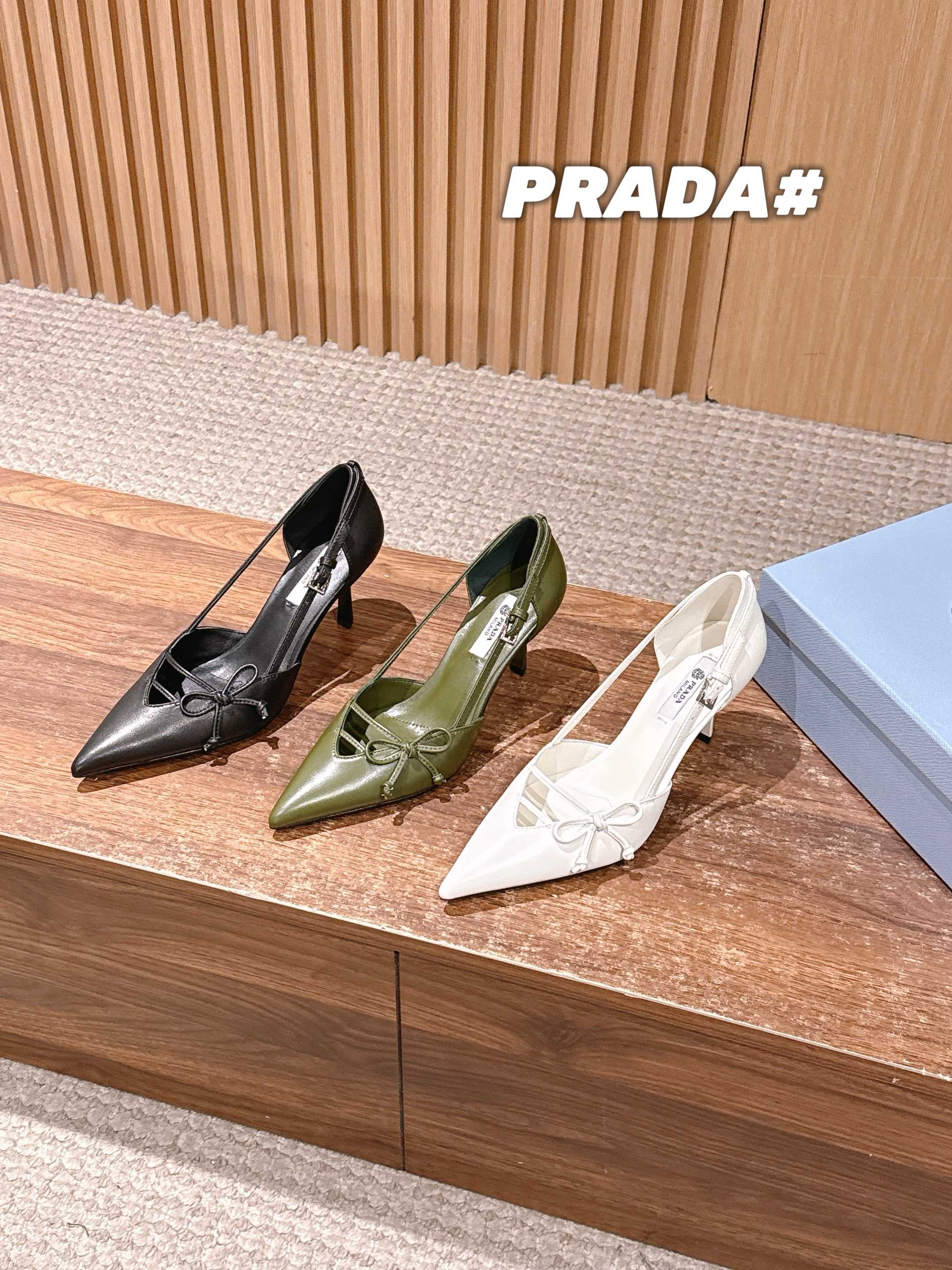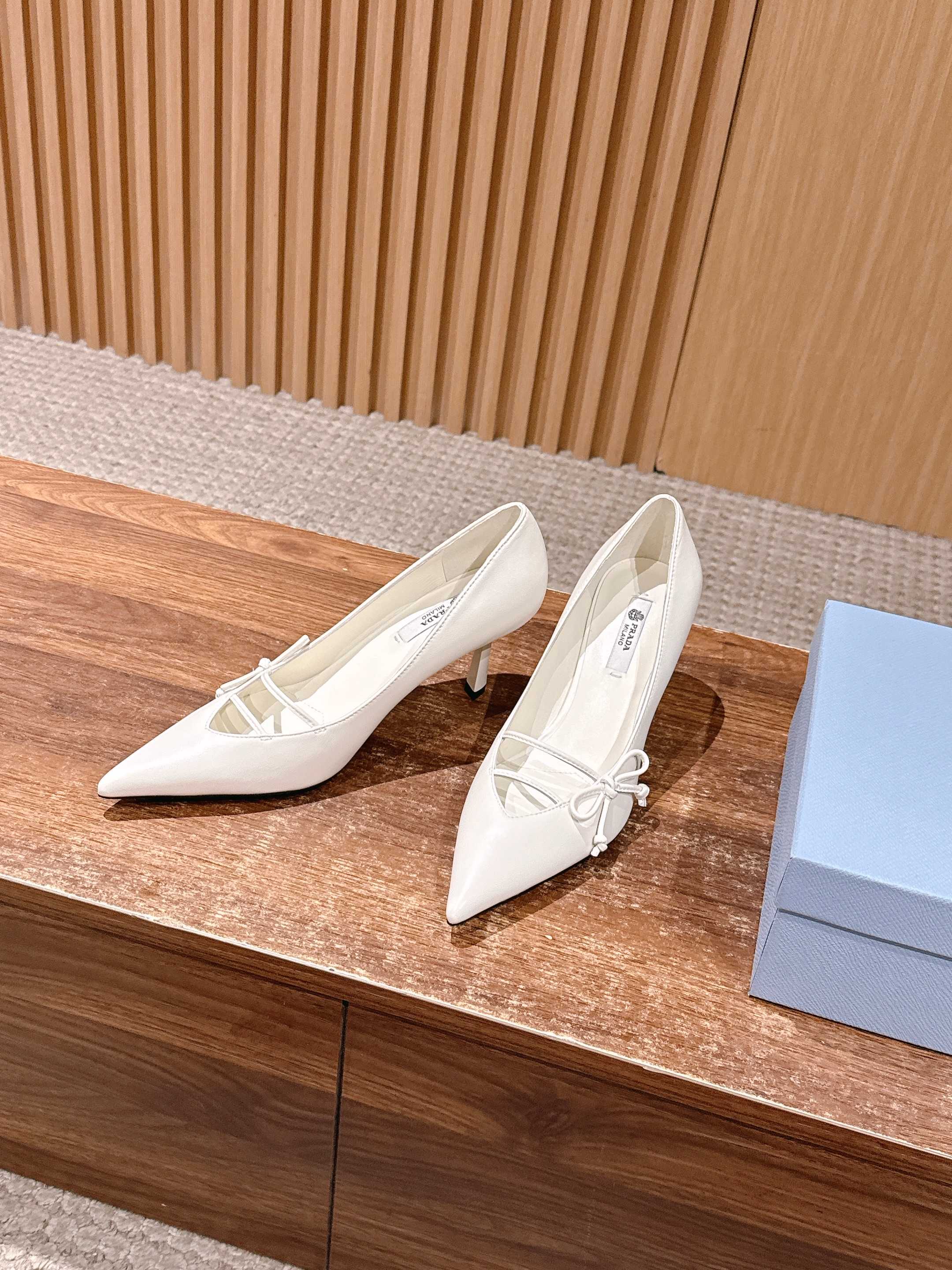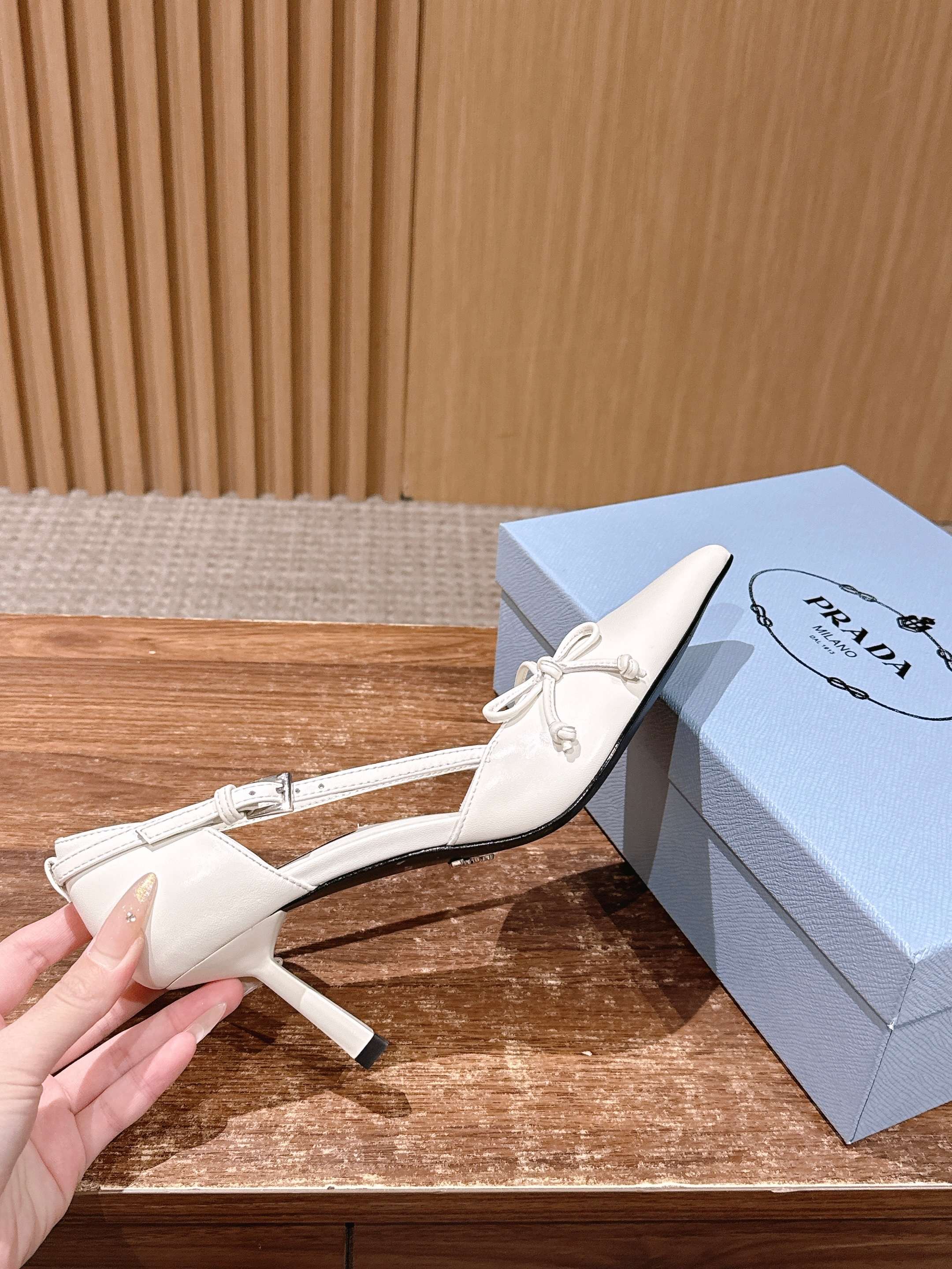 PRADA 普拉达2026早春新品尖头 中空凉鞋高跟鞋 尖头设计不止是拉长腿型的巧思 后饰带与蝴蝶结细节在刚柔之间找到平衡。 它挣脱了“舒适即奢侈”的惯性认知 却以羊皮内里的亲肤质感 实现心灵与身体的双重自由。 从通勤西装到晚宴礼裙 它无缝适配多元场景 让女性在干练与柔美中自主切换。 每一次落脚都是金属徽标与地面的轻语 是先锋设计与日常功能的共鸣 更是当代女性不被定义的底气与锋芒。 面料定制小羊皮材质 真皮大底 跟高7.5cm,5.5cmSize:35-39(40/41定制)