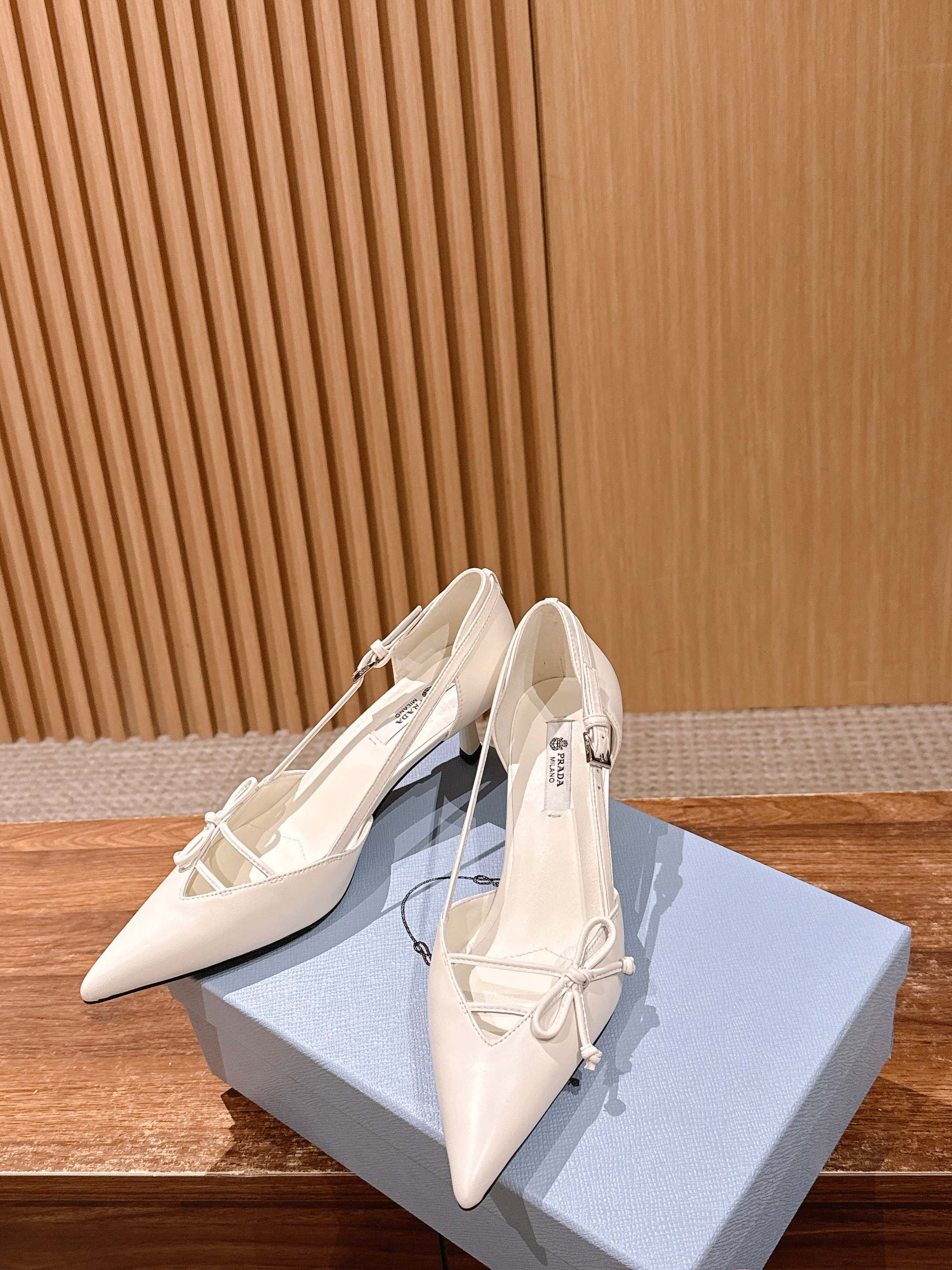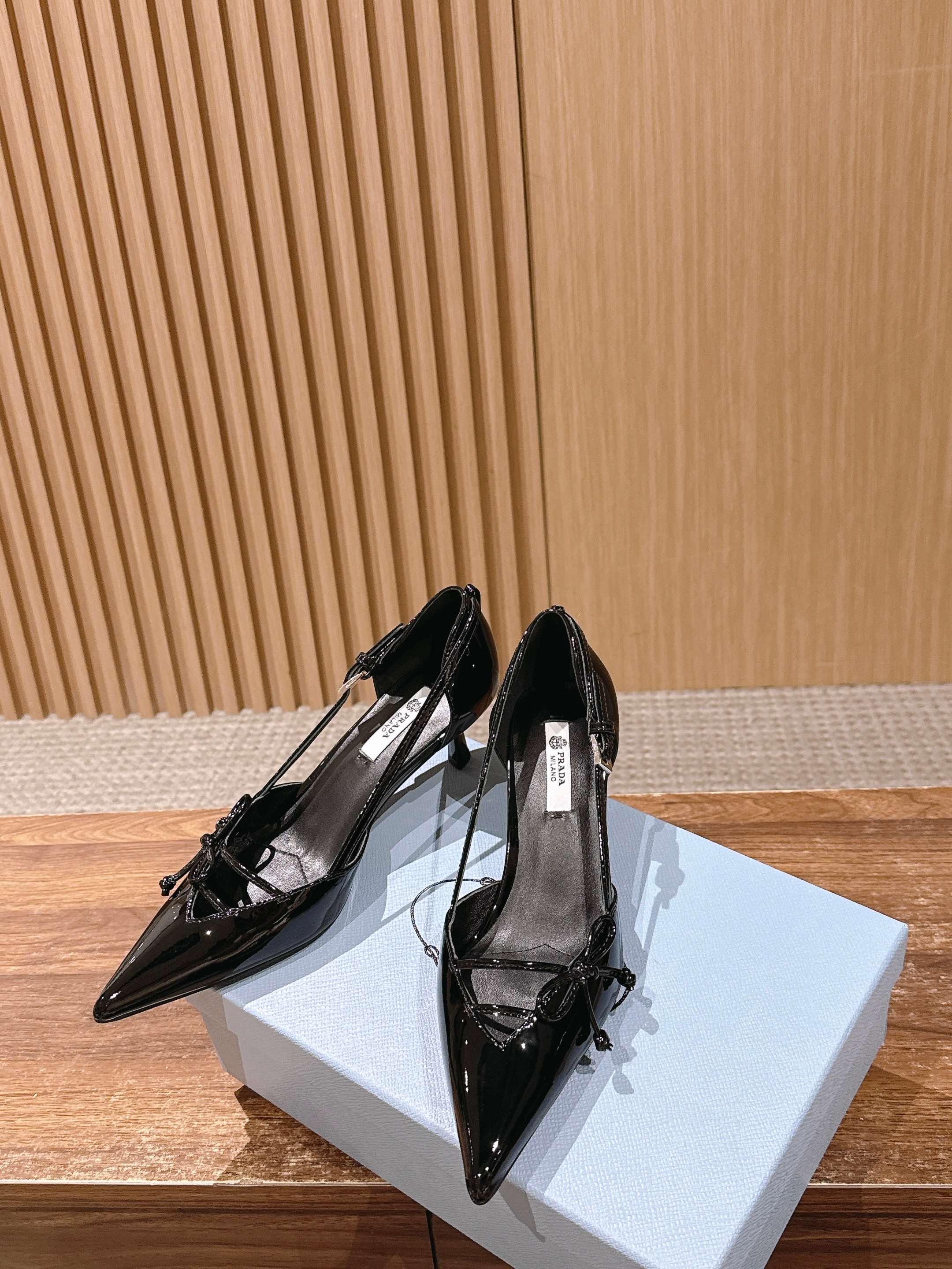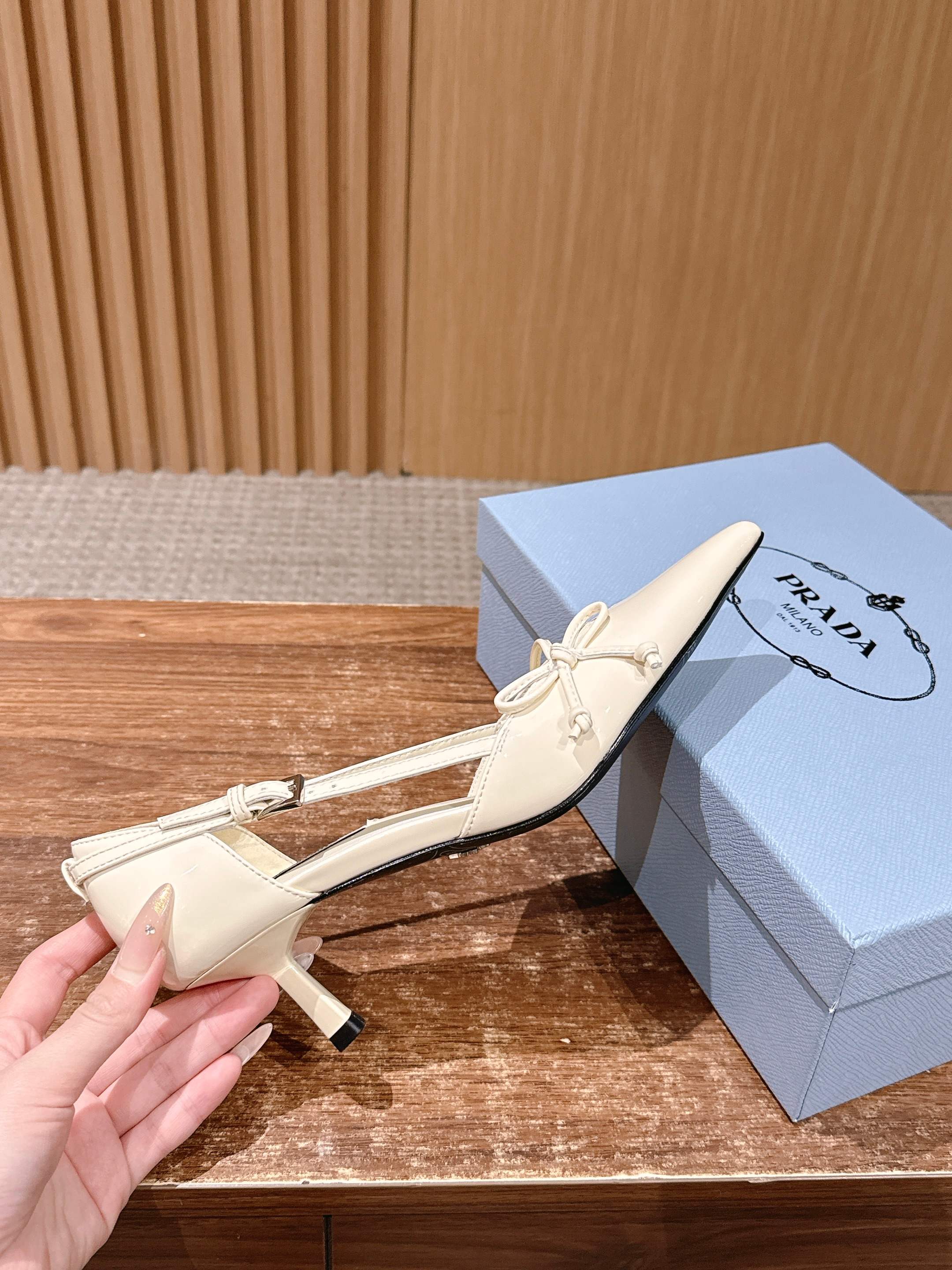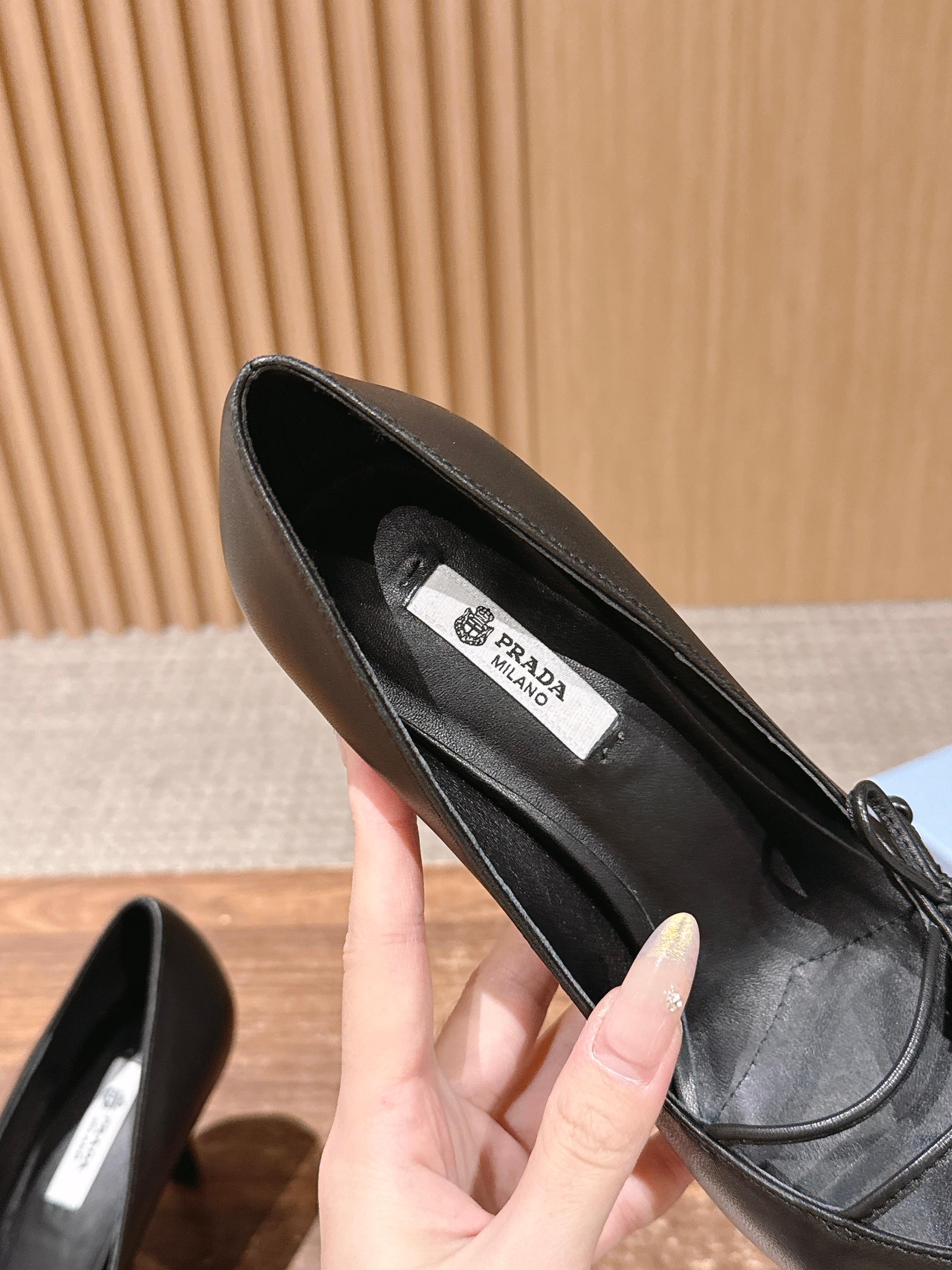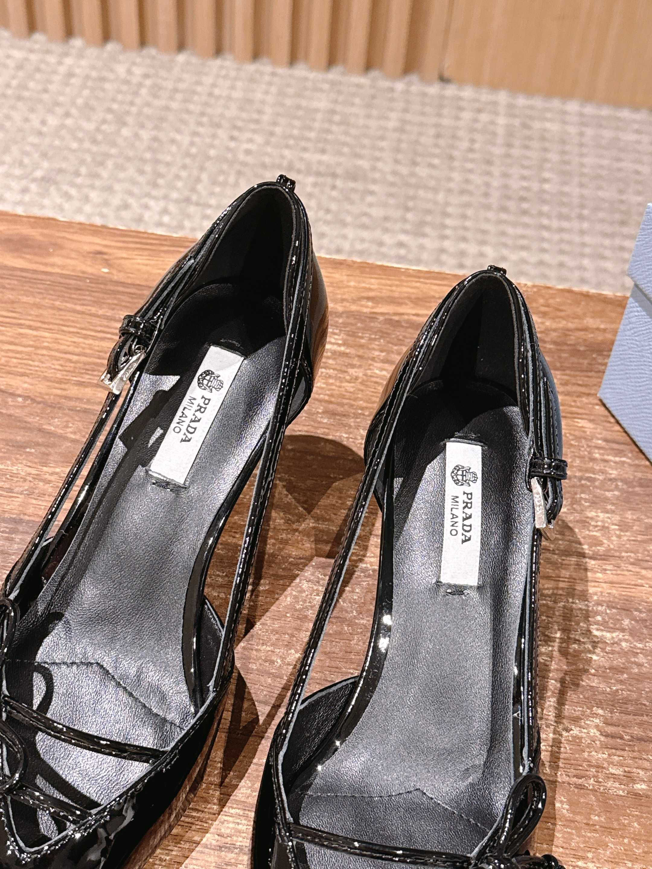 PRADA 普拉达2026早春新品尖头 中空凉鞋高跟鞋 尖头设计不止是拉长腿型的巧思 后饰带与蝴蝶结细节在刚柔之间找到平衡。 它挣脱了“舒适即奢侈”的惯性认知 却以羊皮内里的亲肤质感 实现心灵与身体的双重自由。 从通勤西装到晚宴礼裙 它无缝适配多元场景 让女性在干练与柔美中自主切换。 每一次落脚都是金属徽标与地面的轻语 是先锋设计与日常功能的共鸣 更是当代女性不被定义的底气与锋芒。 面料定制小羊皮材质 真皮大底 跟高7.5cm,5.5cmSize:35-39(40/41定制)