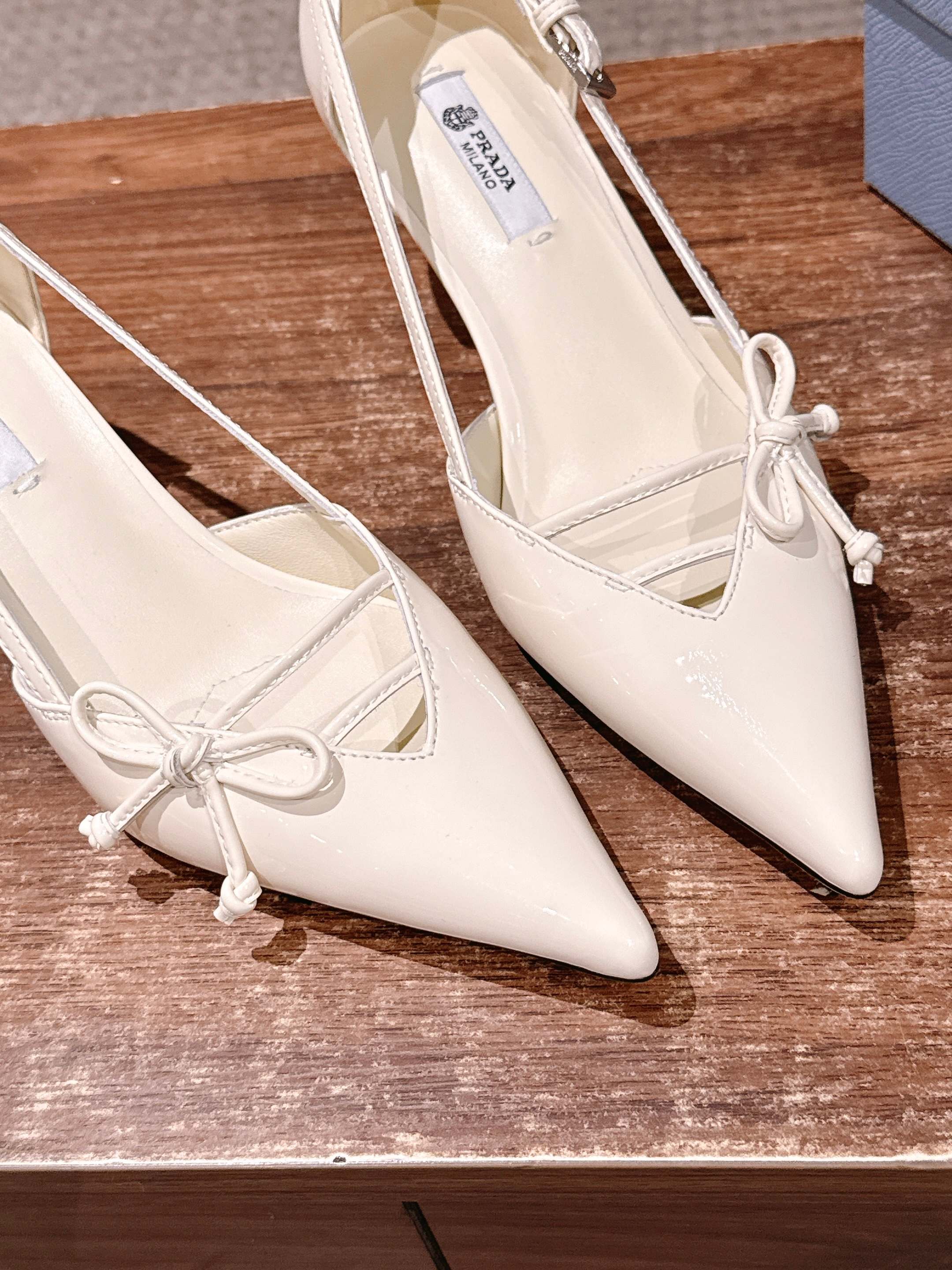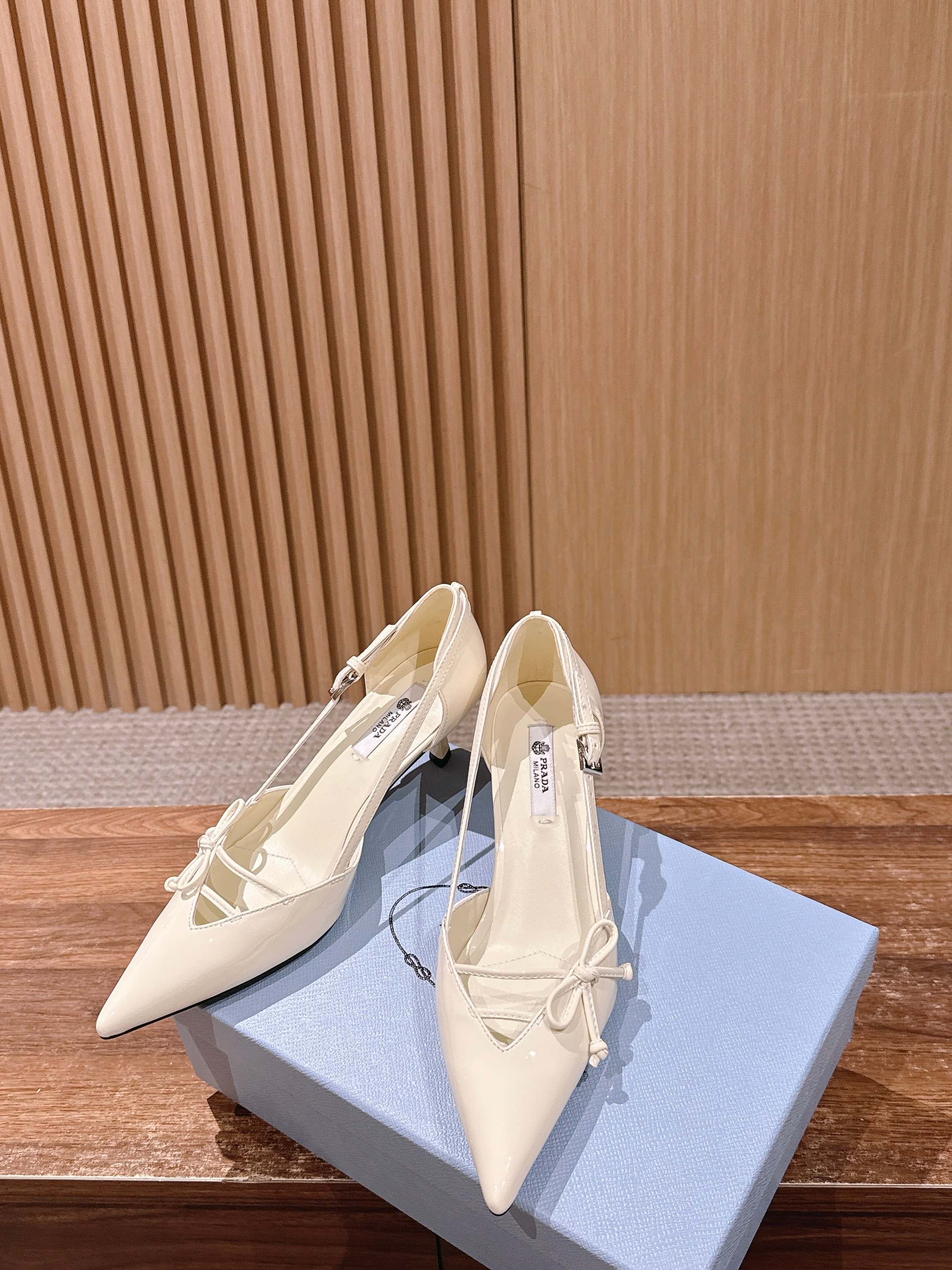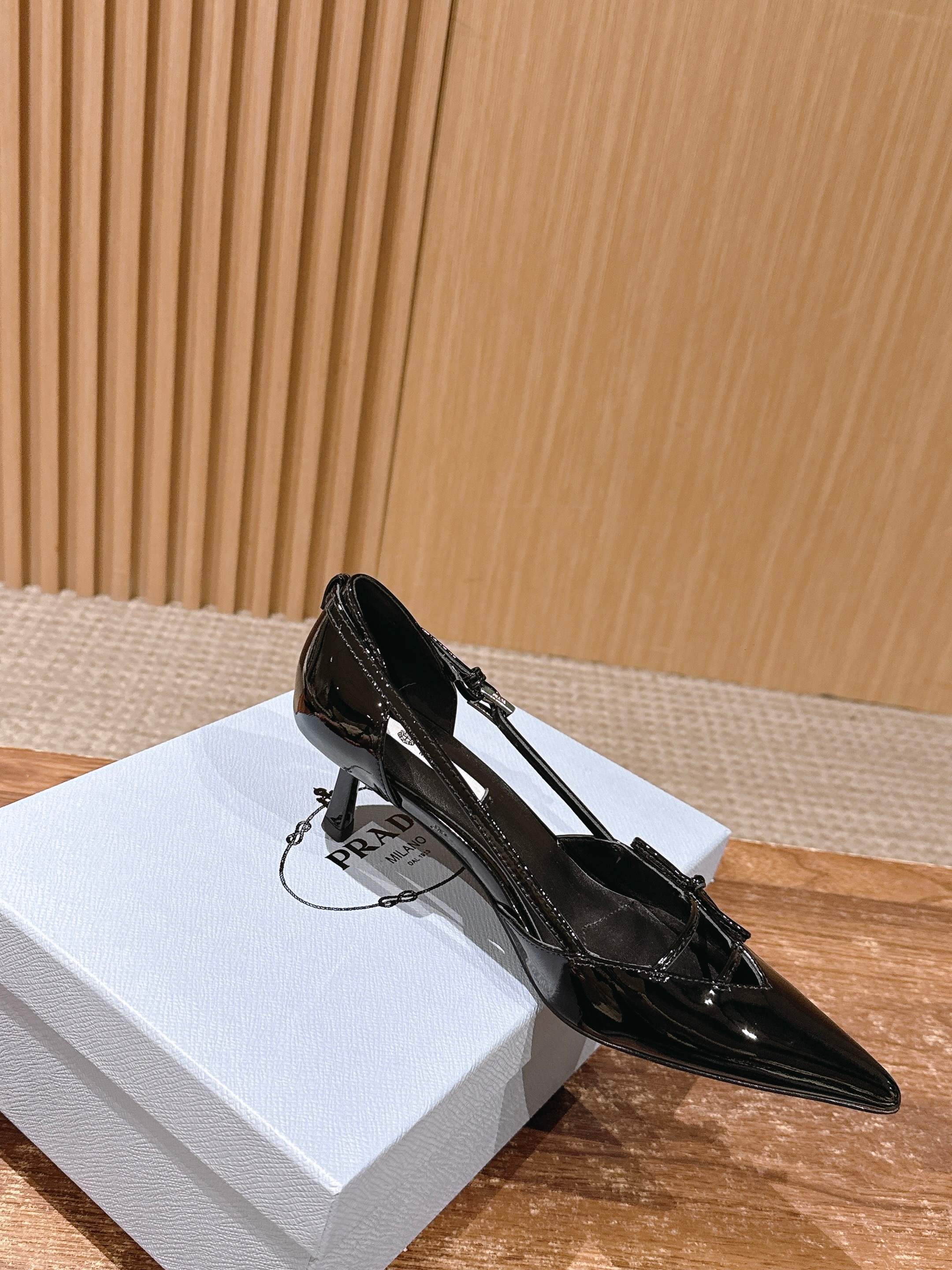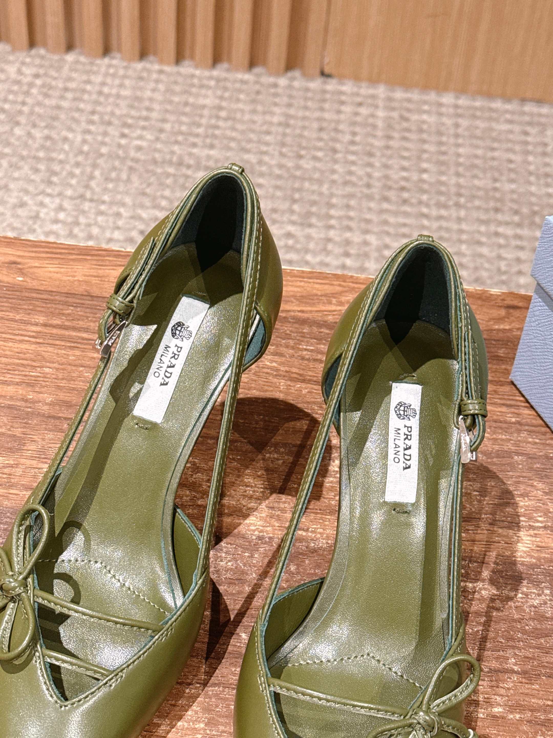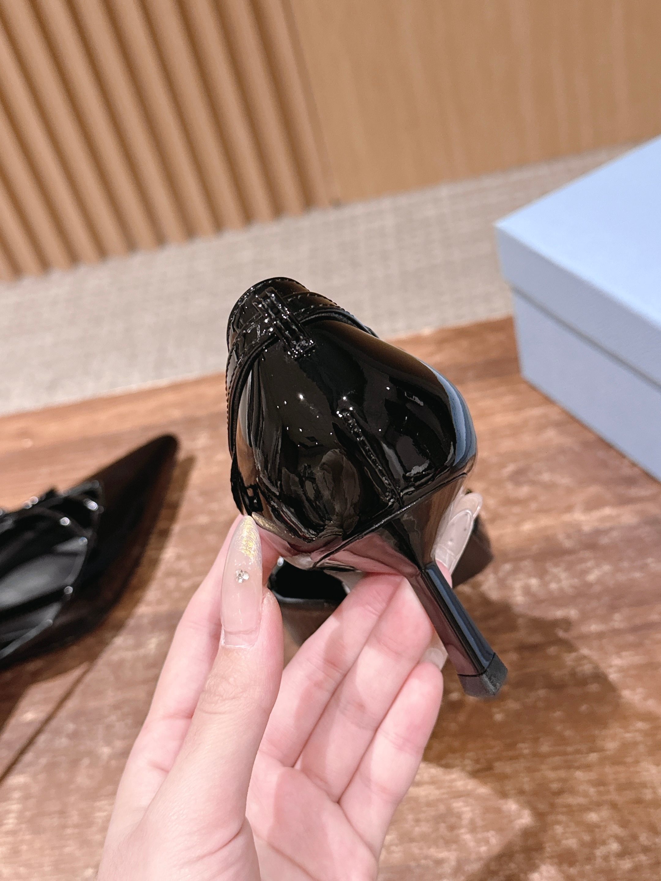 PRADA 普拉达2026早春新品尖头 中空凉鞋高跟鞋 尖头设计不止是拉长腿型的巧思 后饰带与蝴蝶结细节在刚柔之间找到平衡。 它挣脱了“舒适即奢侈”的惯性认知 却以羊皮内里的亲肤质感 实现心灵与身体的双重自由。 从通勤西装到晚宴礼裙 它无缝适配多元场景 让女性在干练与柔美中自主切换。 每一次落脚都是金属徽标与地面的轻语 是先锋设计与日常功能的共鸣 更是当代女性不被定义的底气与锋芒。 面料定制小羊皮材质 真皮大底 跟高7.5cm,5.5cmSize:35-39(40/41定制)