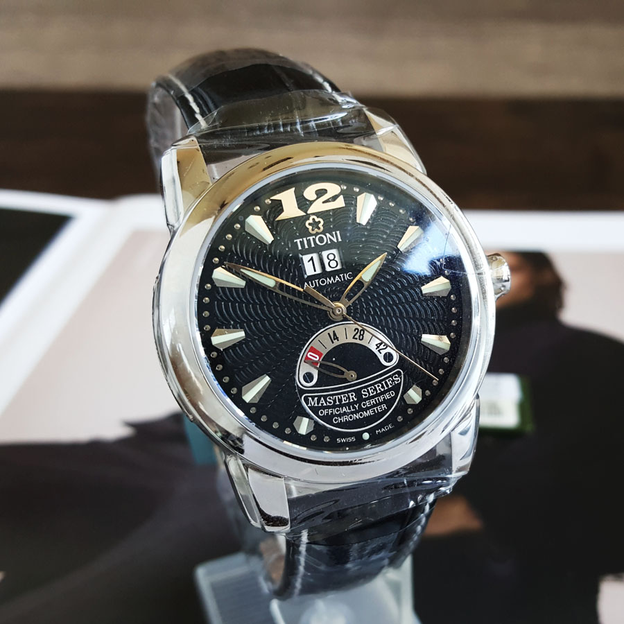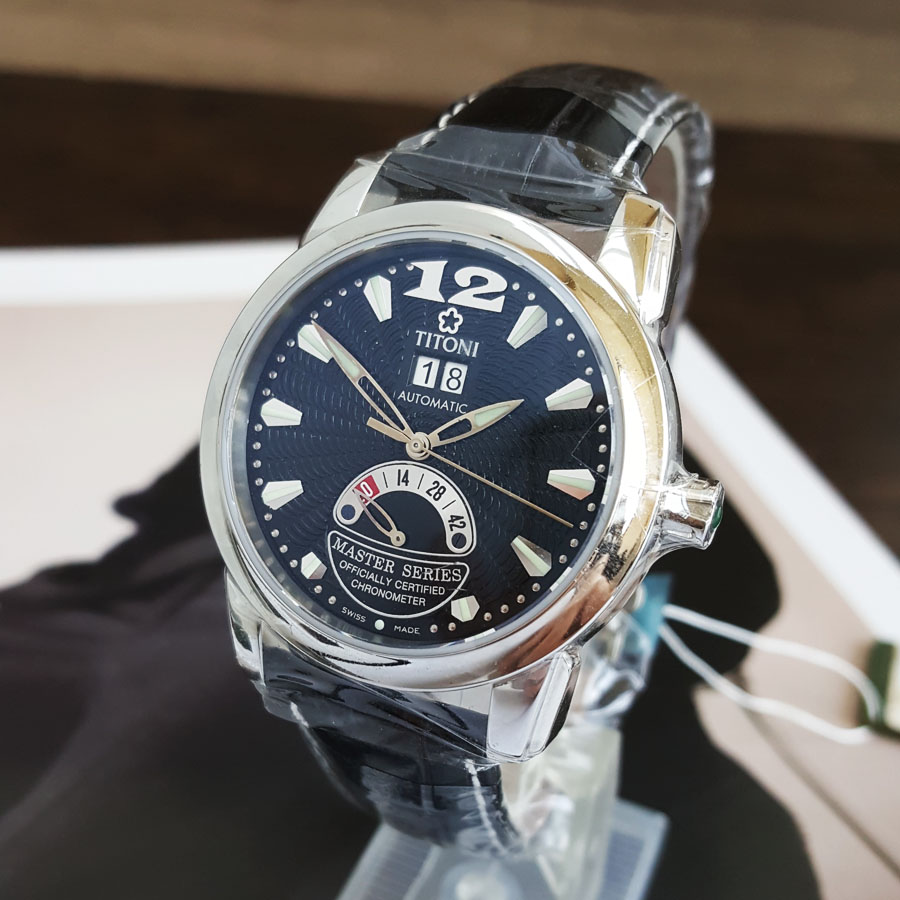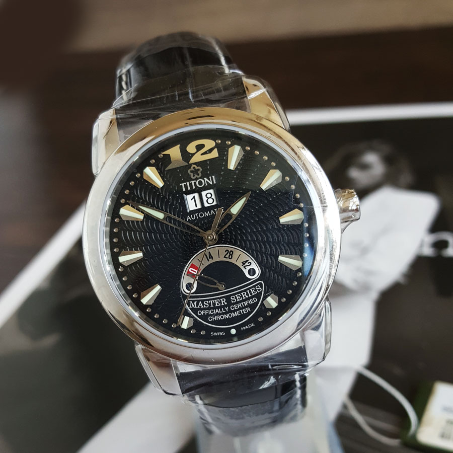 【99新】TITONI 梅花94888 S-ST-296天文台认证自动机械机芯大日历、动力储备显示39MM(男款)Master Series 大师系列精钢170426NJ40