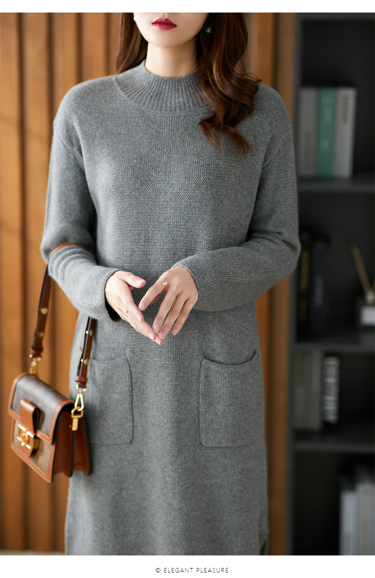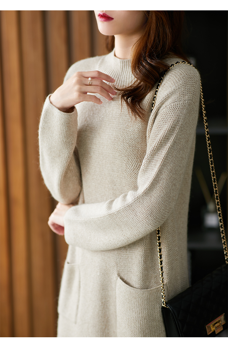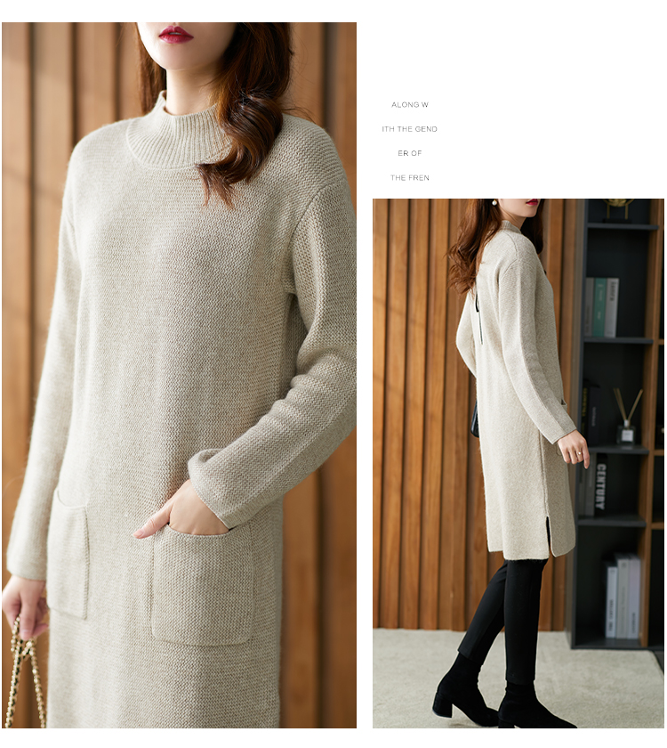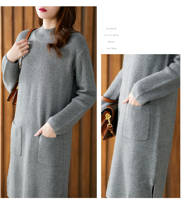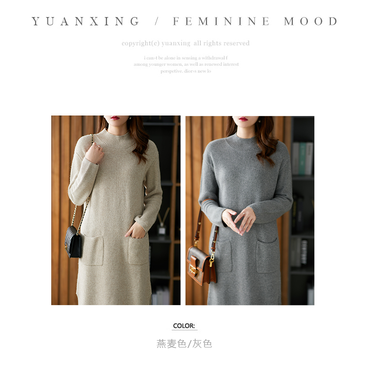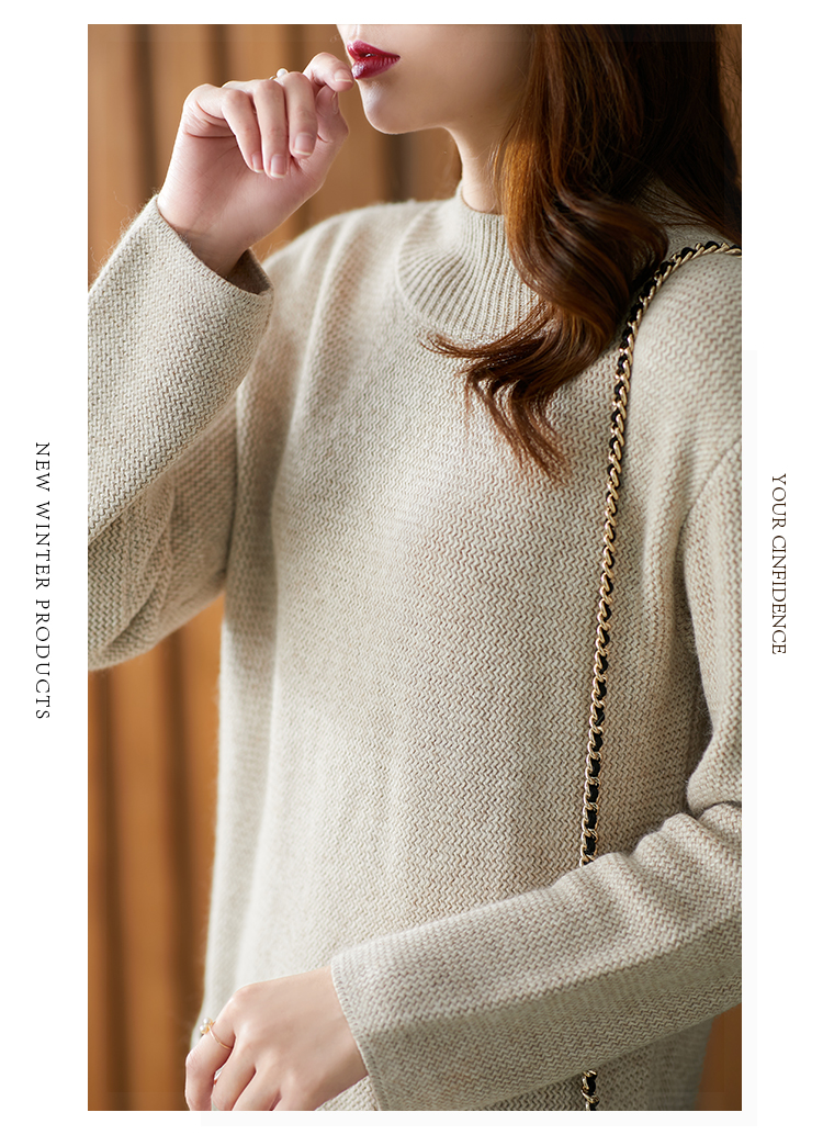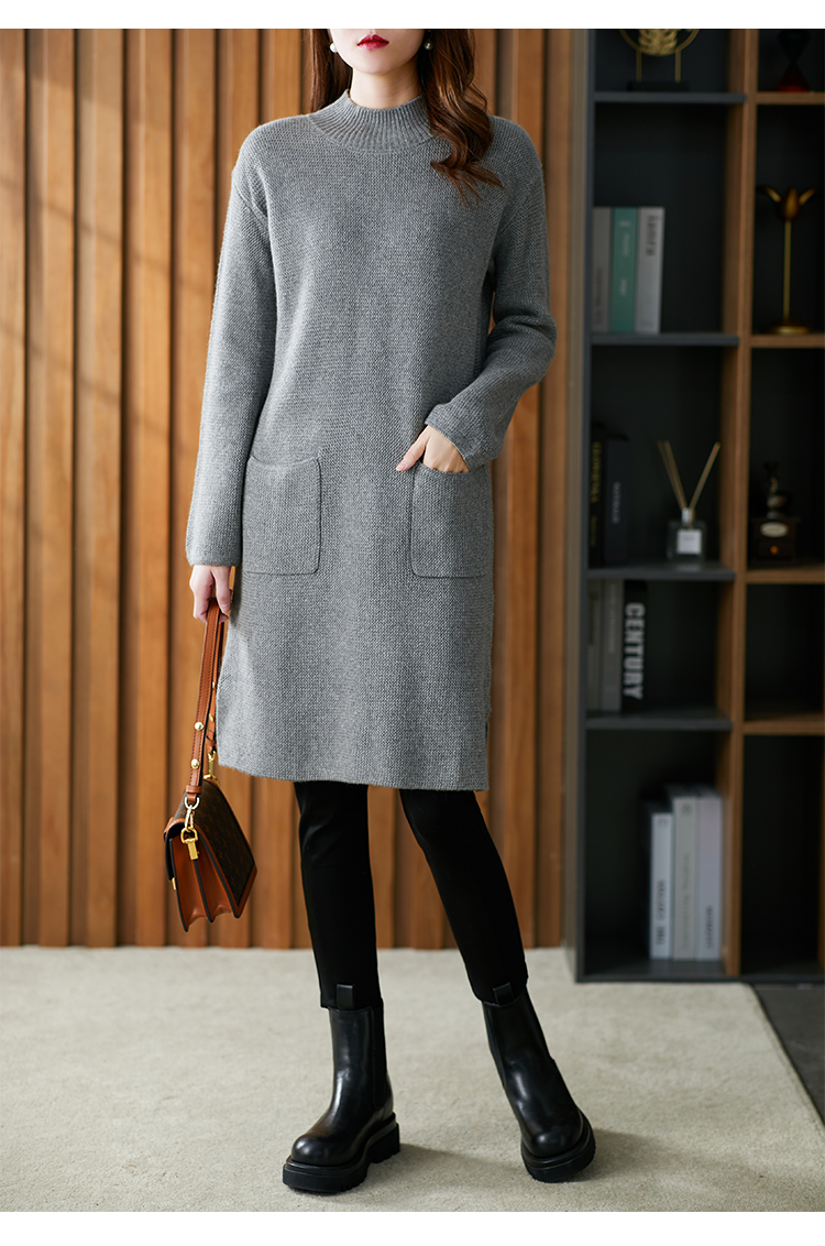 59549原形半高领毛衣女2024秋冬新款韩版中长款直筒纯色百搭打底针织衫