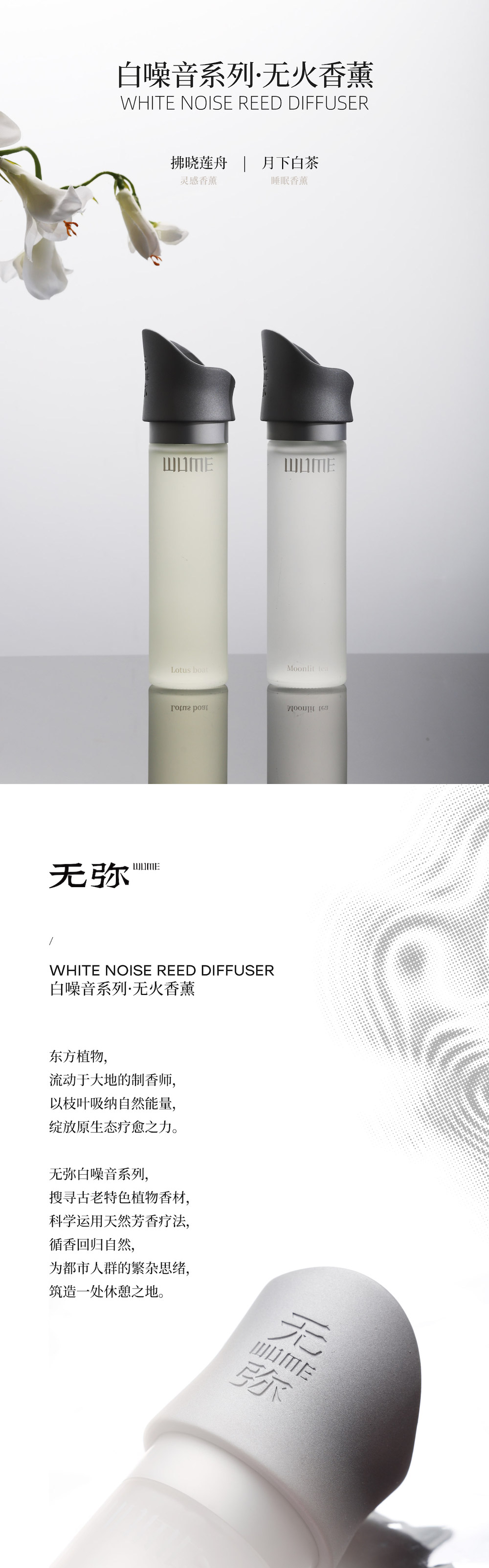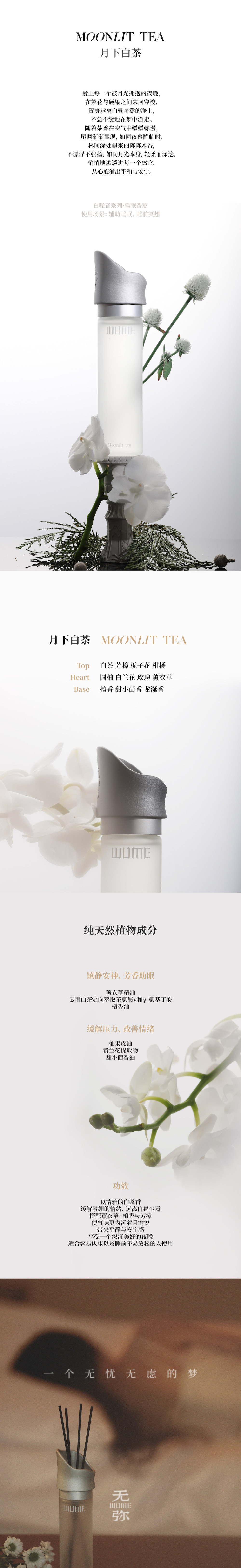 无弥白噪音系列无火香薰|月下白茶睡眠香薰|拂晓莲舟灵感香薰