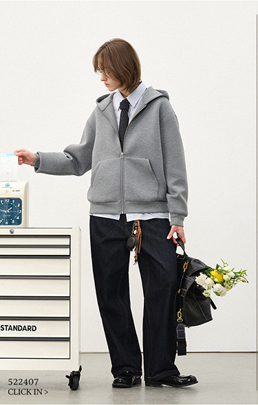 714street短宽boxy版型连帽卫衣开衫男2025秋季新款帽衫情侣外套