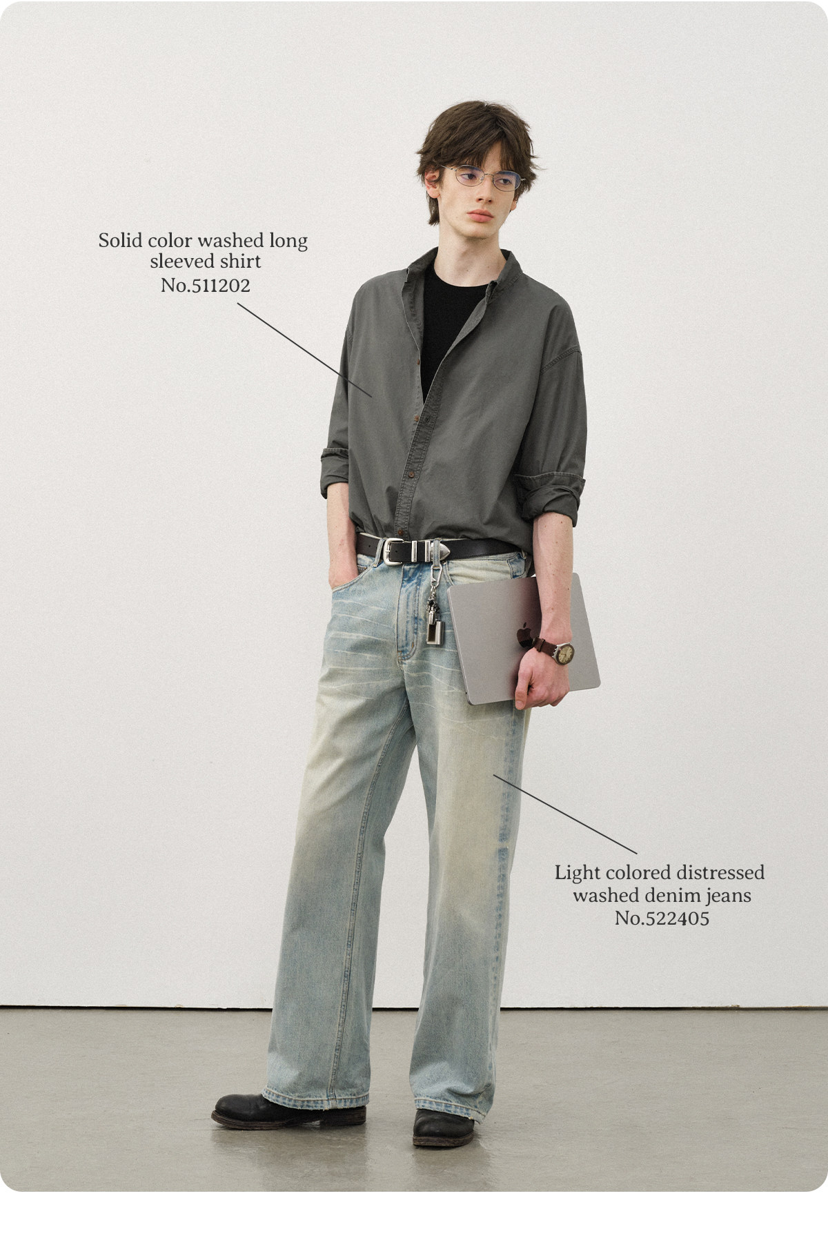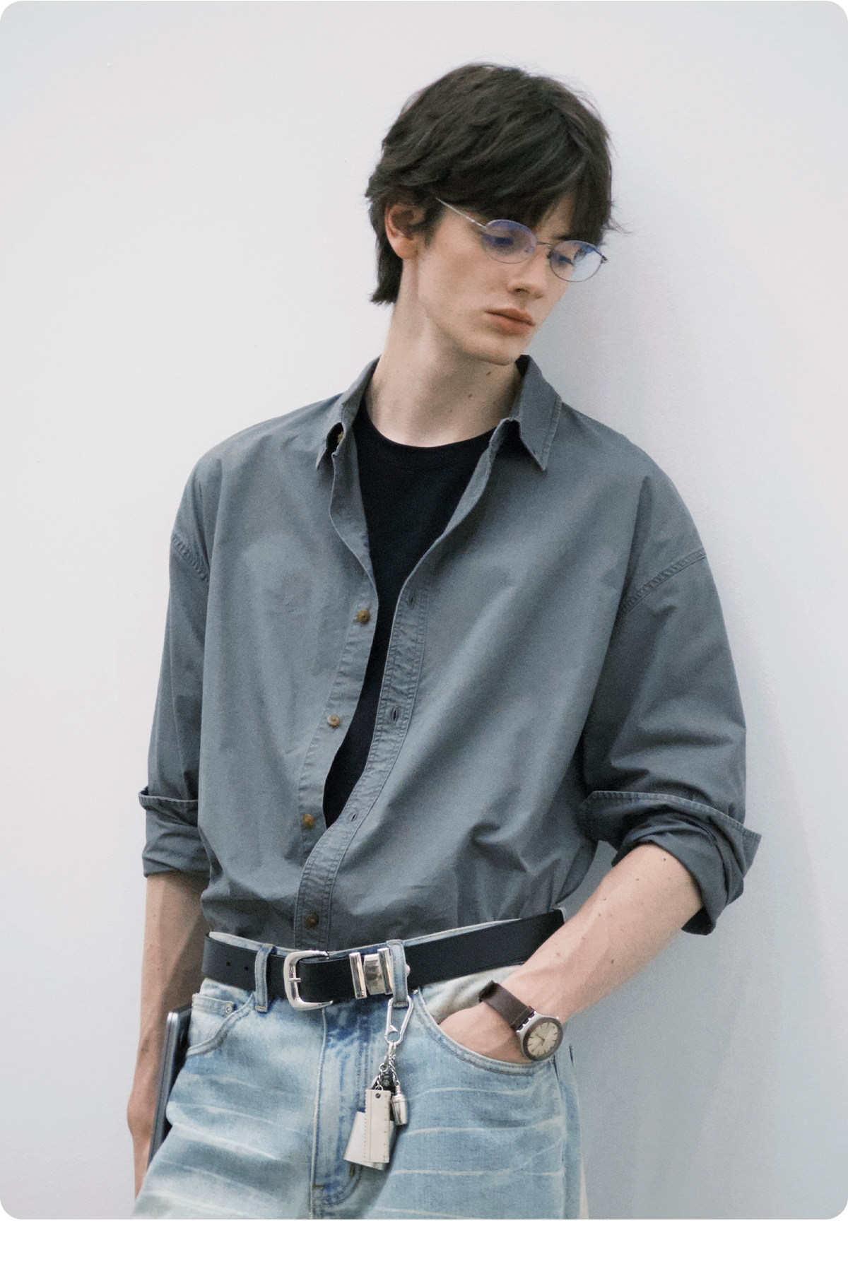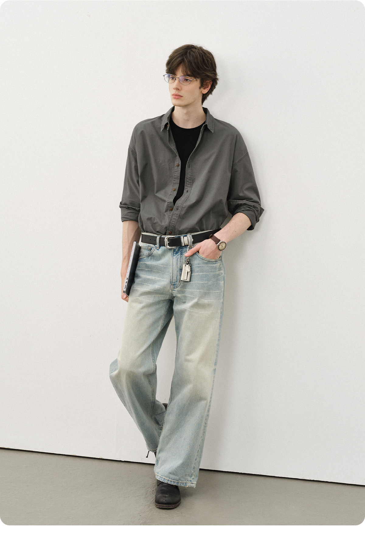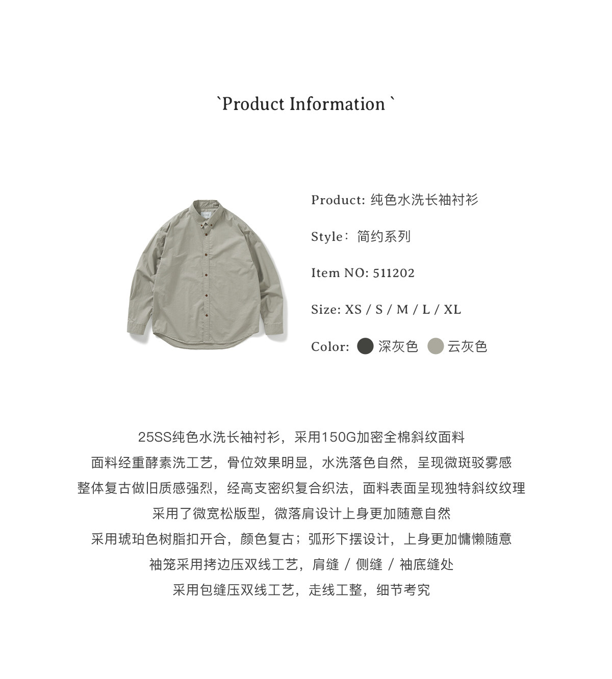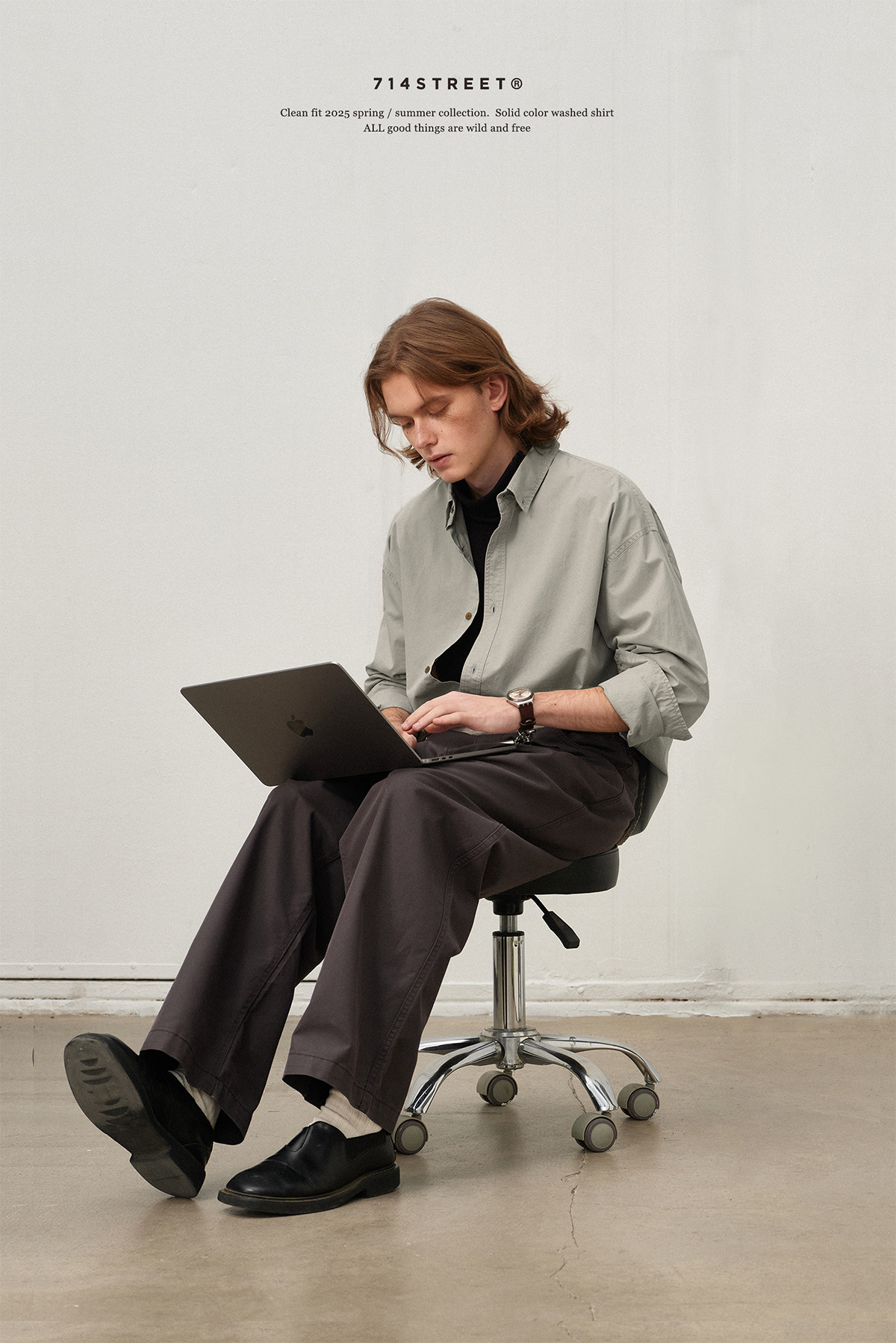 714street日系休闲水洗做旧长袖衬衫男2025春季新款宽松落肩外套