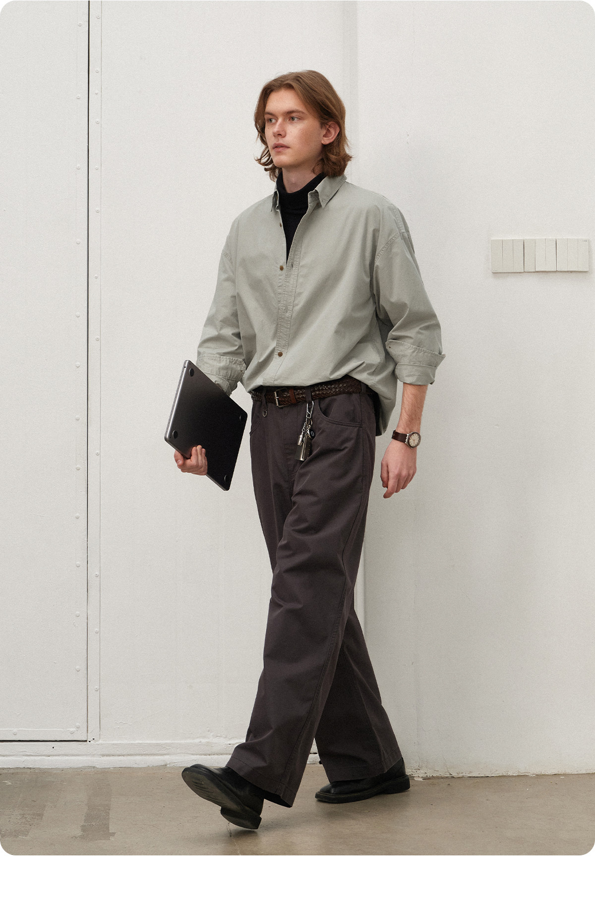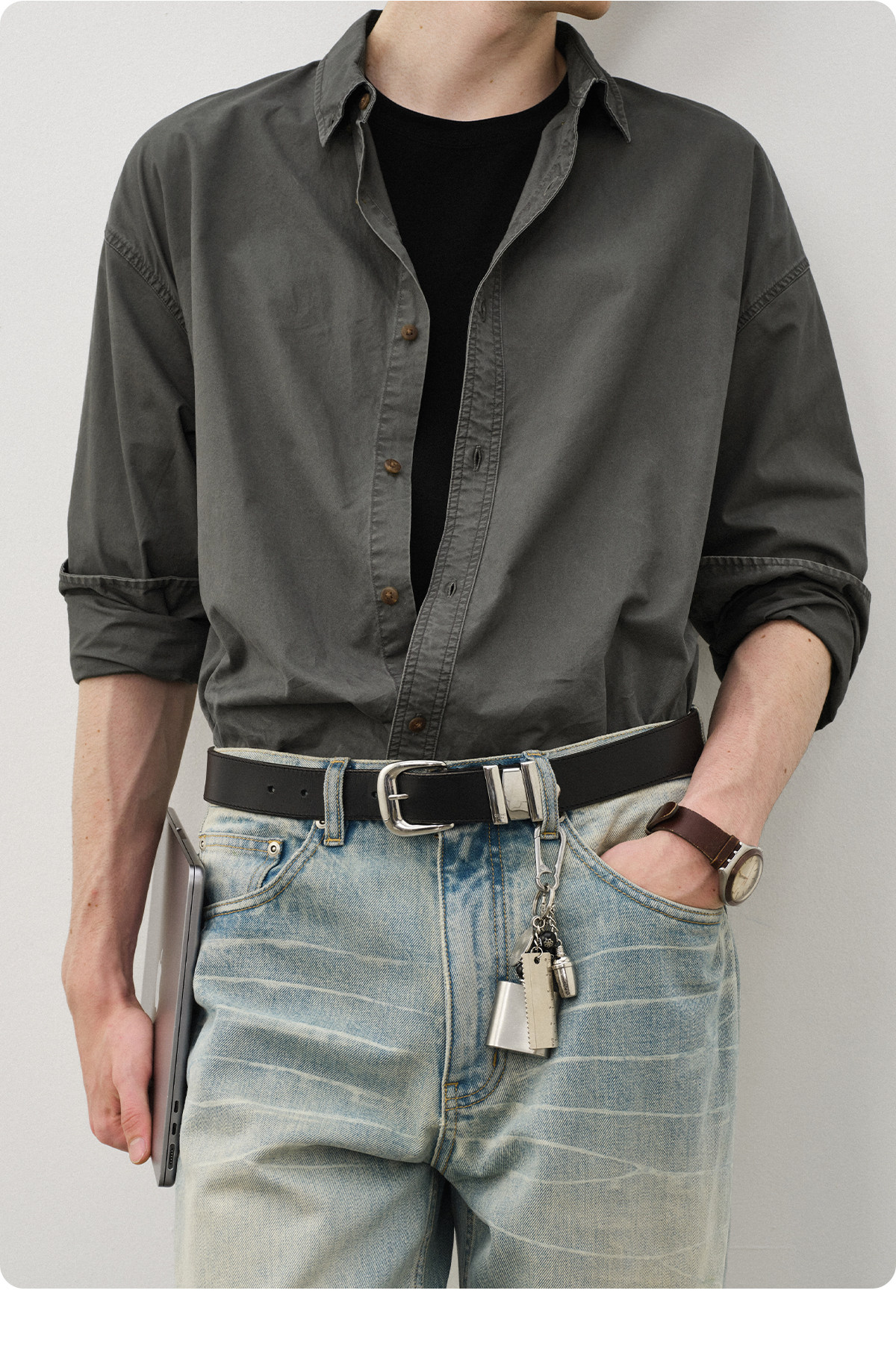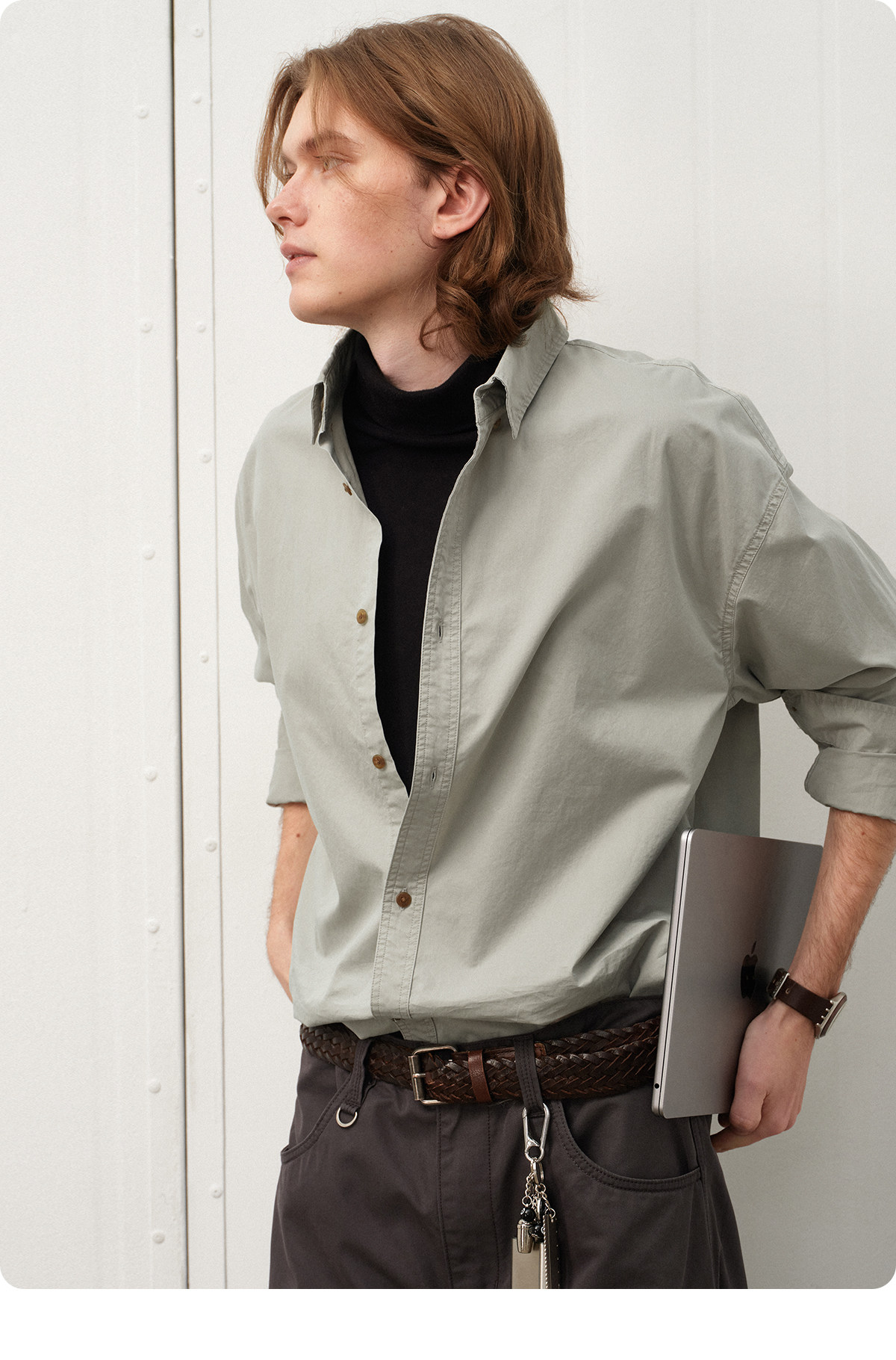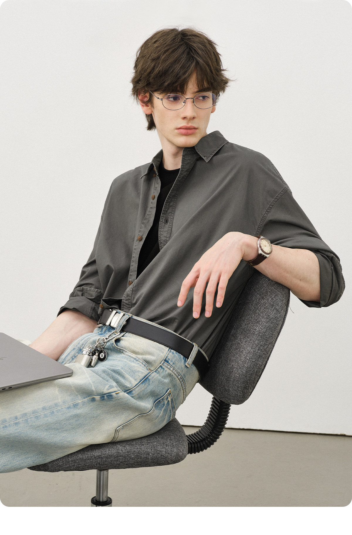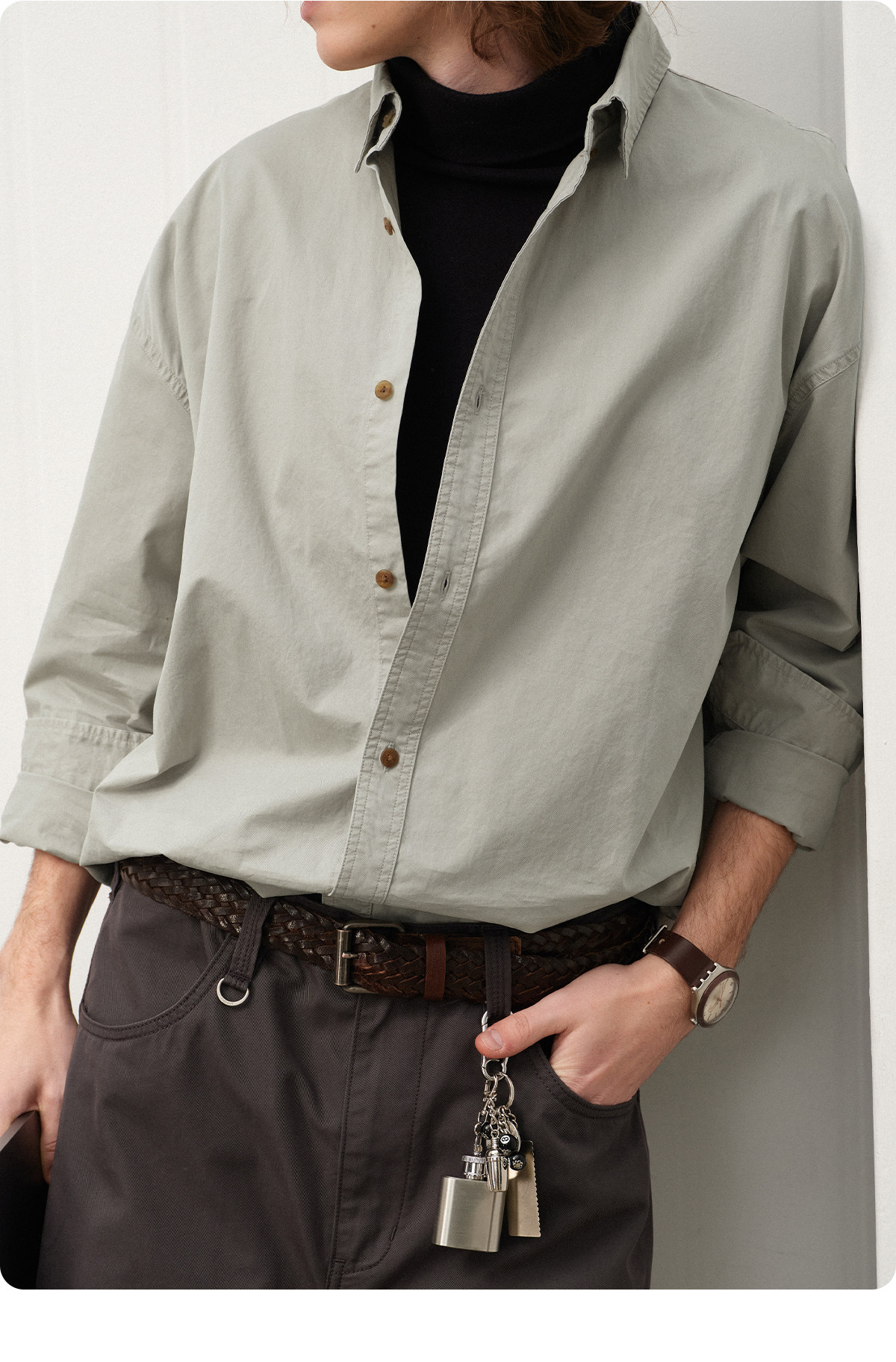 714street日系休闲水洗做旧长袖衬衫男2025春季新款宽松落肩外套