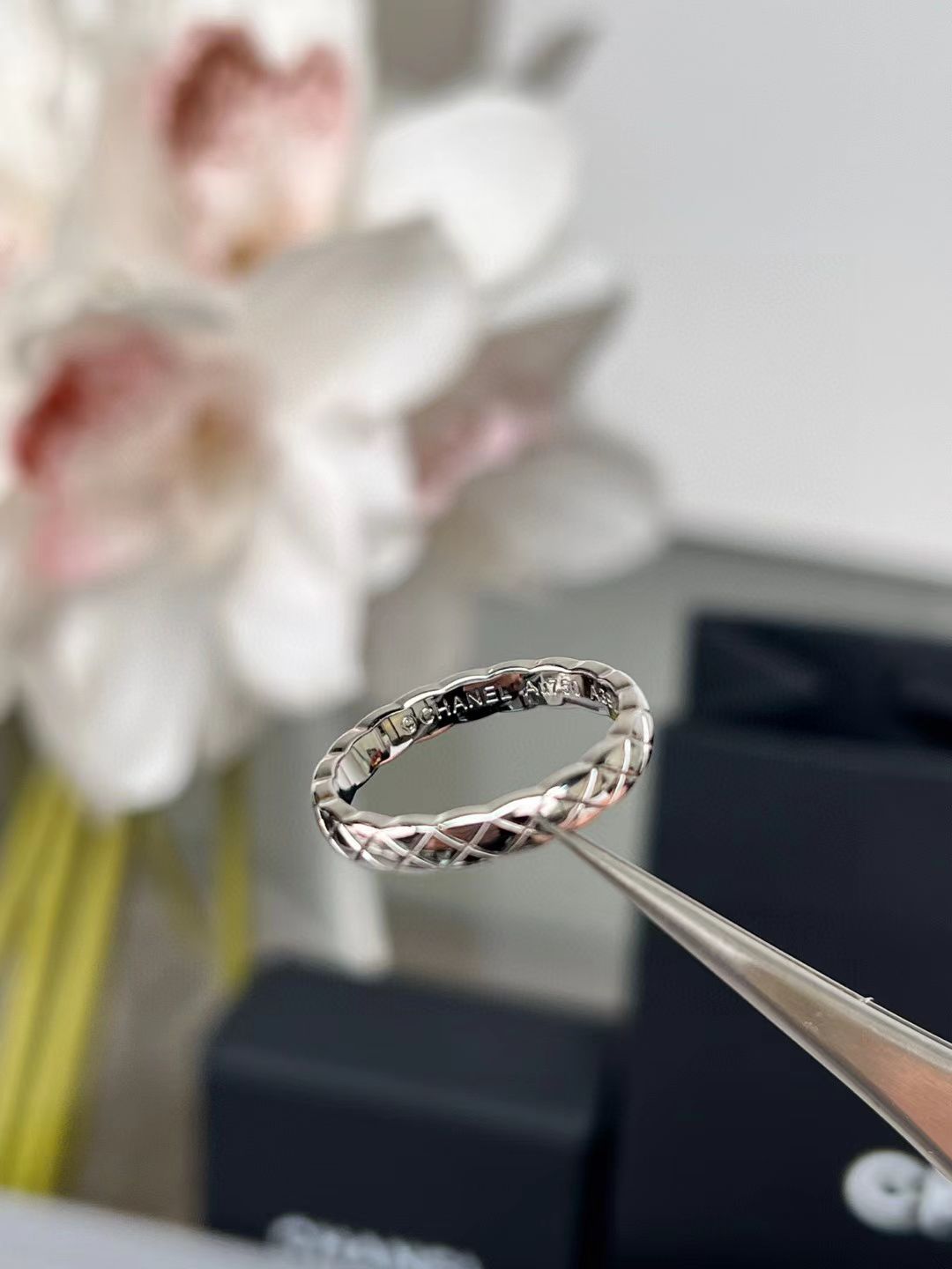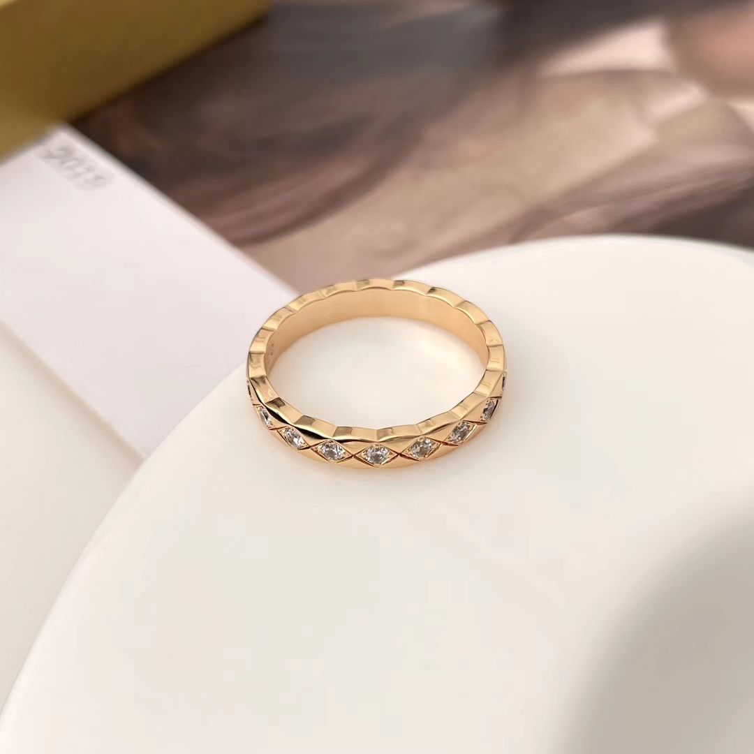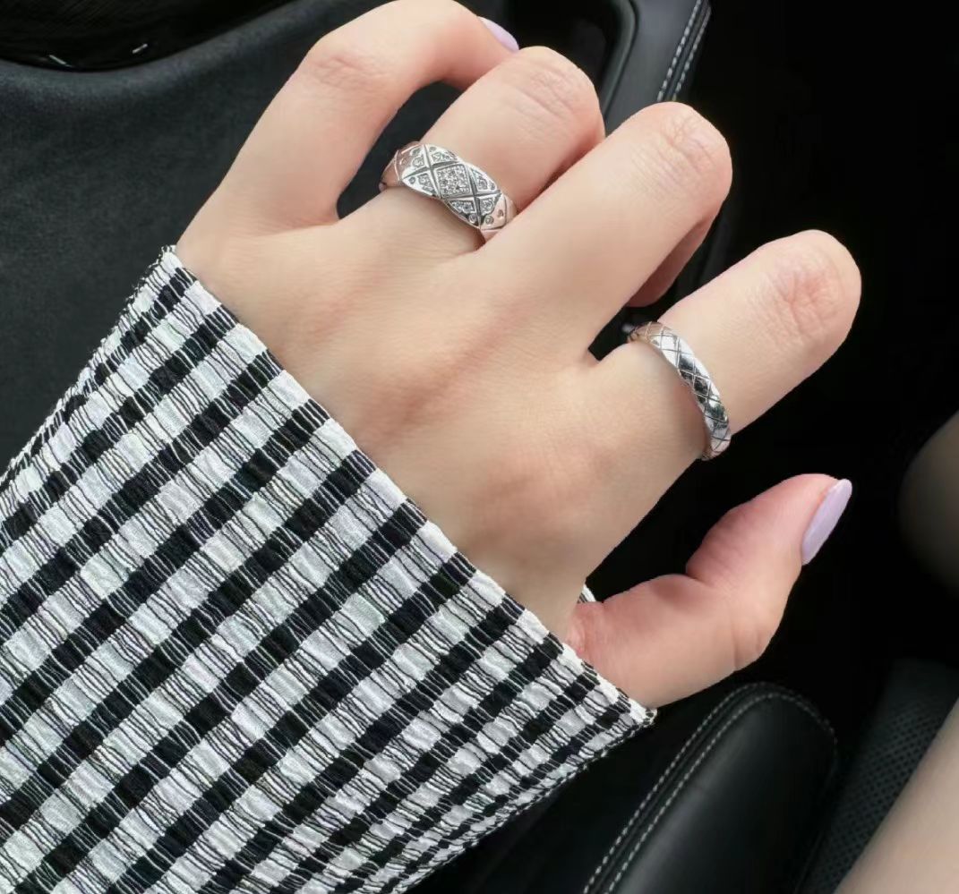 TB32-香奈儿菱格纹窄版戒指镶钻 无钻(XK)