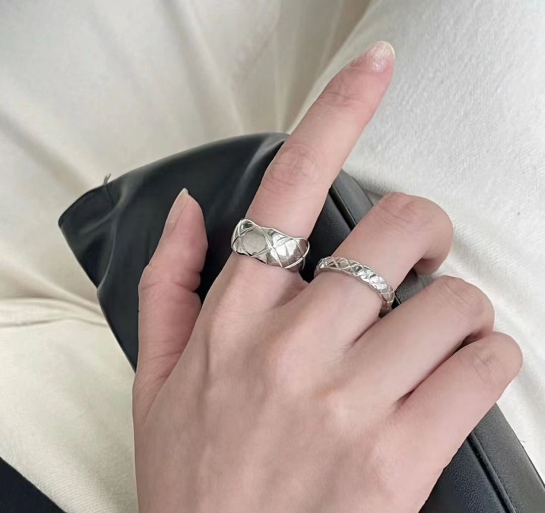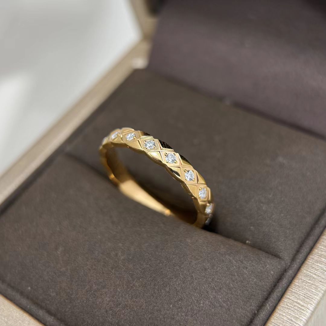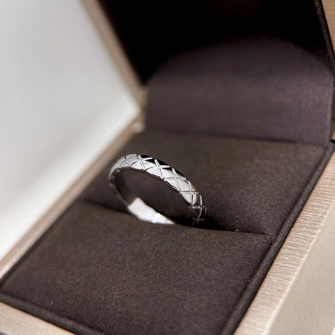 TB32-香奈儿菱格纹窄版戒指镶钻 无钻(XK)
