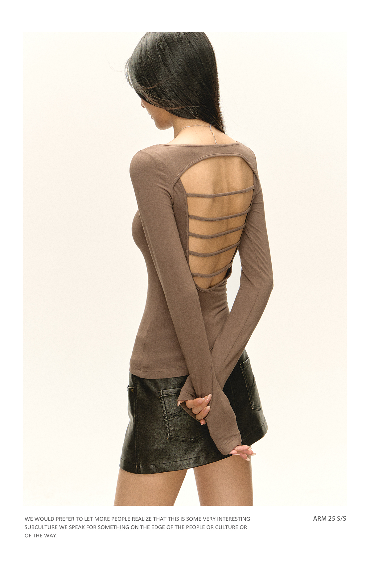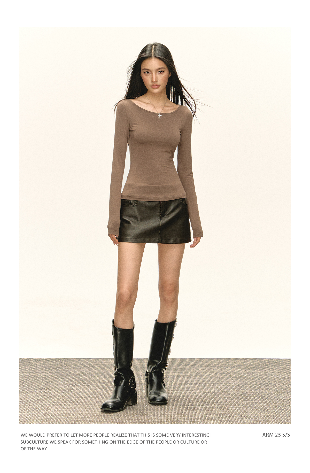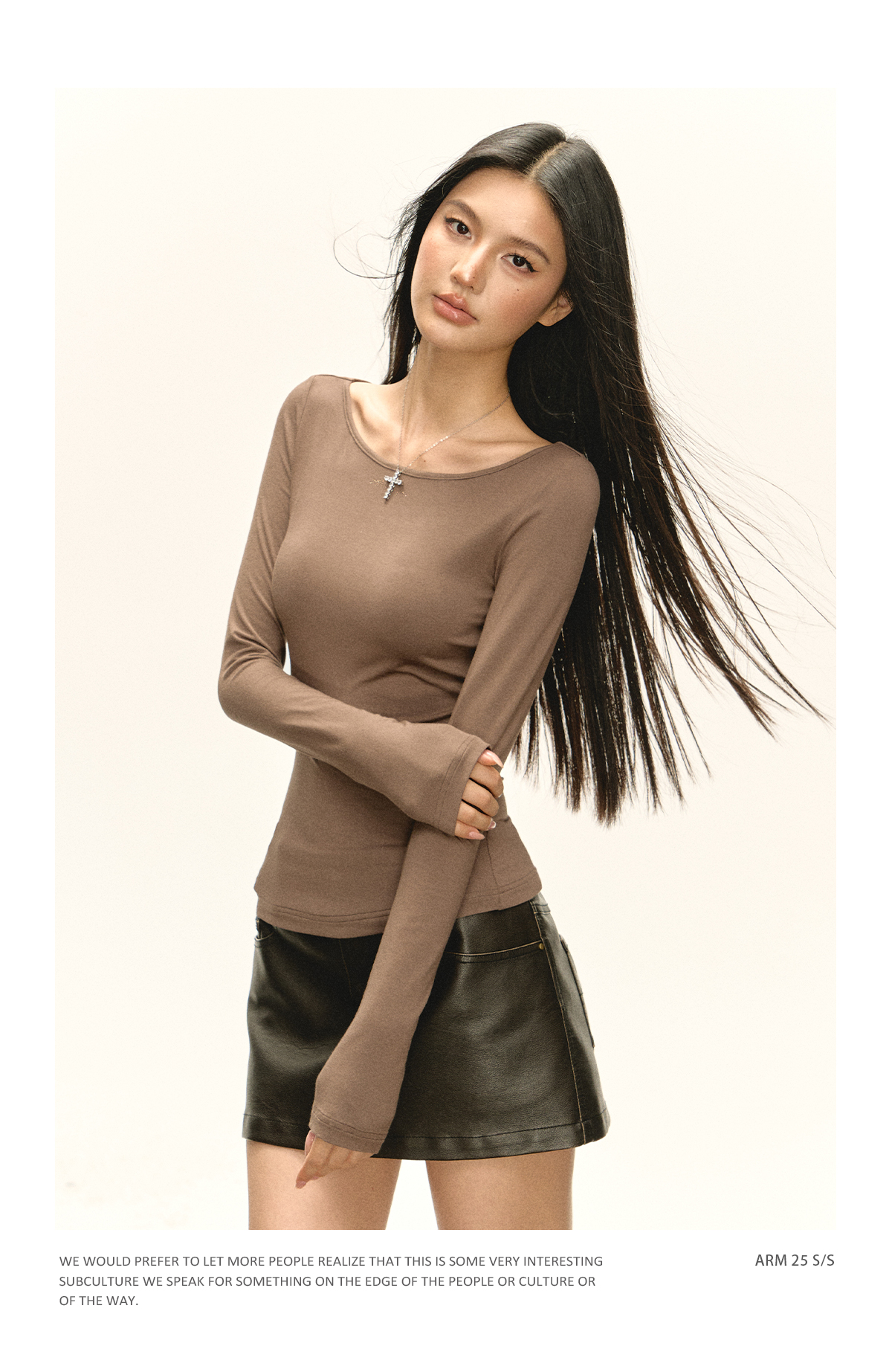 Ariseism 美式辣妹设计感一字肩长袖T恤女春季新款内搭修身上衣