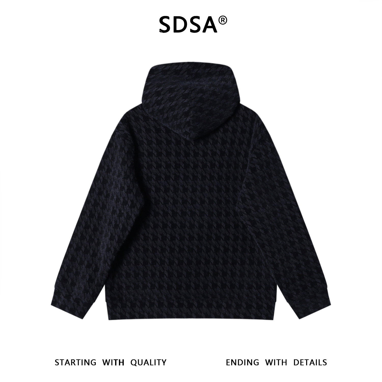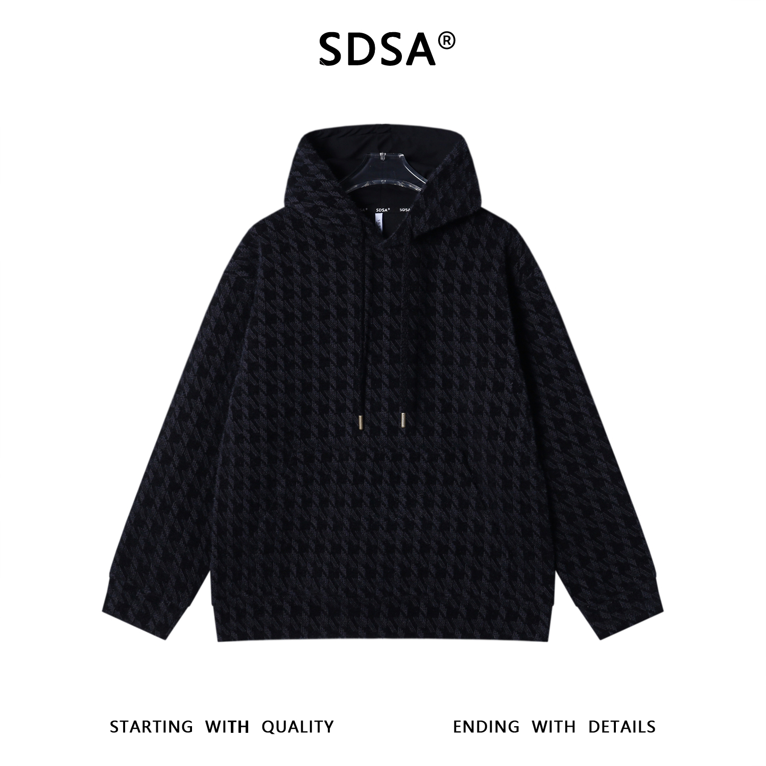 WY1322SDSA男士秋冬新款痞帅男装潮牌绒毛撞色格子抽绳连帽卫衣百搭时尚