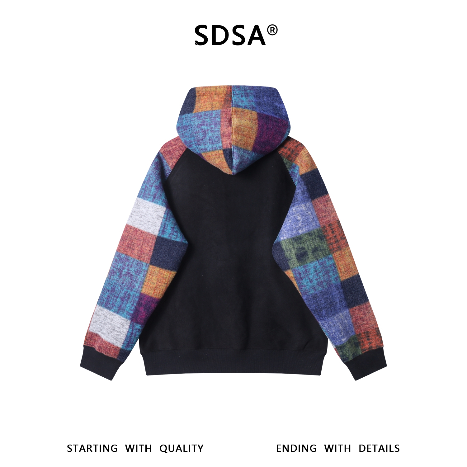 WY1569SDSA男士秋冬新款痞帅男装美式拼接色块印花字母连帽卫衣时尚休闲