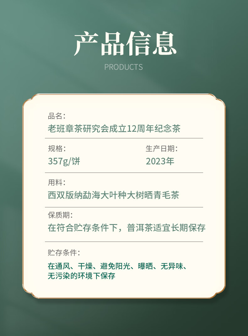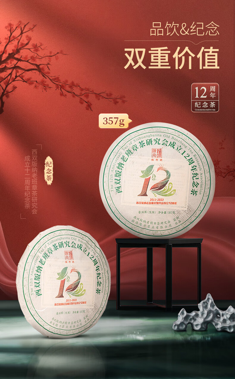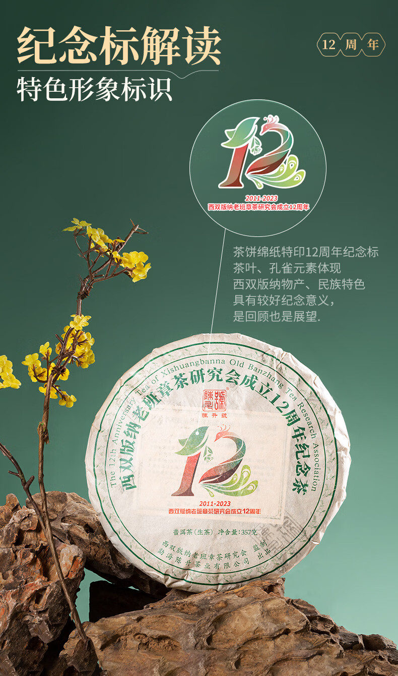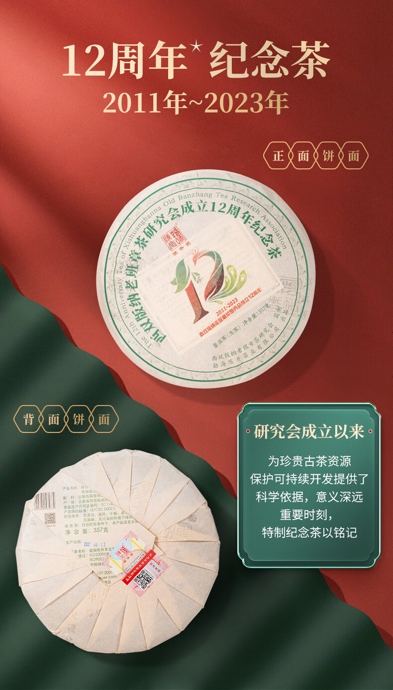 陈升号2023年西双版纳老班章茶研究会成立12周年纪念茶357g(生茶)