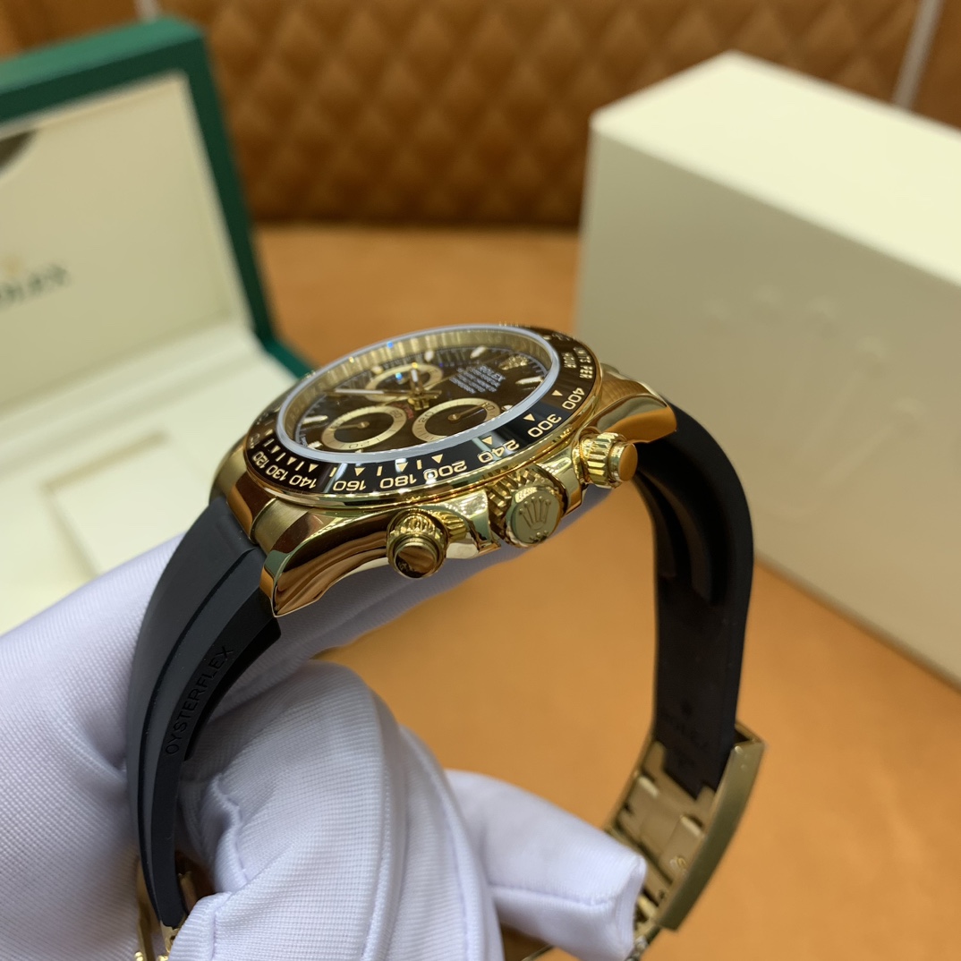 m126518In-0008这款黑武士迪通拿简直是逆天了!复刻的细节太到位了,原版4131机芯的厚度和原版一致,12.2mm,超薄手感,带上简直不要太舒服!胶带的做工都采用了进口橡胶,质感无敌,尤其是升级后的表扣和刻字,和ZP几乎无差。