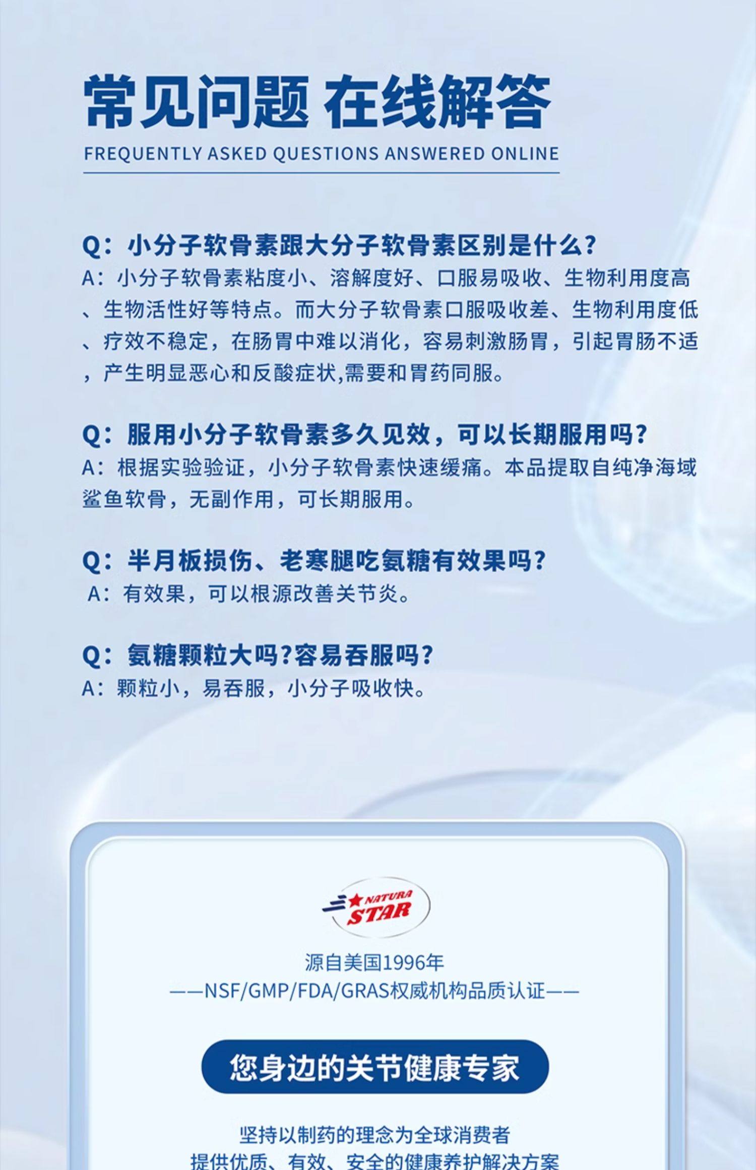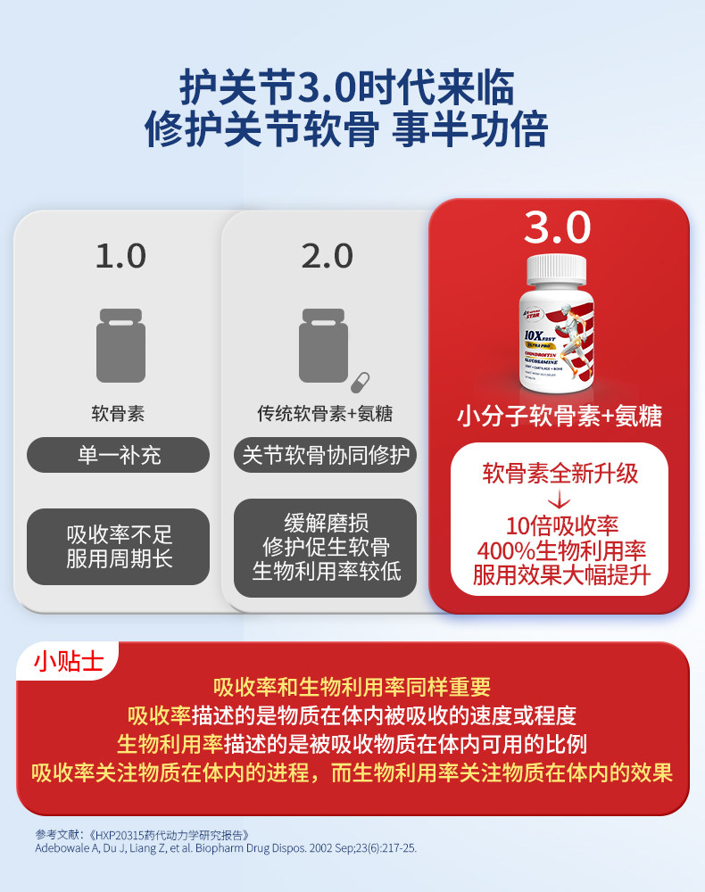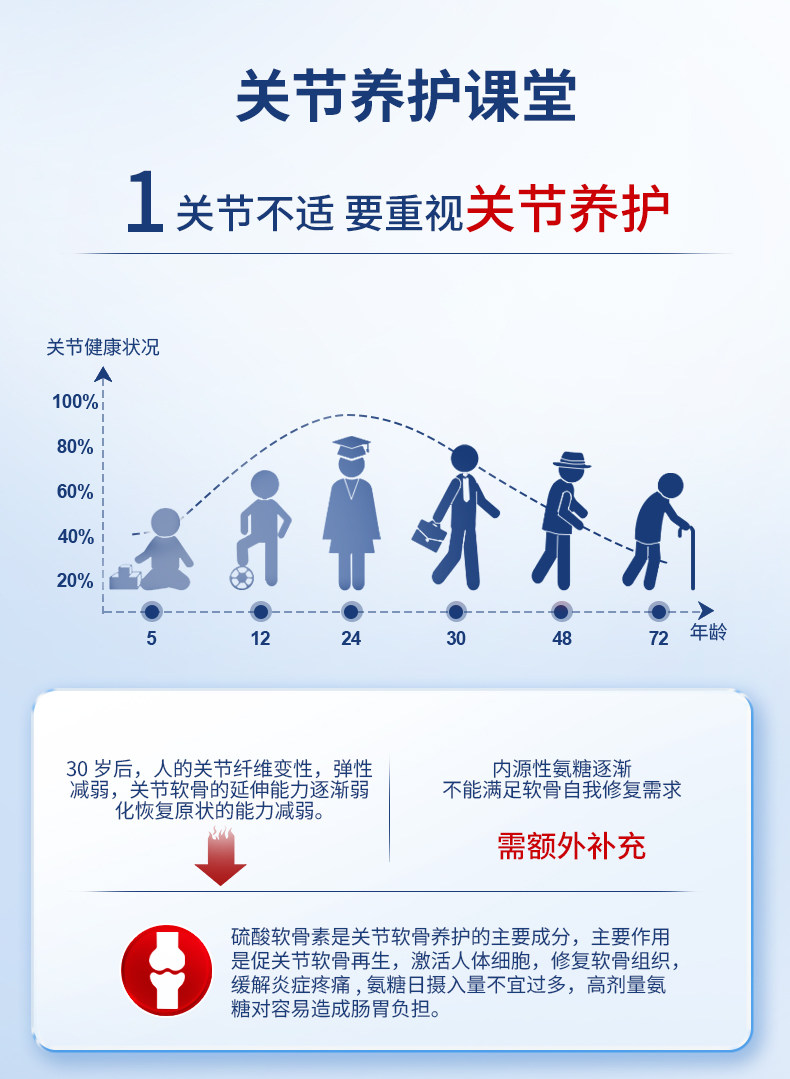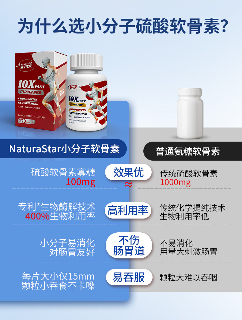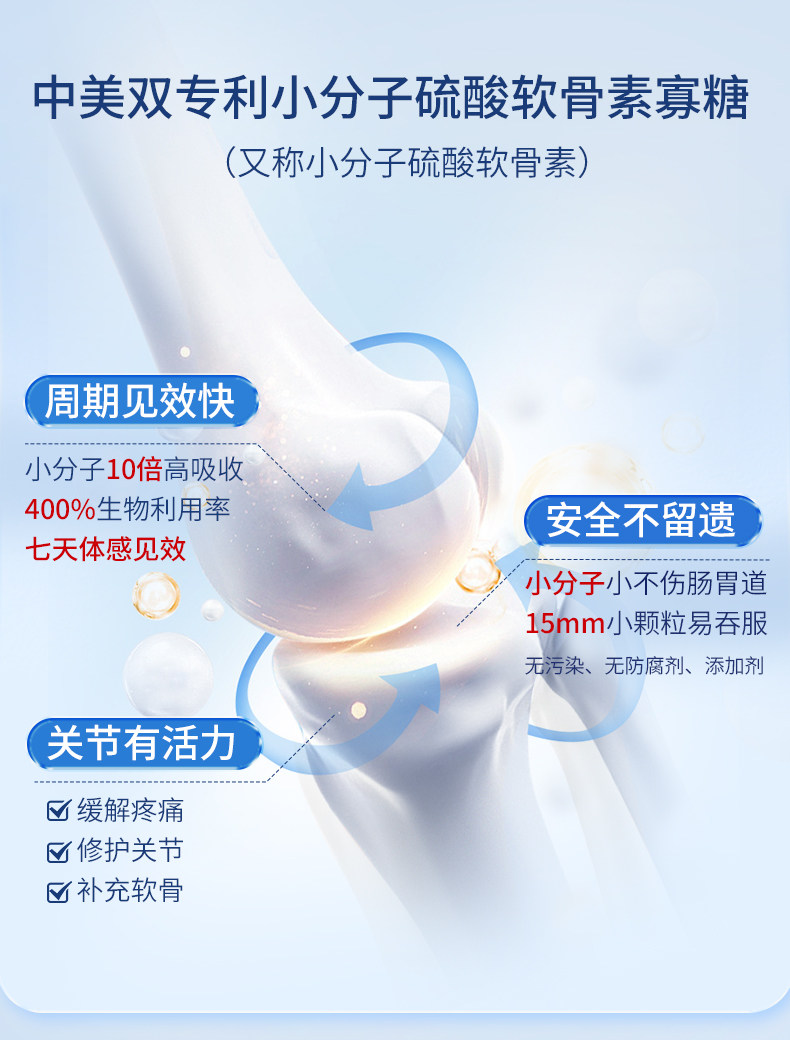 【3瓶装】小分子缓痛关节恢复中老年氨糖补软骨素美国进口旗舰店