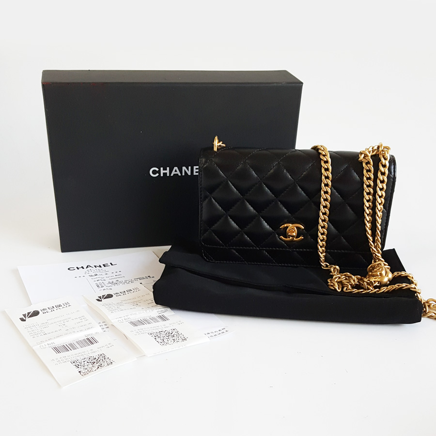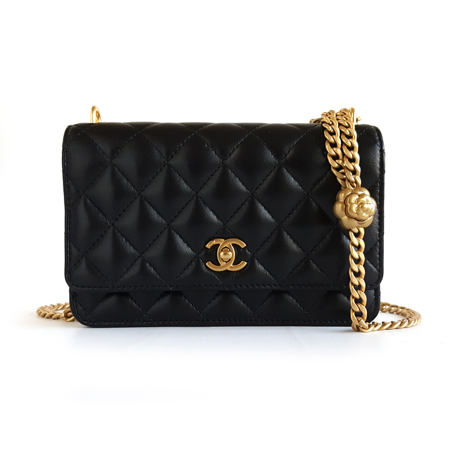 款式 | 25P黑金羊皮山茶花金球调节扣woc链条包单肩包 |