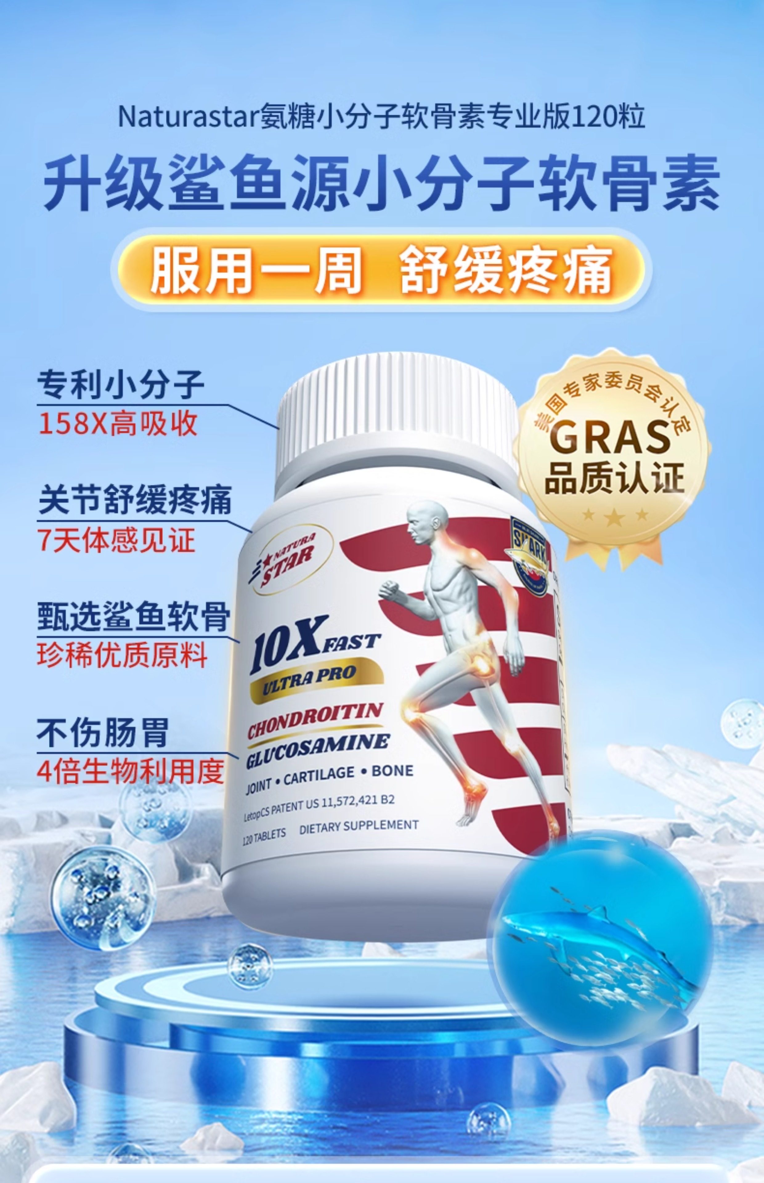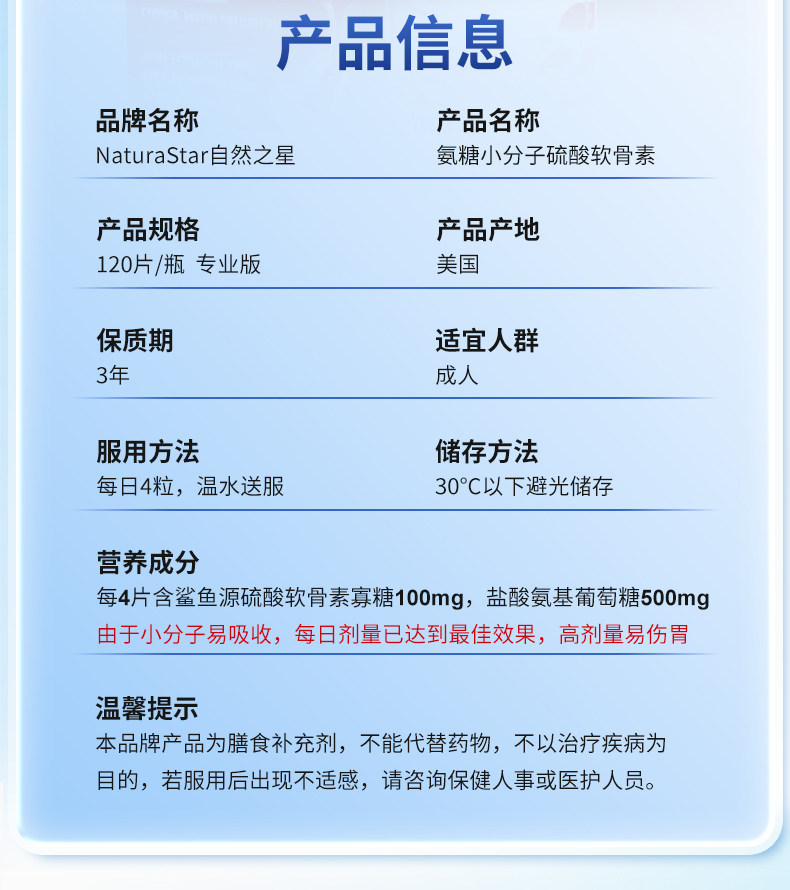 NaturaStar鲨鱼氨糖软骨素美国原装进口中老年成人关节养护膝盖