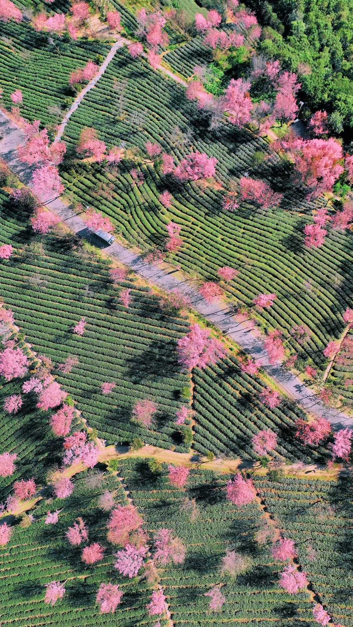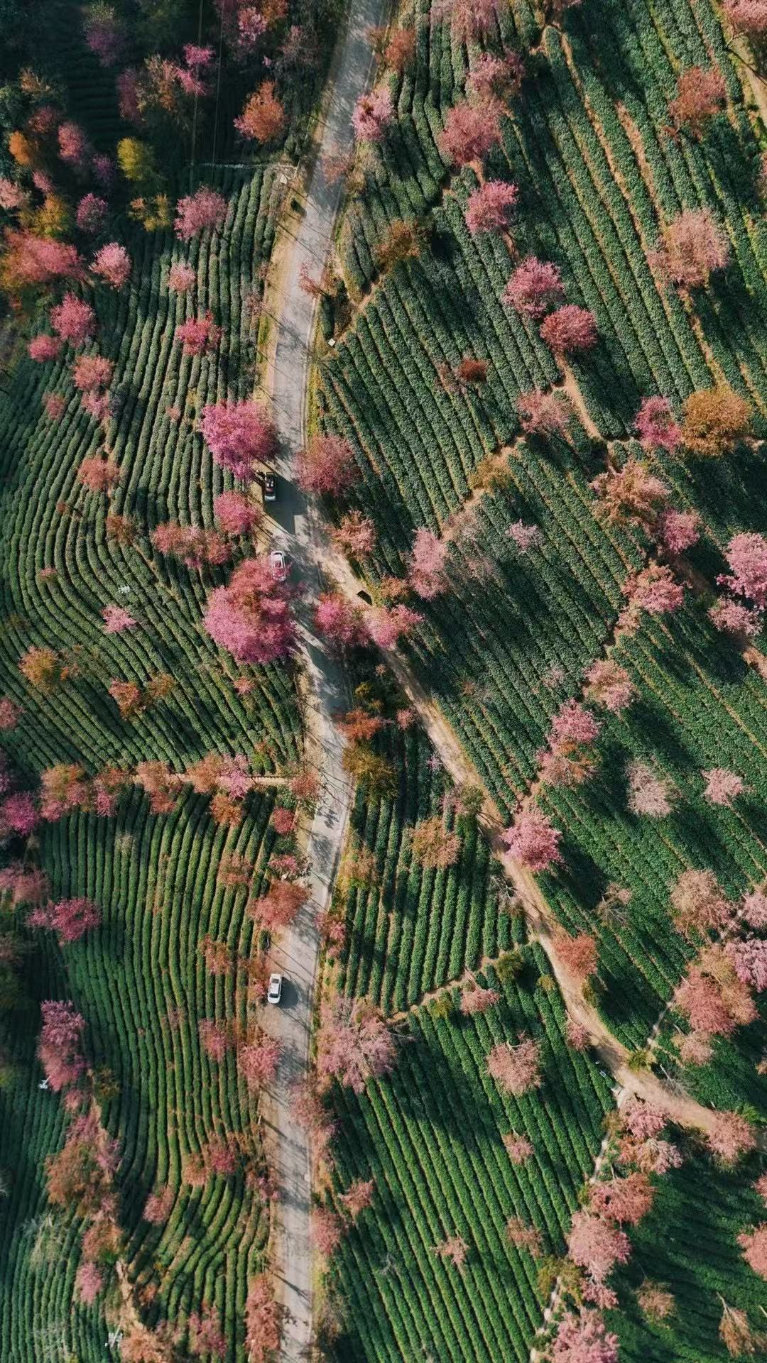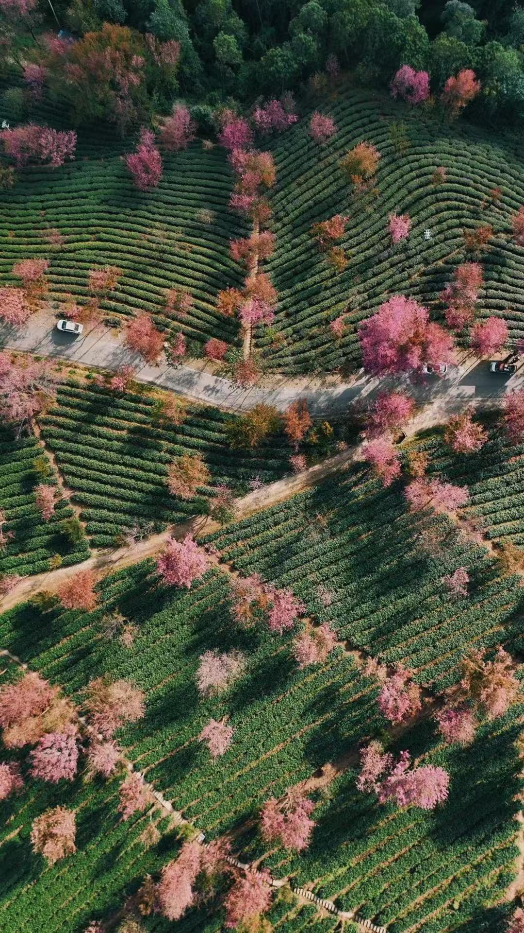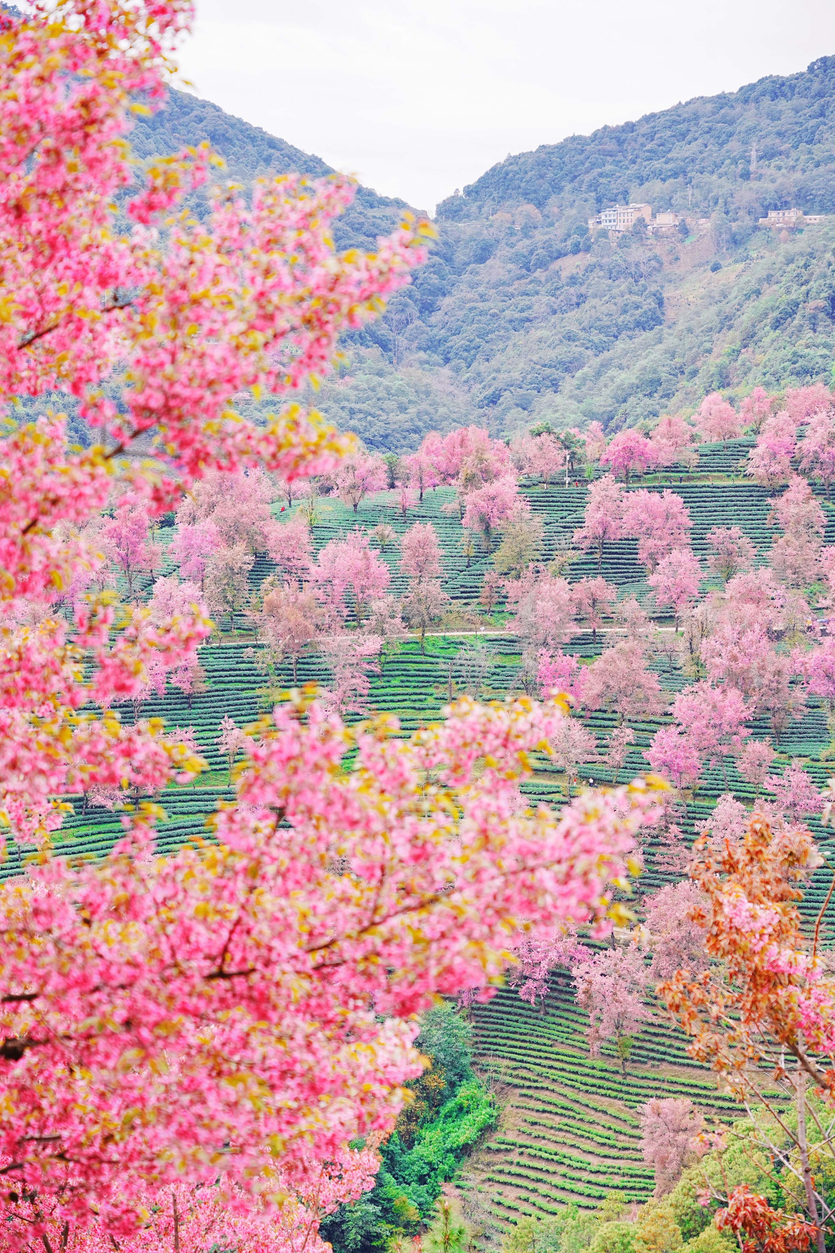 仍然会被满眼的茶山绿樱花粉给狠狠美到!