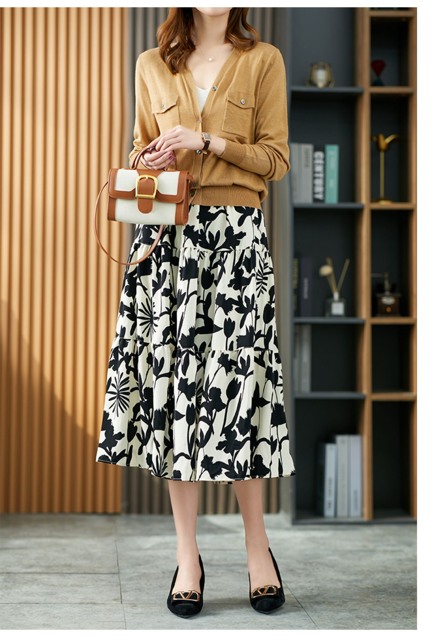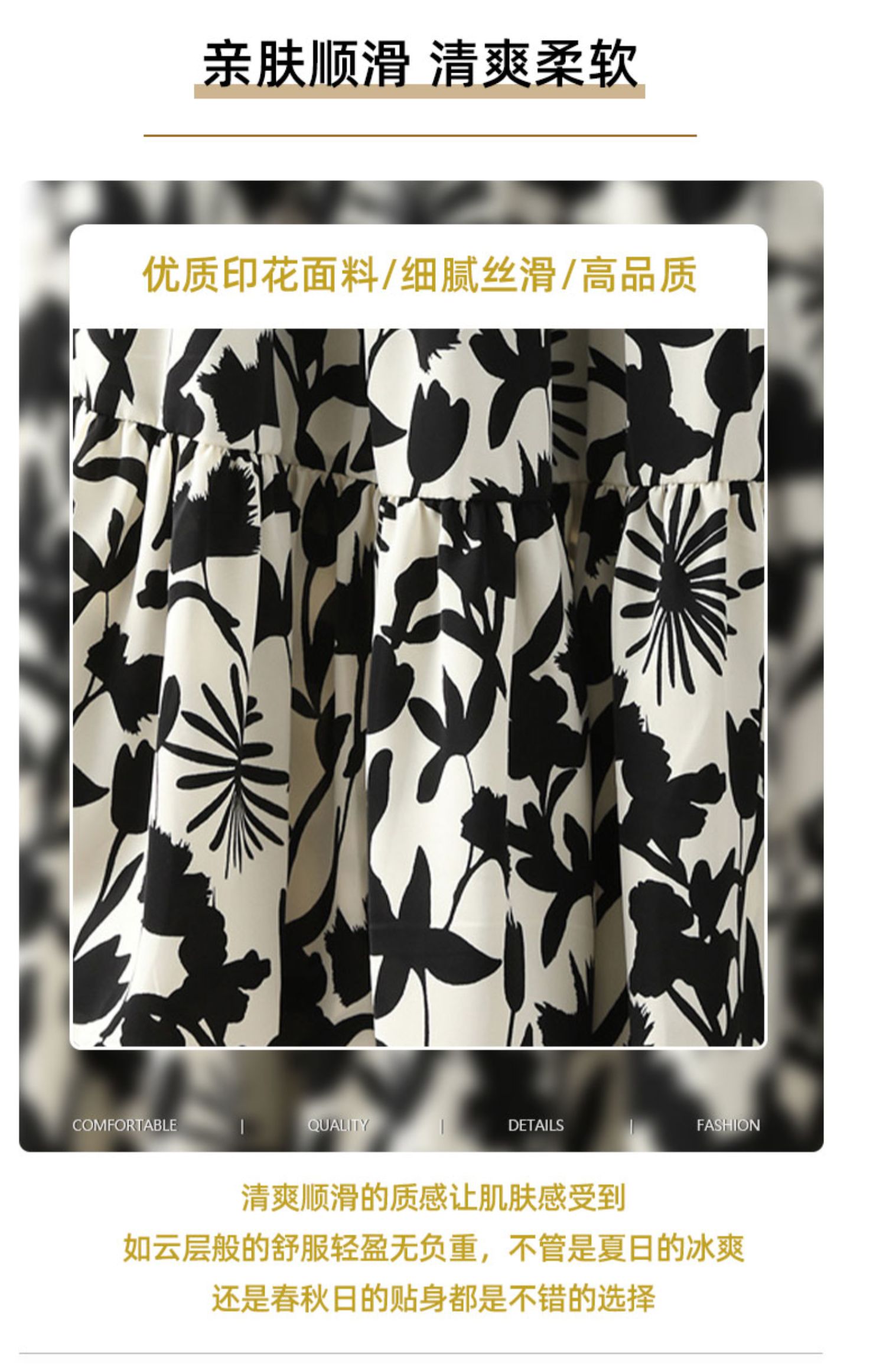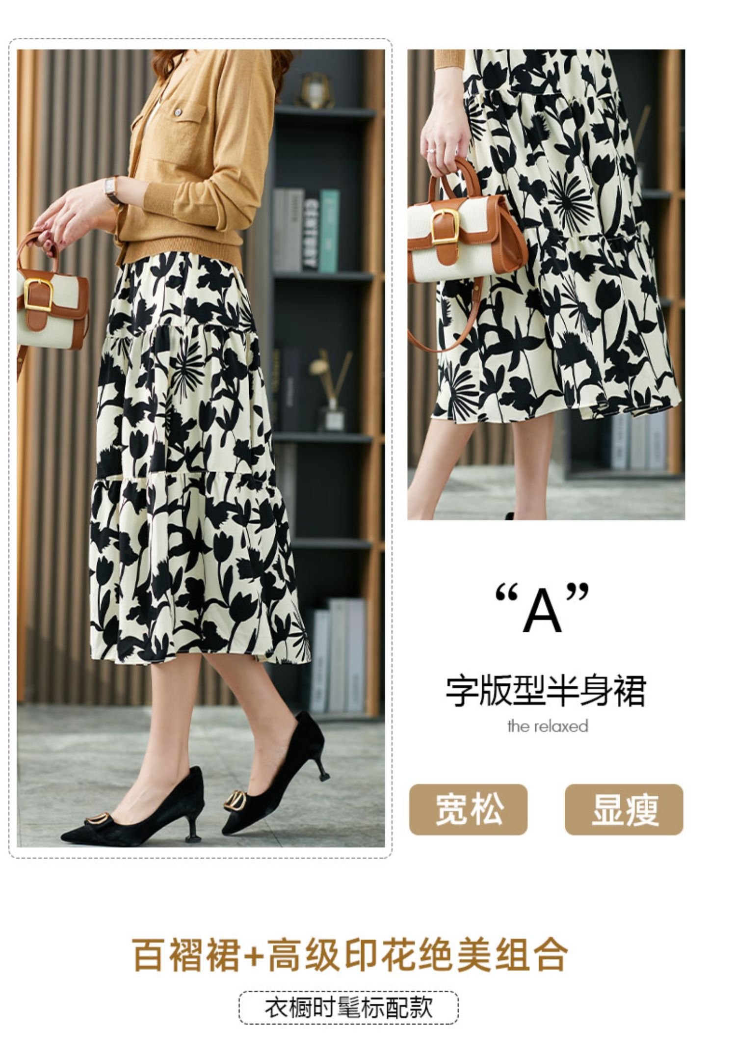 YX【现货7天】减龄碎花半身裙女秋季2023新款薄A字裙宽松显瘦中长款百褶裙