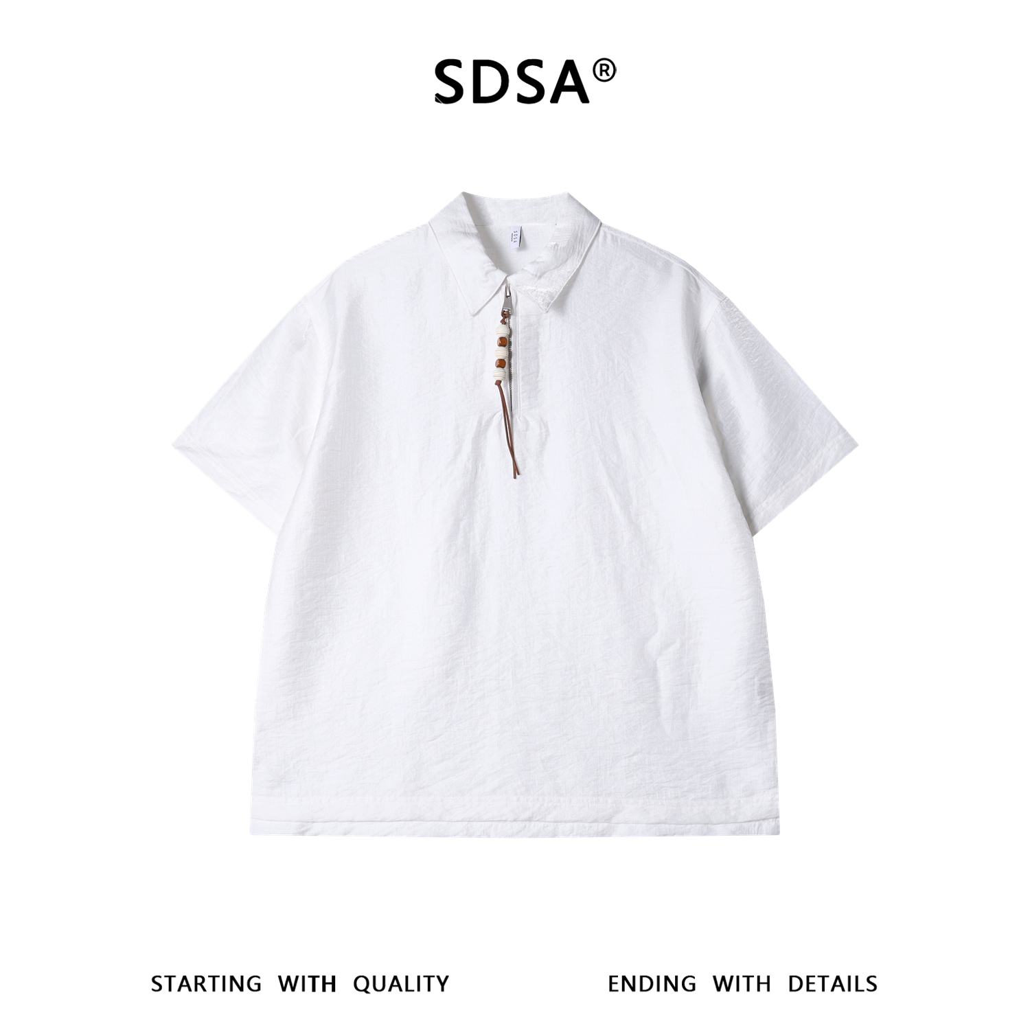 SDSA男装2026新款高贵轻奢潮牌纯色半拉链翻领短袖T恤百搭舒适