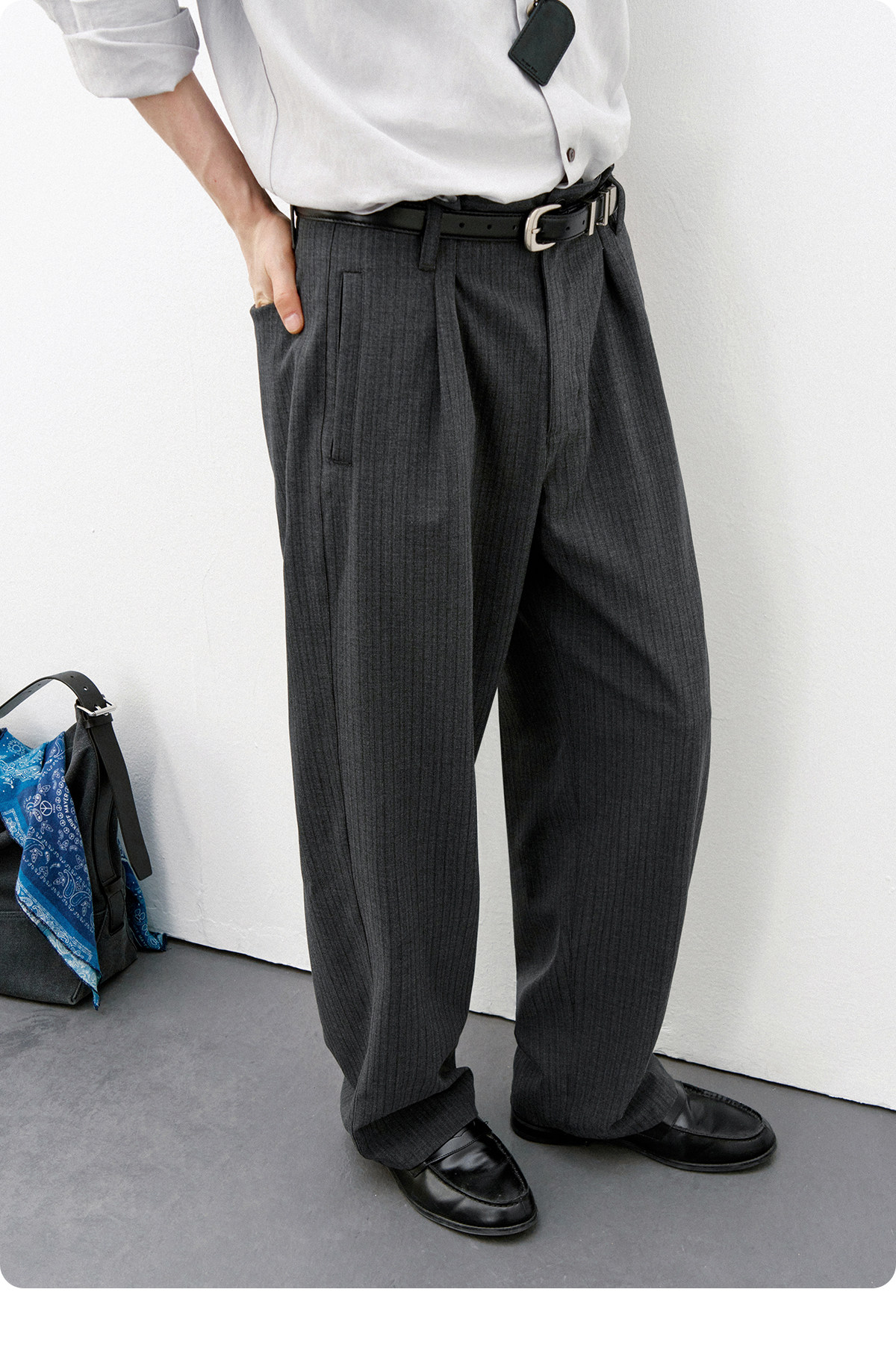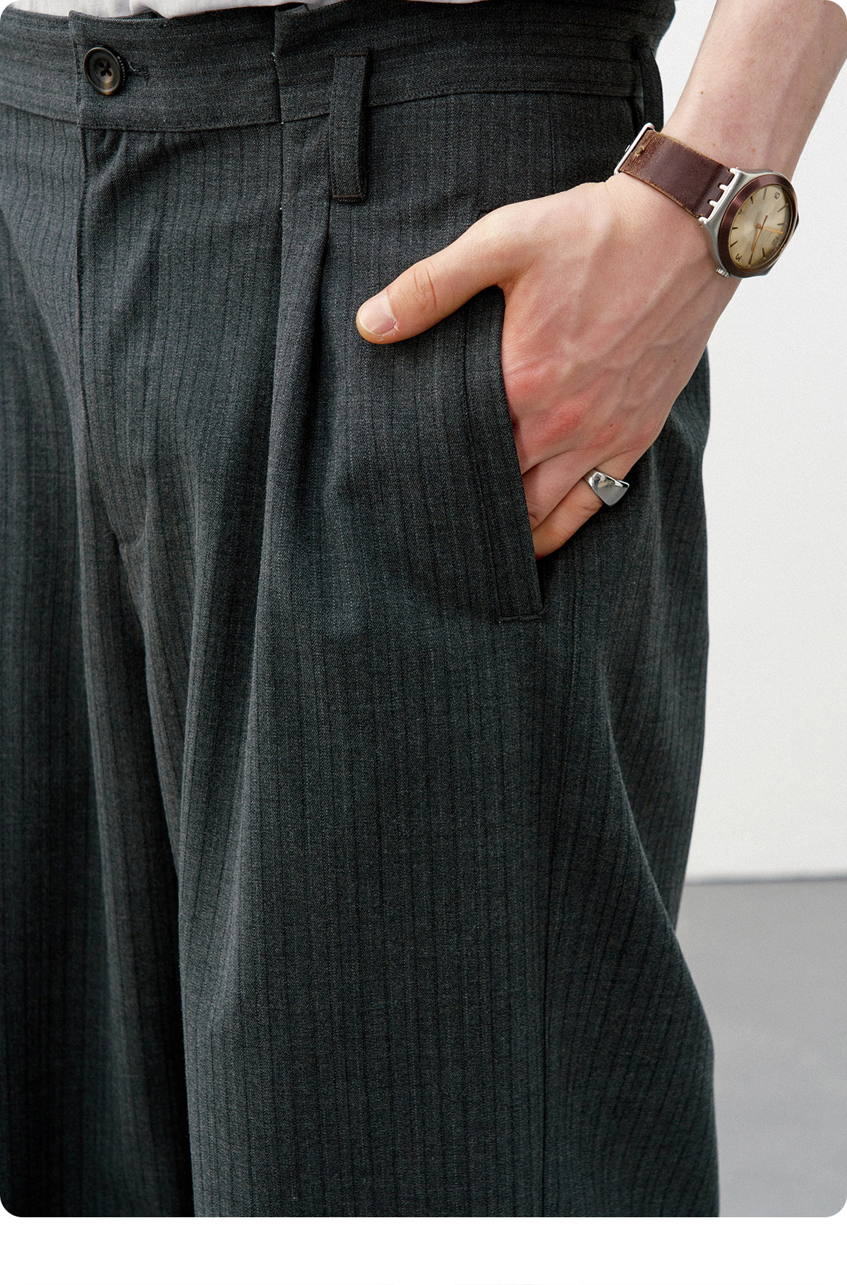 714street宽松双褶深灰条纹休闲西裤男2026春夏垂坠感老钱风裤子