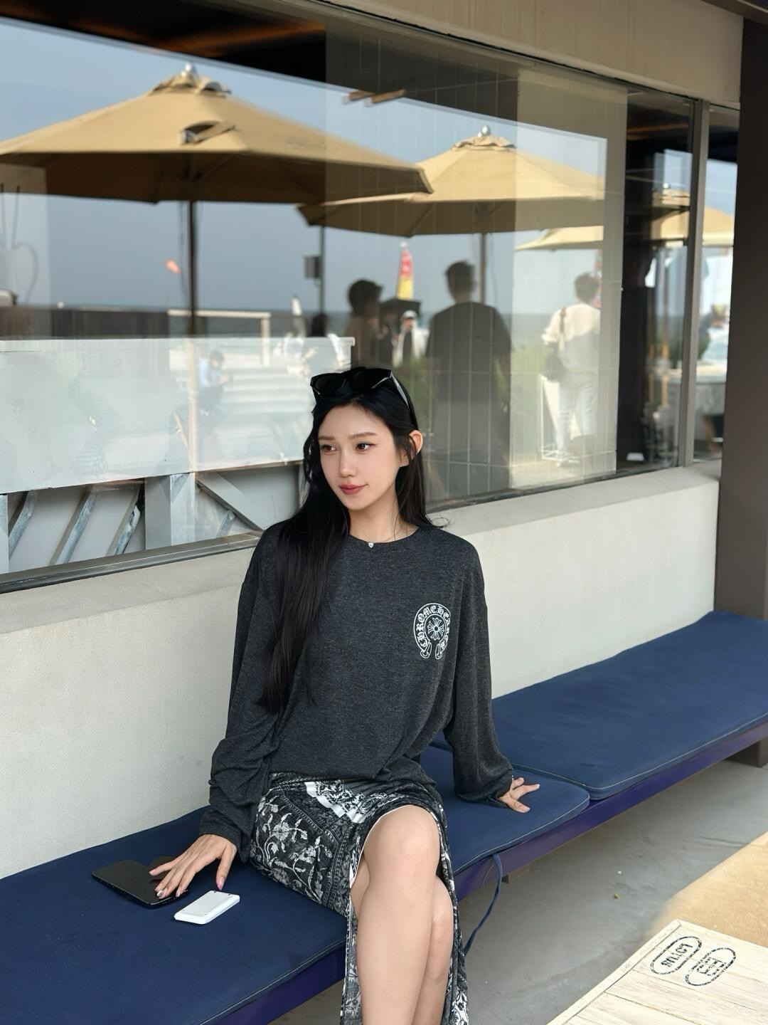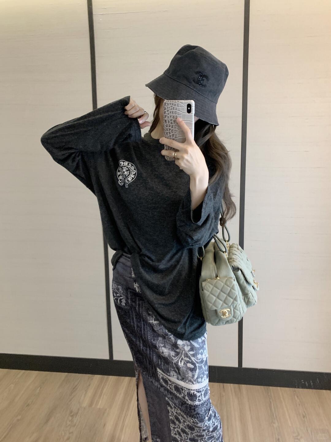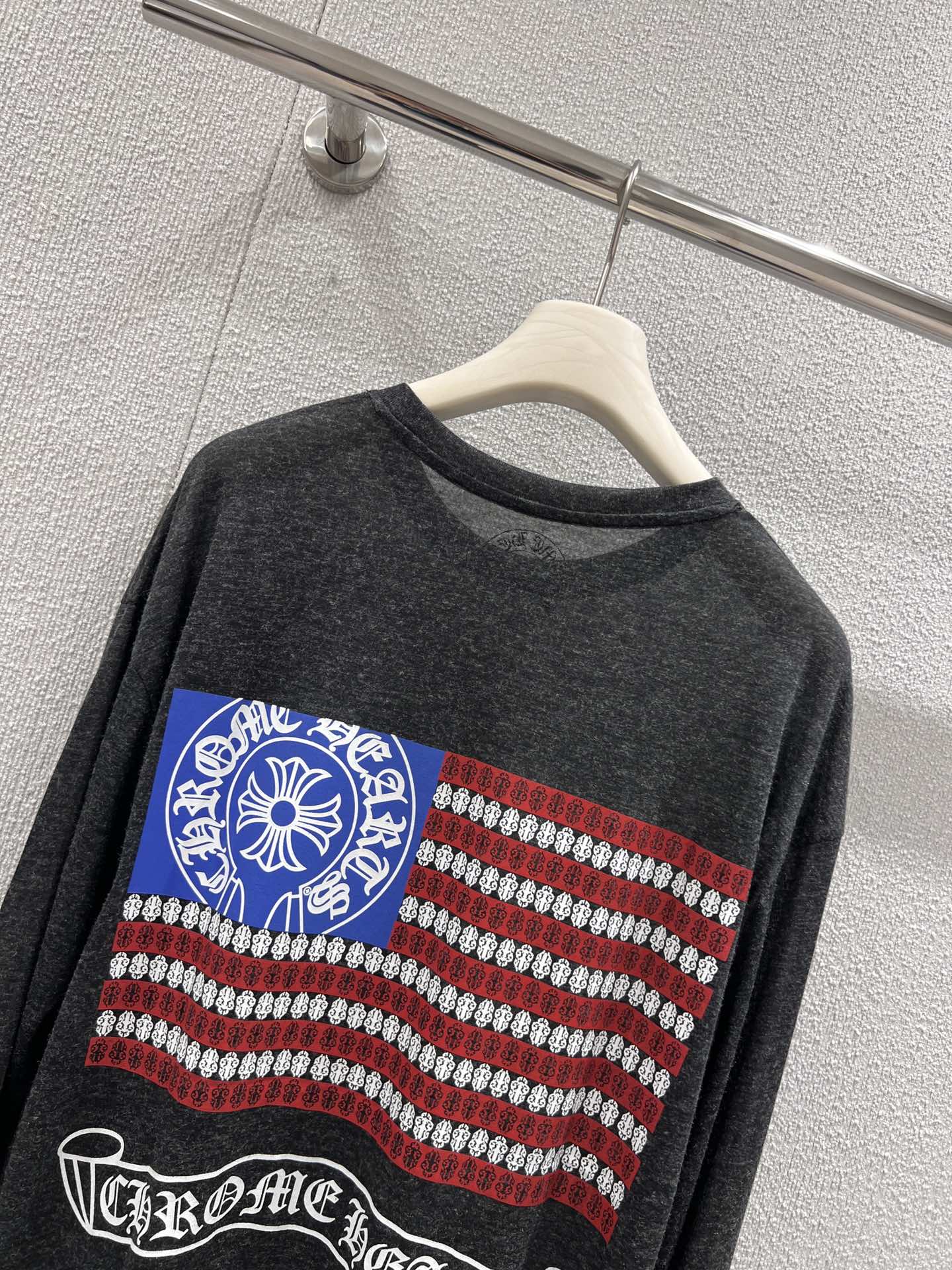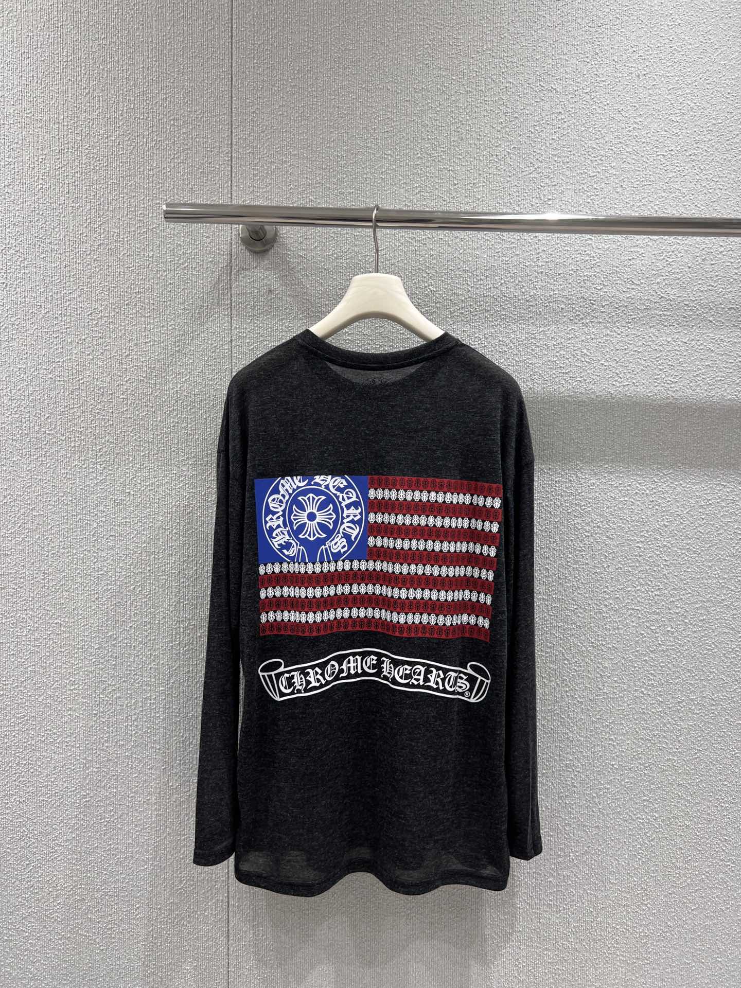 C家25Ss春夏新款 梵文星条旗印花垂感美式防晒长袖T恤
