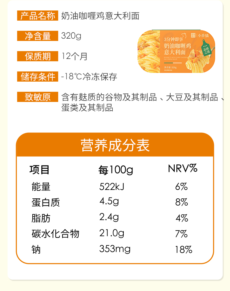 【顺丰/京东】幸福西饼意大利面 冷冻意面 经典番茄肉酱+奶油咖喱鸡 方便速食 - 幸福西饼
