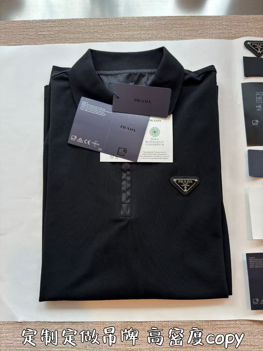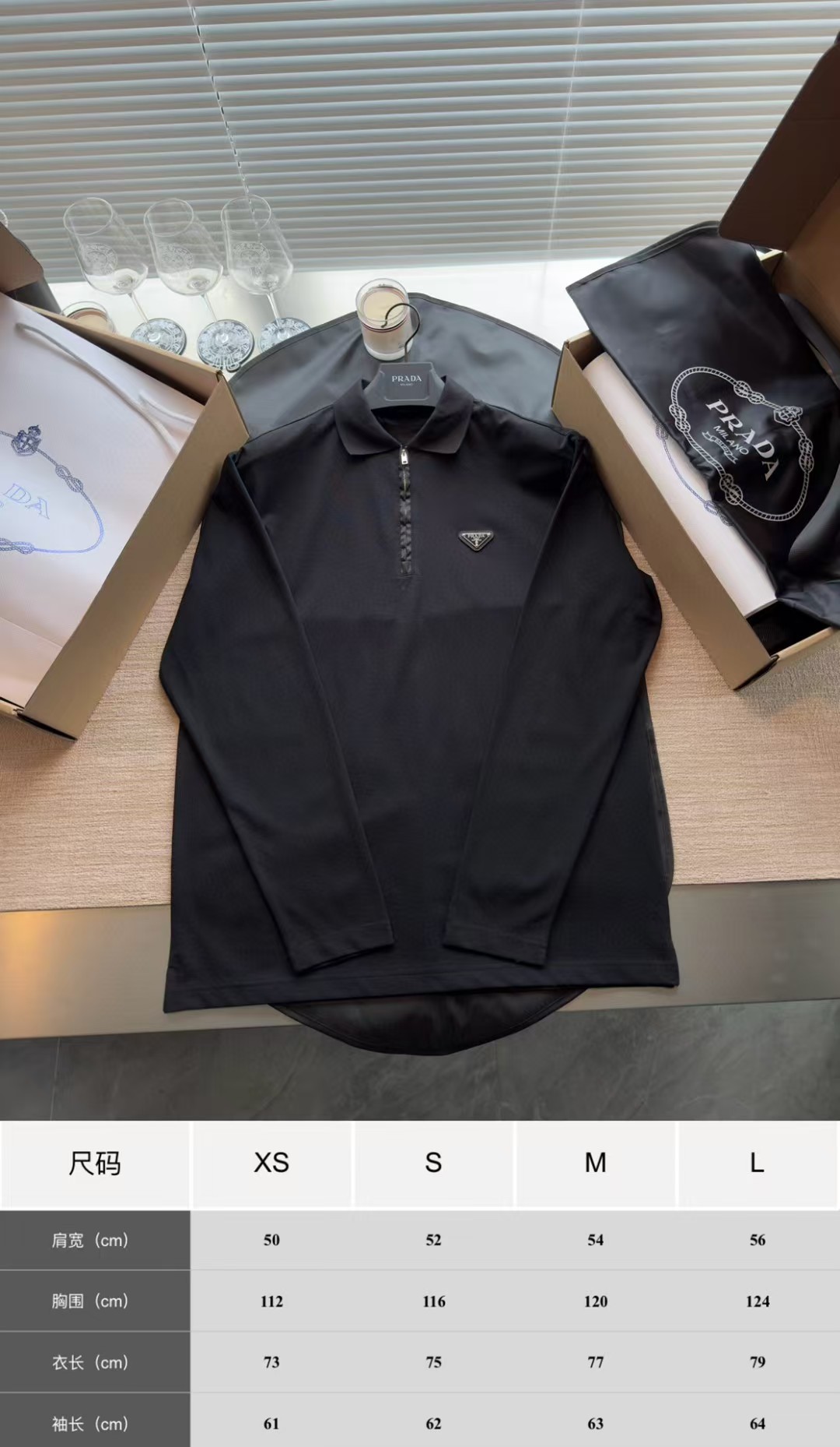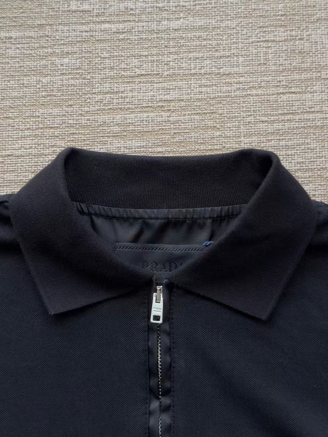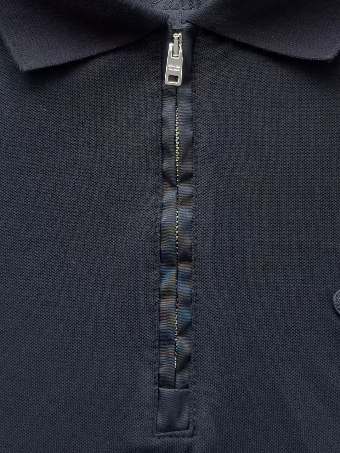 PRADA普拉达丹宁三角标珠地布和再生尼龙Polo衫长袖,低调奢华简洁款✌️整件衣服9050购买ZP拆解打造,刻模定制最新手工三角新标,开模定制YKK logo拉链,真正做到1:1copy 闭眼入 码数:XS.S.M.L