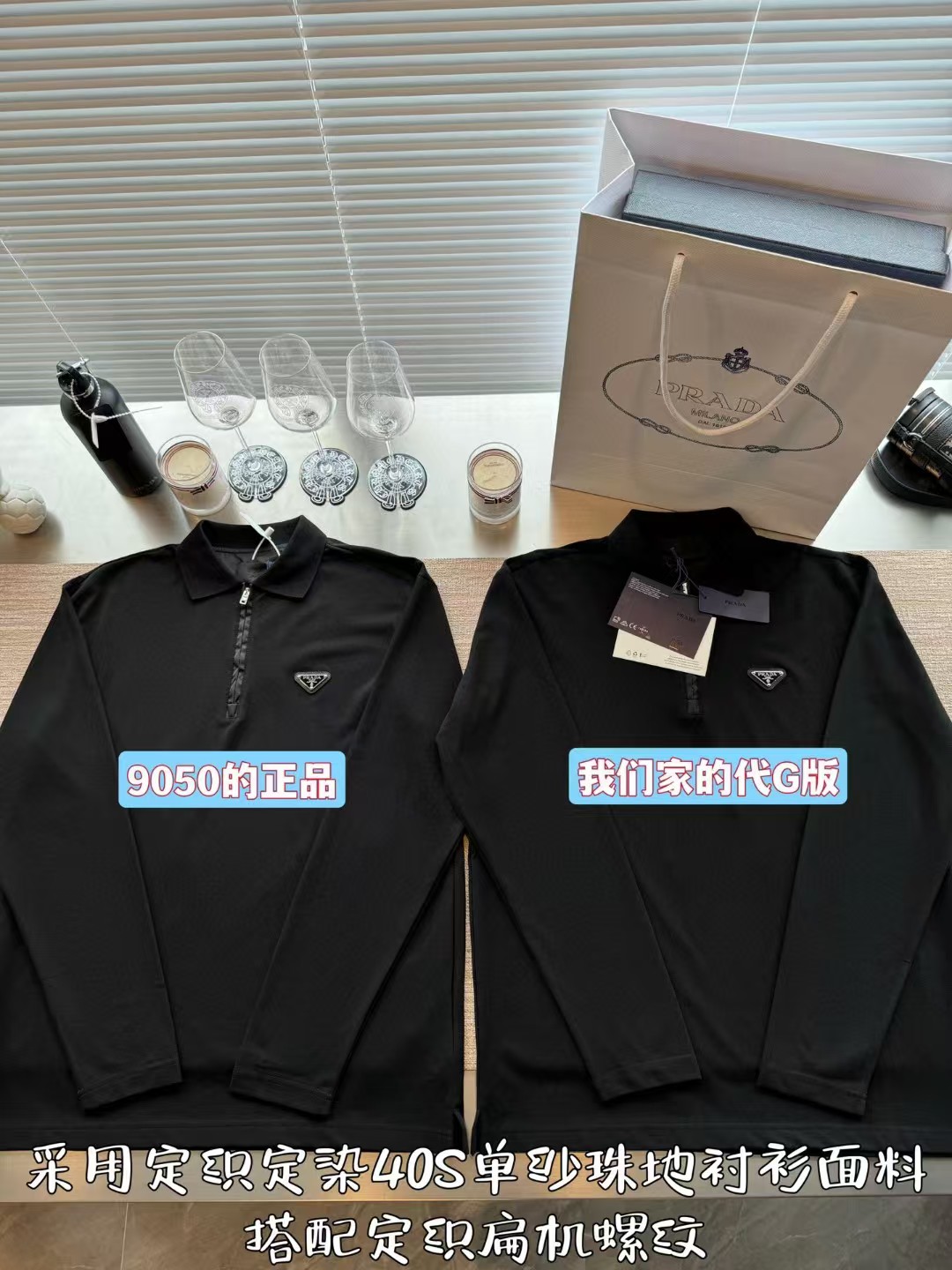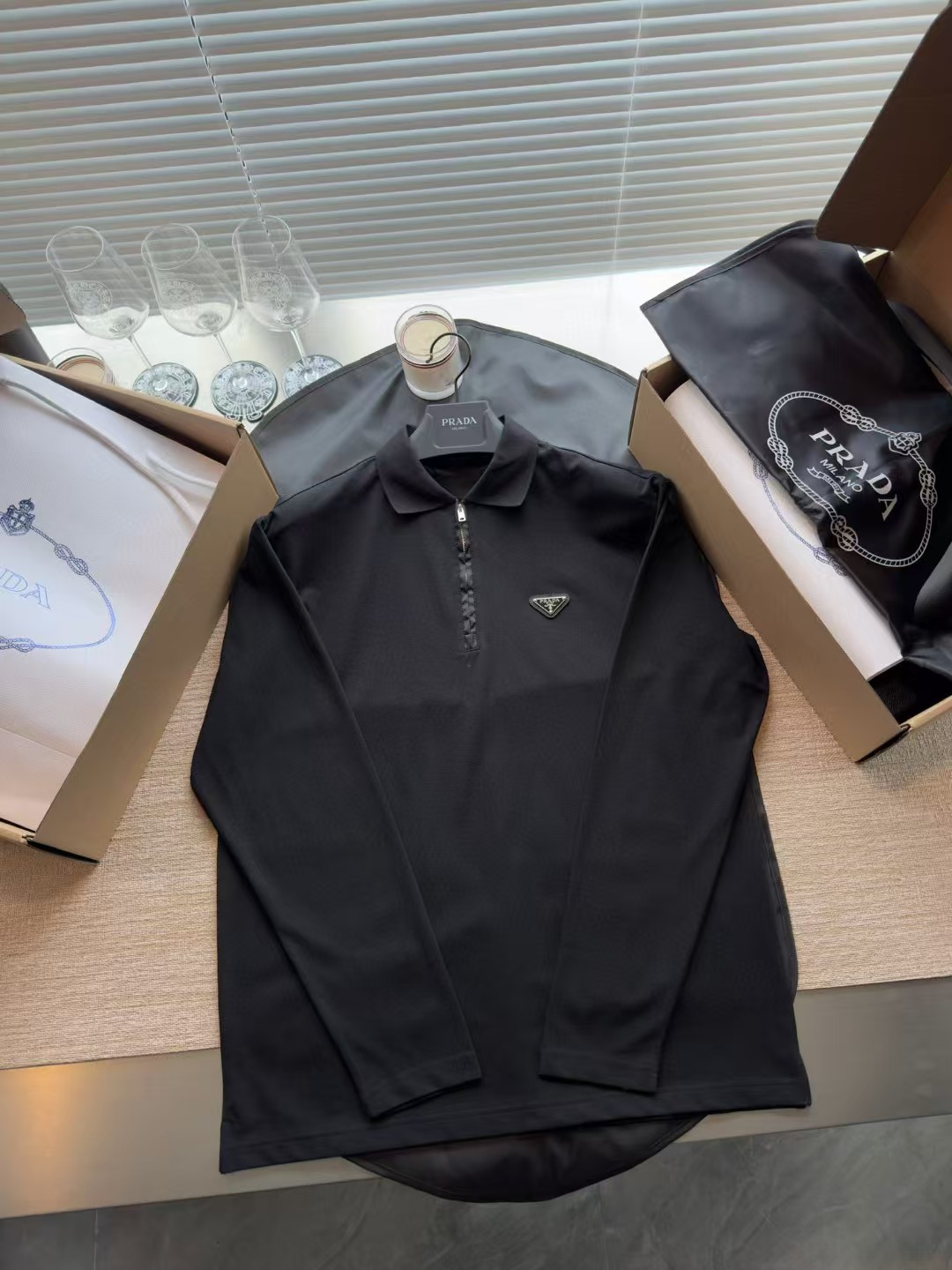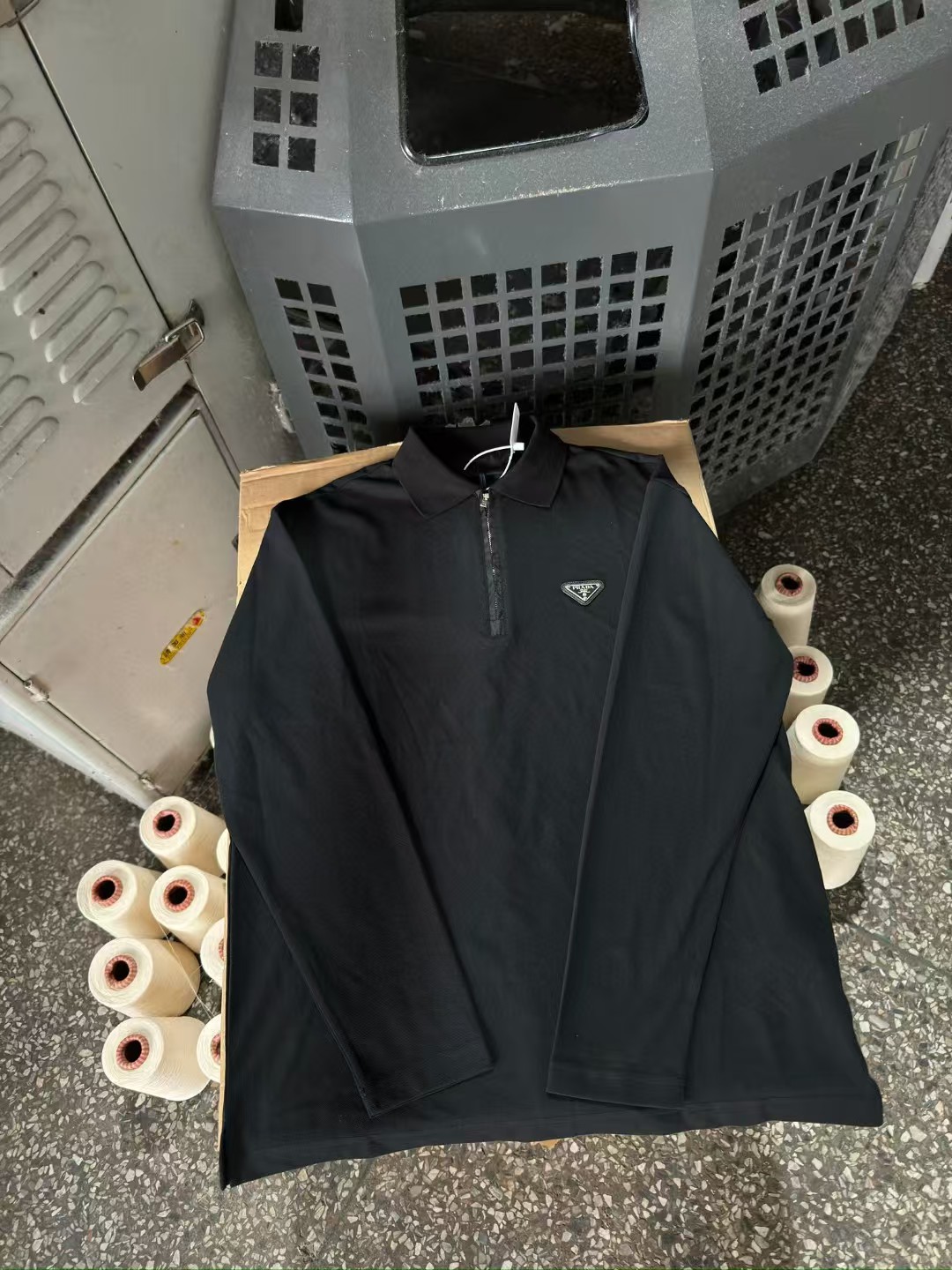 PRADA普拉达丹宁三角标珠地布和再生尼龙Polo衫长袖,低调奢华简洁款✌️整件衣服9050购买ZP拆解打造,刻模定制最新手工三角新标,开模定制YKK logo拉链,真正做到1:1copy 闭眼入 码数:XS.S.M.L