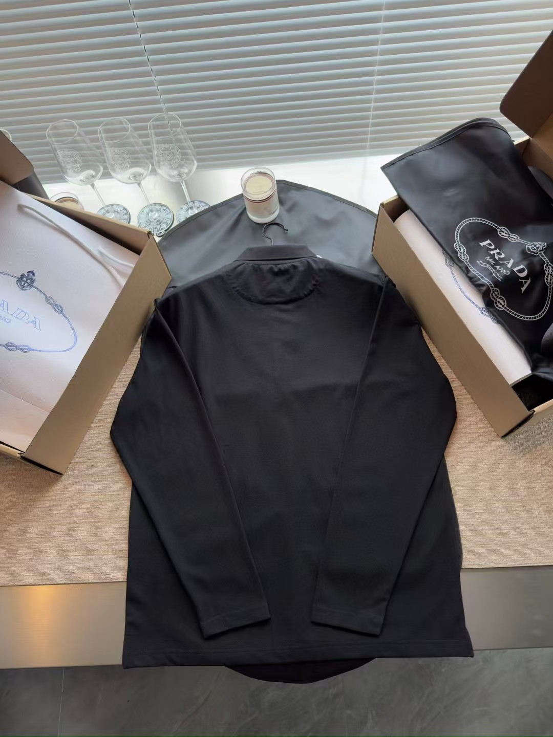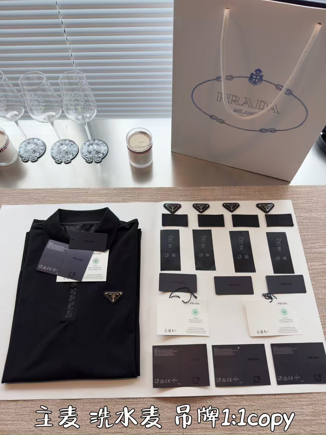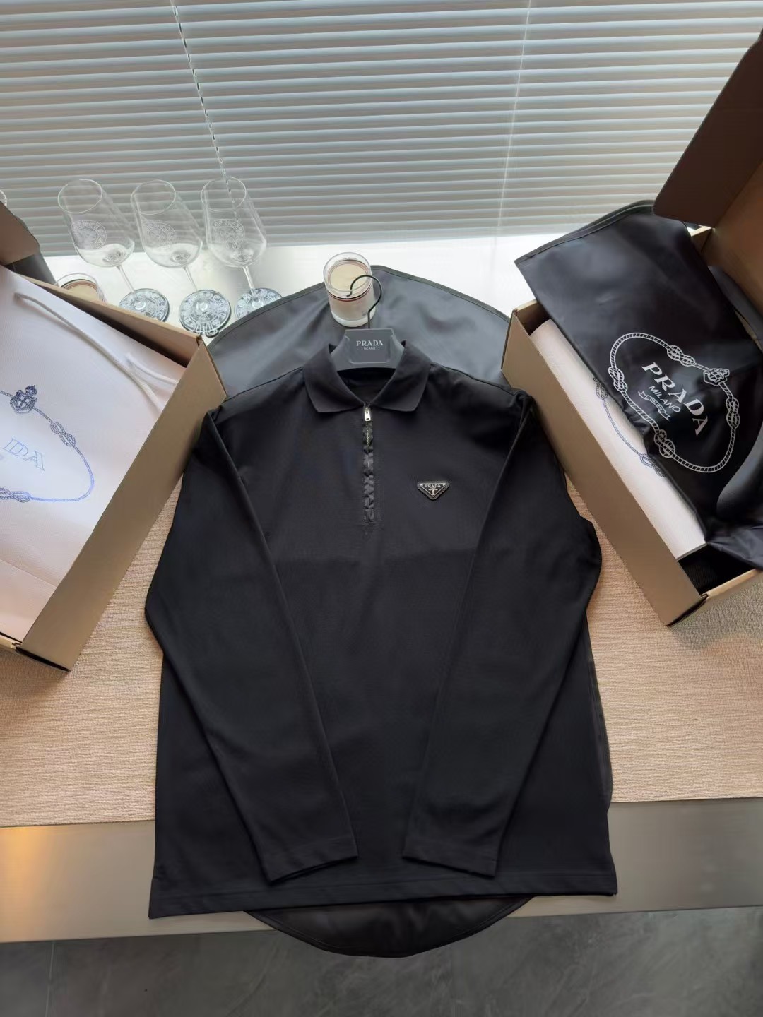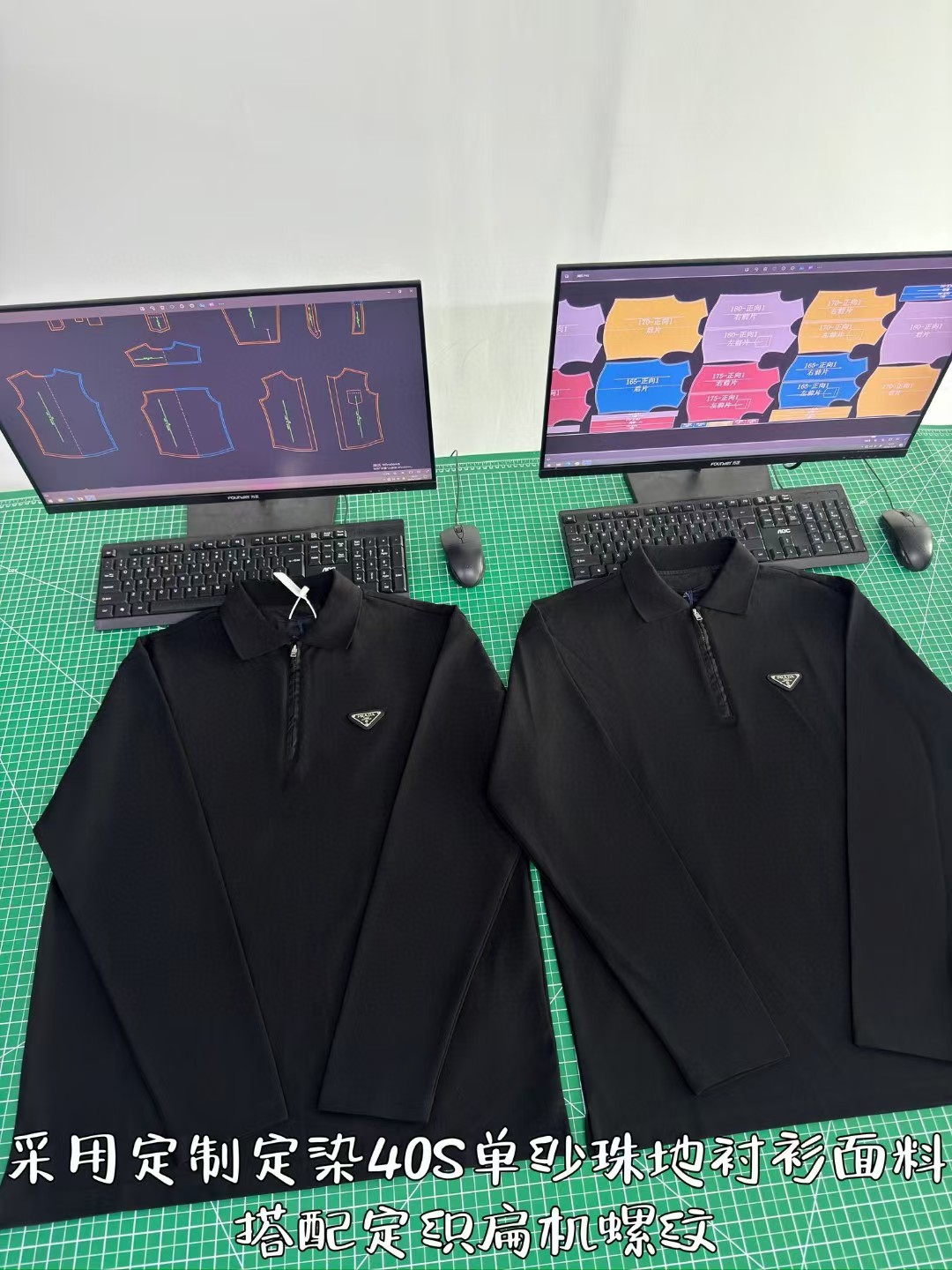 PRADA普拉达丹宁三角标珠地布和再生尼龙Polo衫长袖,低调奢华简洁款✌️整件衣服9050购买ZP拆解打造,刻模定制最新手工三角新标,开模定制YKK logo拉链,真正做到1:1copy 闭眼入 码数:XS.S.M.L