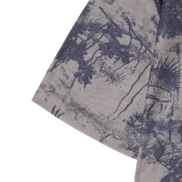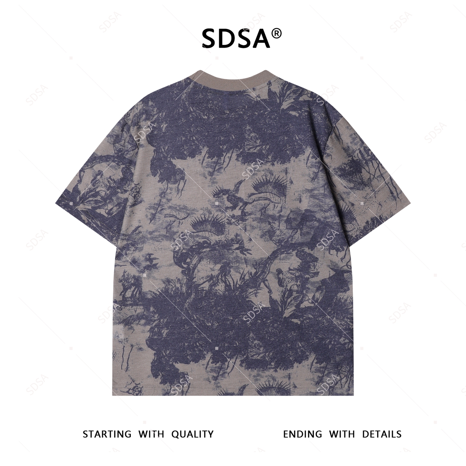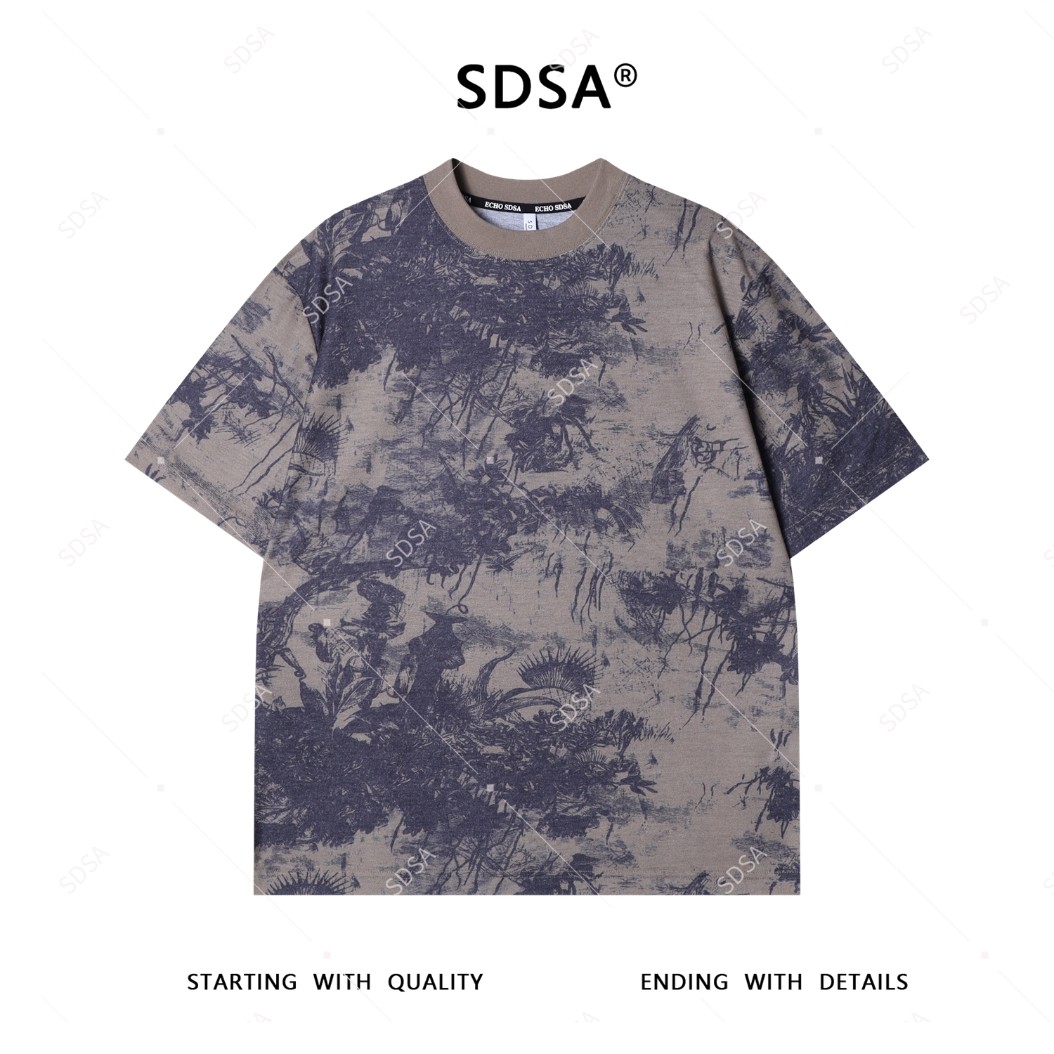 T4103夏季高级感新款男士印花宽松扎染重磅T恤撞色圆领短袖薄款上衣