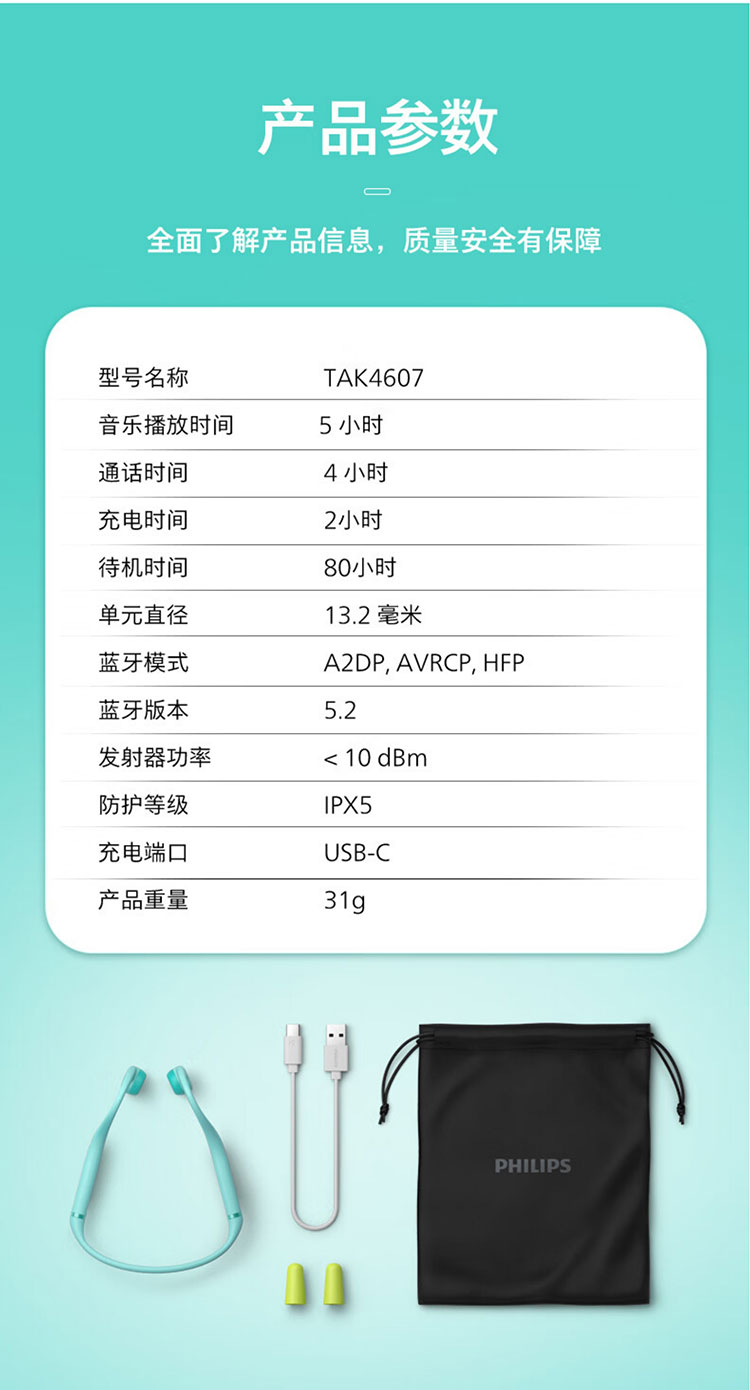 飞利浦PHILIPS骨传导蓝牙耳机儿童无线耳机骨传导耳机TAK4607